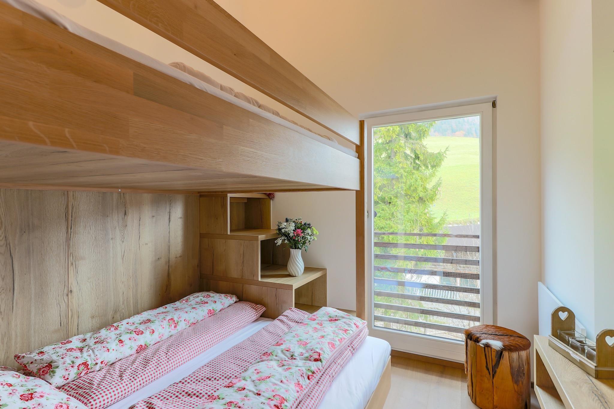Ferielejligheden ligger på første sal og er udstyret med alle bekvemmeligheder. De moderne møbler skaber en fantastisk atmosfære. Stuen består af en rummelig stue med spisebord og et køkken udstyret med alle faciliteter. Fra stuen er der udgang til altanen, hvor man kan nyde udsigten over bjerglandskabet. Det særlige ved denne lejlighed er, at du kan se toppen af Wilder Kaiser fra dit vindue; dette område er betagende! I området kan du nyde skiløb, snowboarding, langrend og vandreture i den hvide verden om vinteren. De store skiområder som St. Johann, Kitzbühel, Waidring-Steinplatte, Ellmau-Scheffau ligger tæt på. Et lille familieskiområde ligger direkte i Kirchdorf. Om sommeren kan du følge de mange vandre- og mountainbikeruter. De omkringliggende landsbyer som Ellmau, Kirchberg og det sofistikerede Kitzbühel er et besøg værd for at nyde den tyrolske atmosfære!