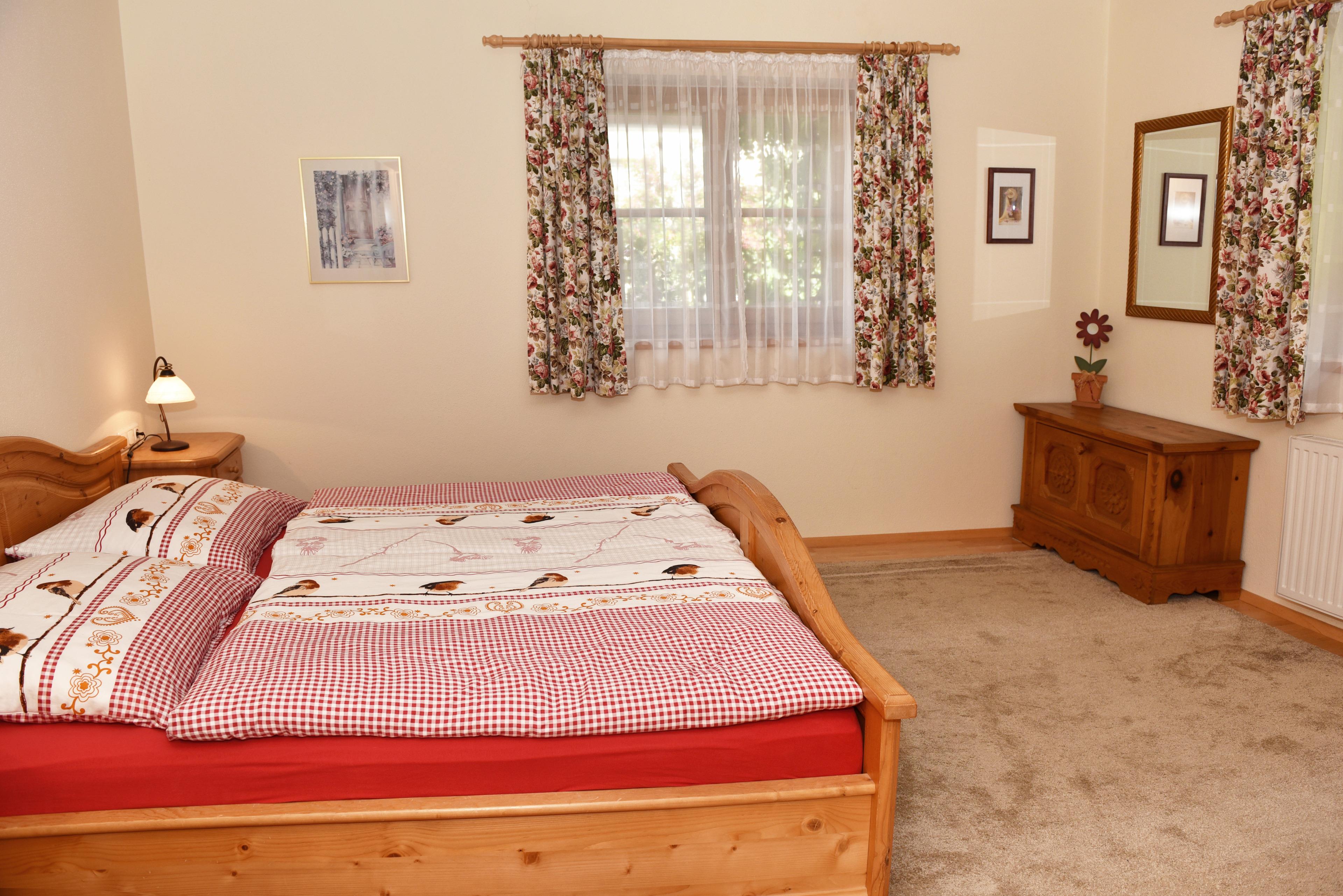 Die Ferienwohnung ist unterteilt in ein Schlafzimmer mit Doppelbett, einen Wohnraum mit ausziehbarer Doppelschlafcouch für weitere zwei Personen, in den eine Küchenzeile integriert ist, sowie ein Badezimmer mit Dusche und WC. Die Küche ist ausgestattet mit Elektroherd inkl. Backofen, Kühlschrank inkl. Gefrierfach, Geschirrspüler, Kaffeemaschine, Toaster und Wasserkocher.