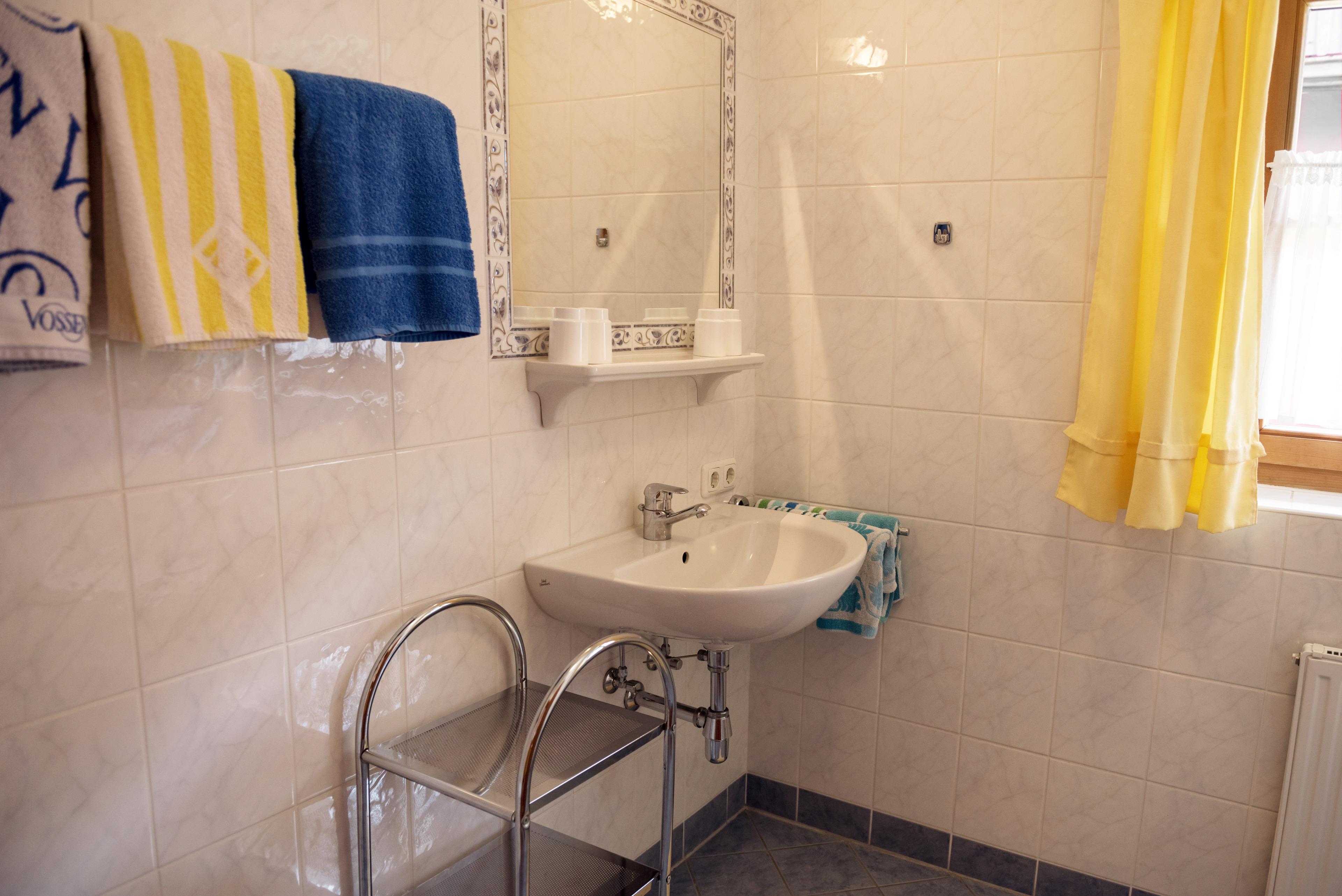 Die Ferienwohnung ist aufgeteilt in ein Schlafzimmer und einen geräumigen Wohnraum, Bad mit Dusche und WC und Wohnküche mit großem runden Esstisch.