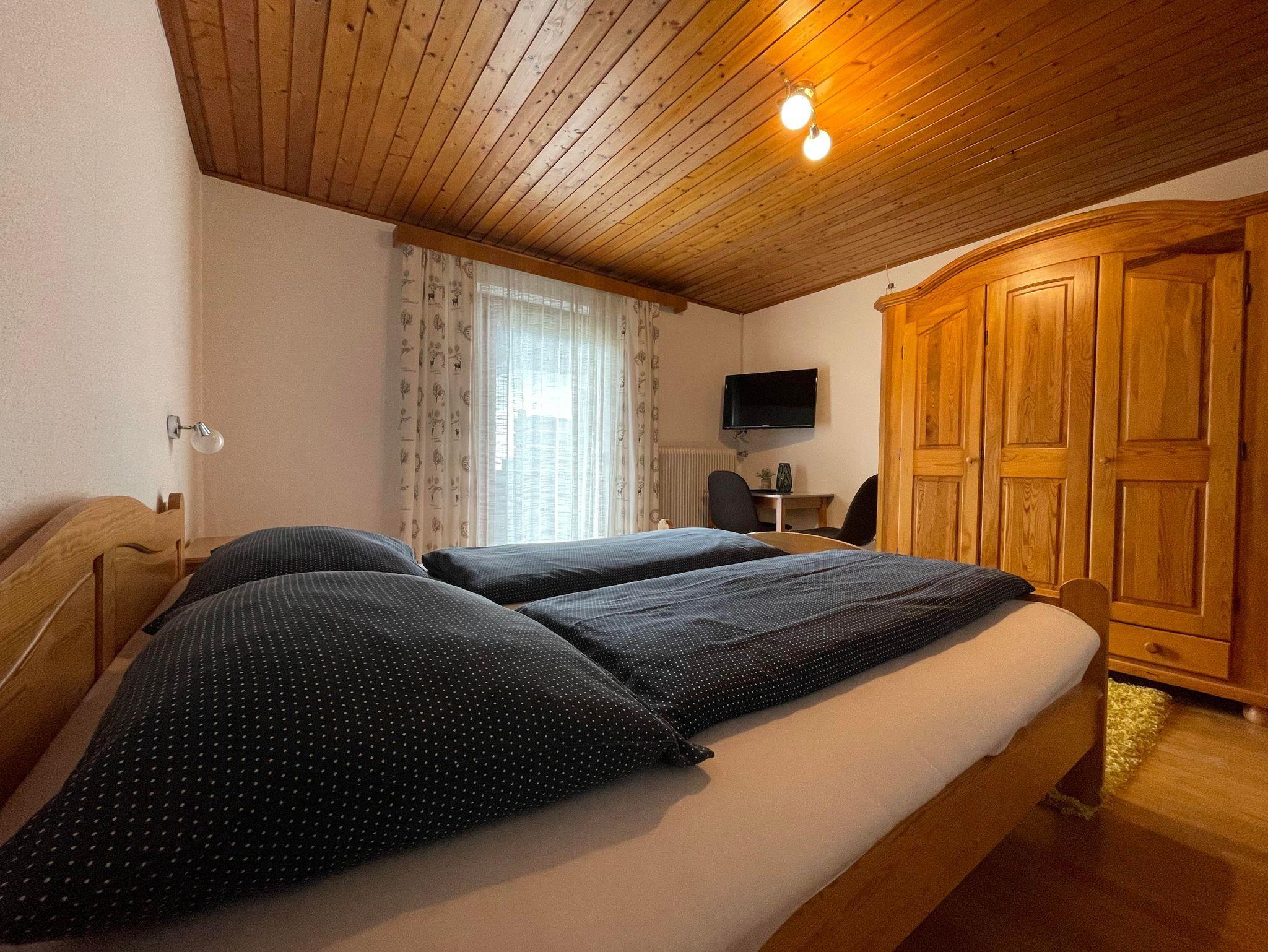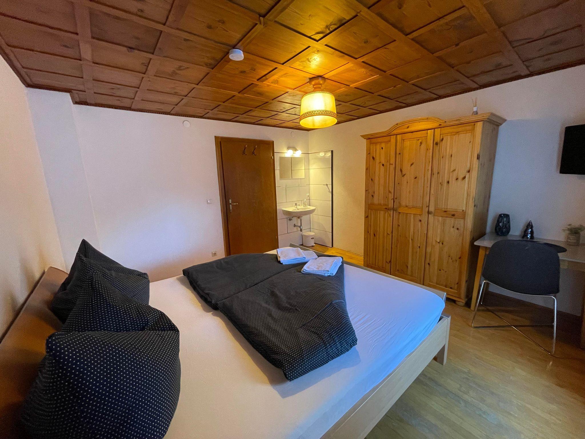 Genießen Sie Ihren Aufenthalt im gemütlichen Doppelzimmer mit eigenem Bad! Im Zimmer haben Sie ein Kingsize-Bett, einen großen Kleiderschrank, einen Fernseher und einen Tisch mit zwei Stühlen. Eines der von uns angebotenen Doppelzimmer hat Zugang zum Balkon. Das Zimmer verfügt über ein eigenes Bad mit Waschbecken, Dusche und Toilette. Bettwäsche und Handtücher stellen wir kostenlos zur Verfügung. Sie haben auch Zugang zu einer großen, voll ausgestatteten Gemeinschaftsküche. Sie können gerne den Kühlschrank und andere Geräte benutzen, um Ihre Mahlzeiten zuzubereiten. Wir haben eine Kaffeemaschine für Filterkaffee und Nespresso, die Ihnen zur Verfügung stehen. Wir haben Platz für Ihre Skier sowie einen Skischuhtrockner. In Ihrem Zimmer und im ganzen Haus haben Sie Highspeed-WLAN.