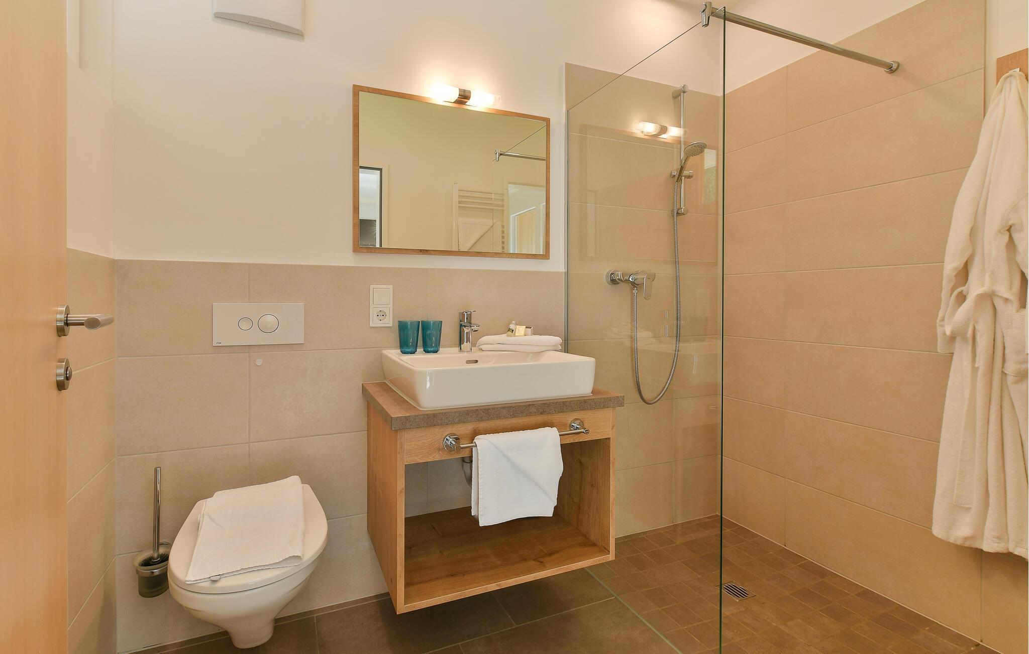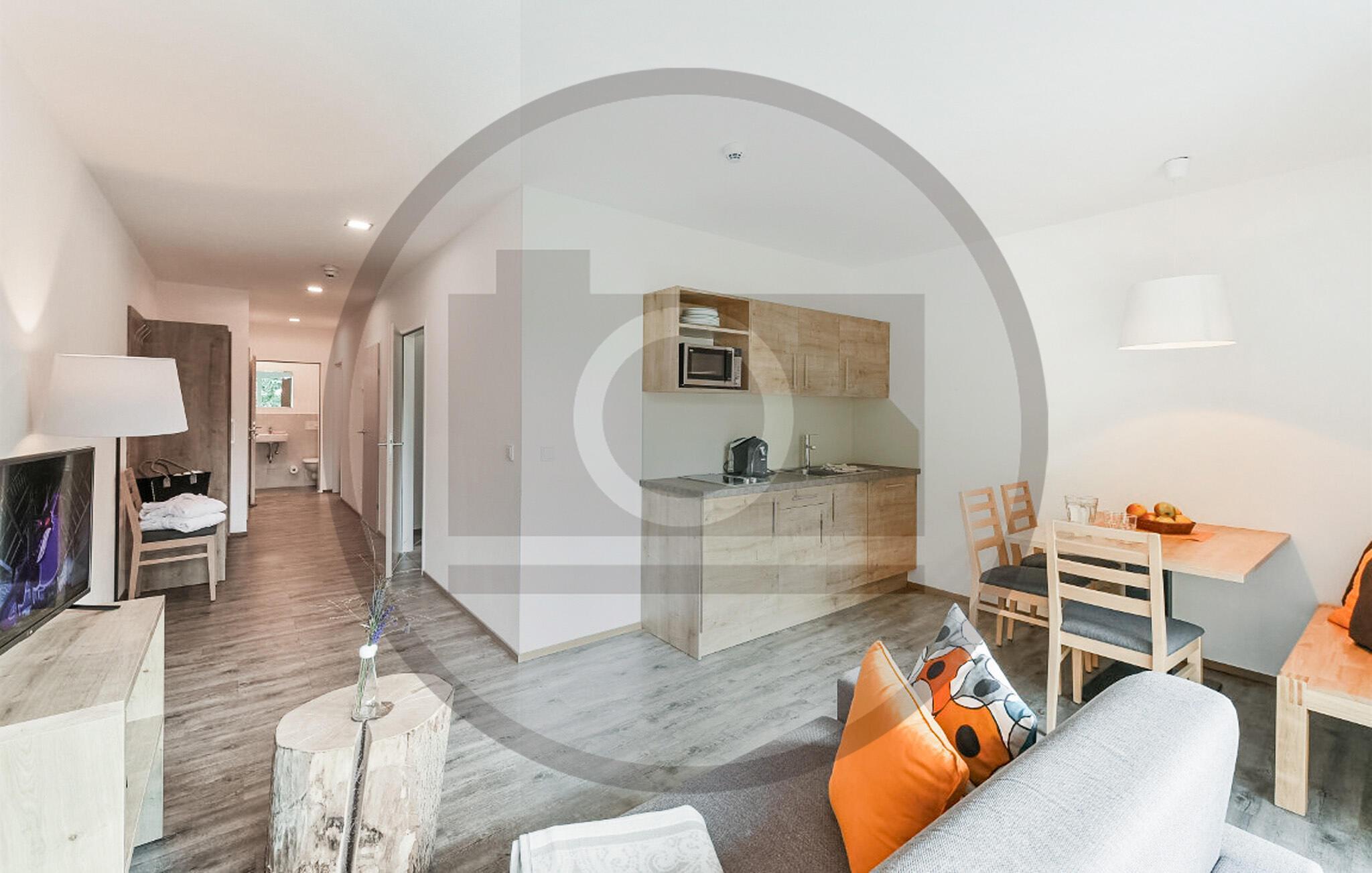 Lejlighederne AVO160 - AVO166 har en høj standard og ligger enten på første eller anden sal. I kan vælge mellem 25, 35 eller 60 m², møblerne kan variere lidt. Hovedattraktionen er panoramaudsigten fra spaområdet højt oppe over Klösterles tage. Her kan I smække fødderne op og holde en pause fra hverdagen. Dampbad, finsk sauna, eventyrbruser, afslapningsrum - I kan se frem til rendyrket afslapning.