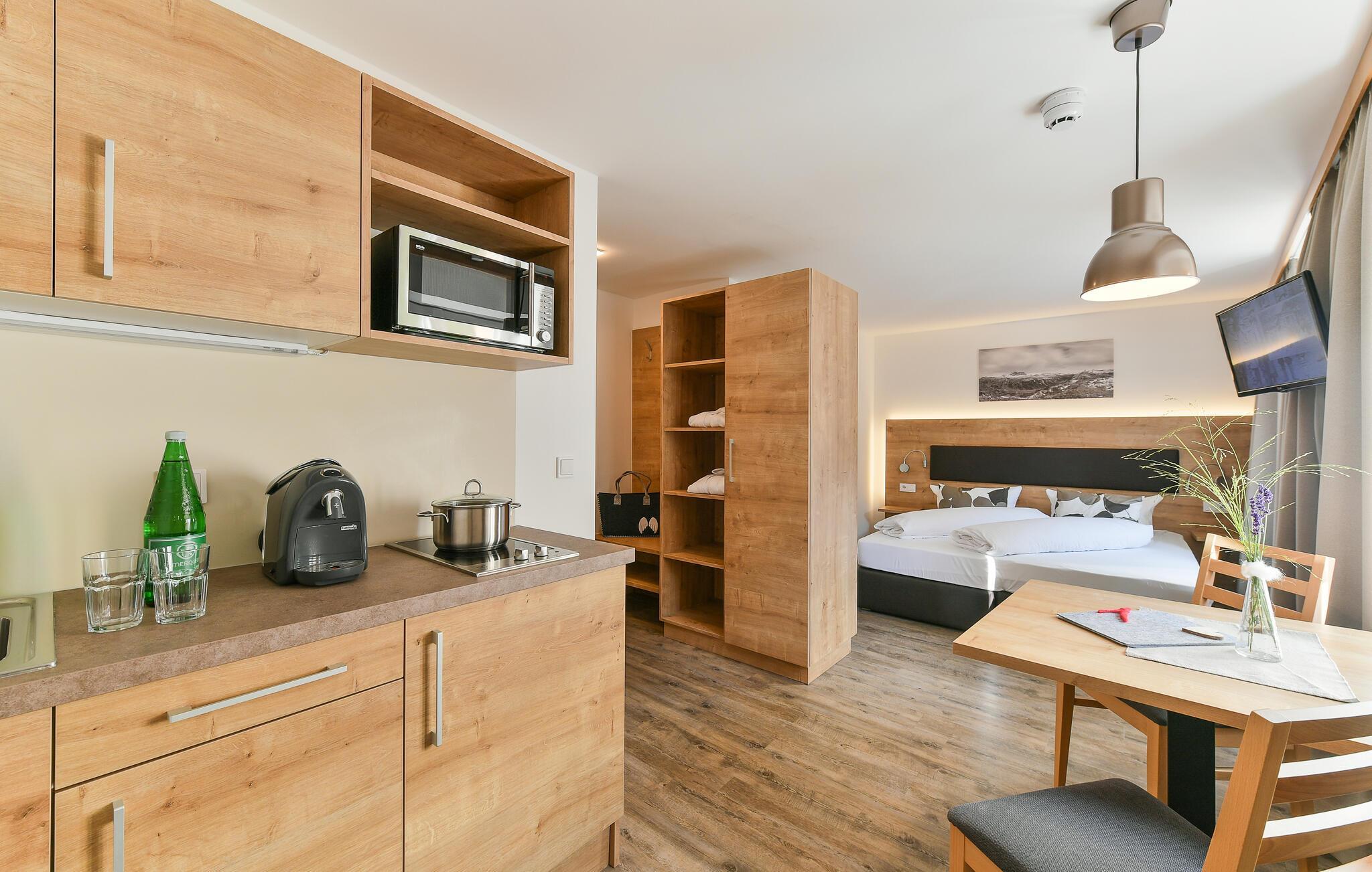 Nyd en eksklusiv ferie i Klösterle. Lejlighederne her er indrettet efter en høj standard og ligger enten på 1. eller 2. sal. Der er tre forskellige bookingtyper i størrelserne 60 m², 35 m² og 25 m². Møblerne kan variere lidt. Et højdepunkt er panorama-SPA-området højt over tagene i Klösterle. Her kan I pleje sjælen med dampbad, finsk sauna, eventyrbrusebad og afslapningsrum.