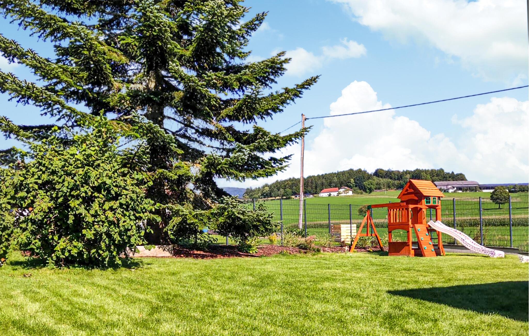 Udendørs venter jer mange dejlige timer på den overdækkede terrasse, hvor I kan dase i havemøblerne og tilberede nogle lækre retter på grillen, mens børnene boltrer sig i legeredskaberne og i legetårnet og får brændt en masse energi af.