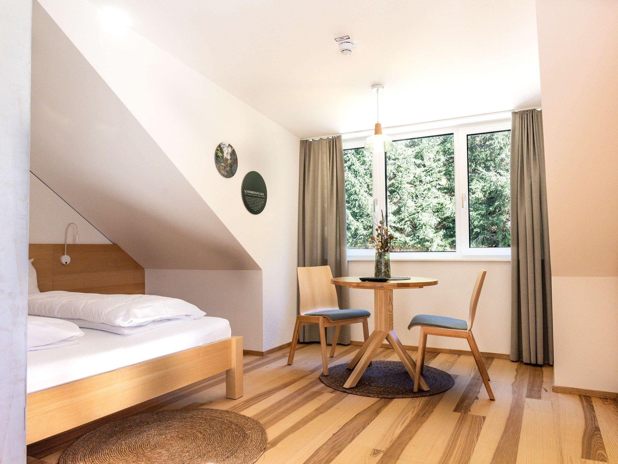 Das erst kürzlich eröffnete Forsthaus bietet dir Ruhe und Komfort in einer idyllischen Berglandschaft. Es ist ideal für Familien, Paare und Freunde, die Entspannung und Abenteuer suchen. Das Haus verfügt über 7 gemütliche Apartments. Vier davon sind mit komfortablen Doppelbetten ausgestattet, während zwei Familienapartments je 2 Schlafzimmer mit Doppelbetten haben. Zusätzlich gibt es ein barrierefreies Apartment.