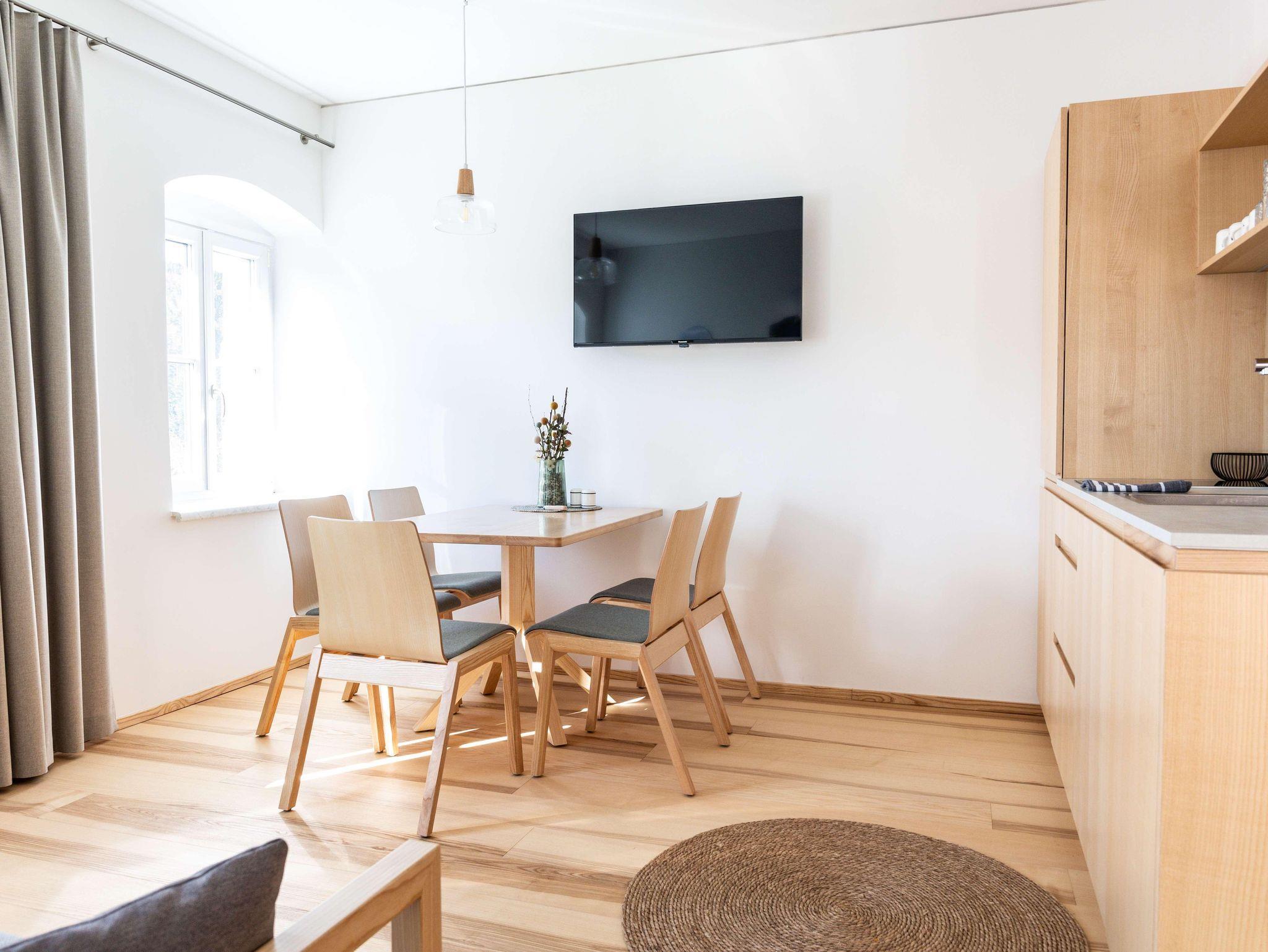 Die Ausstattung der Apartments lässt keine Wünsche offen. In den großzügigen Küchen kannst du dich bequem selbst versorgen, und im Vorraum findest du hausgemachte Gerichte in Kühlschränken, die du in deinem Apartment erwärmen kannst. Außerdem findest du im Kühlschrank in den Appartements einige Erfrischungen, die bereits für dich vorbereitet wurden!