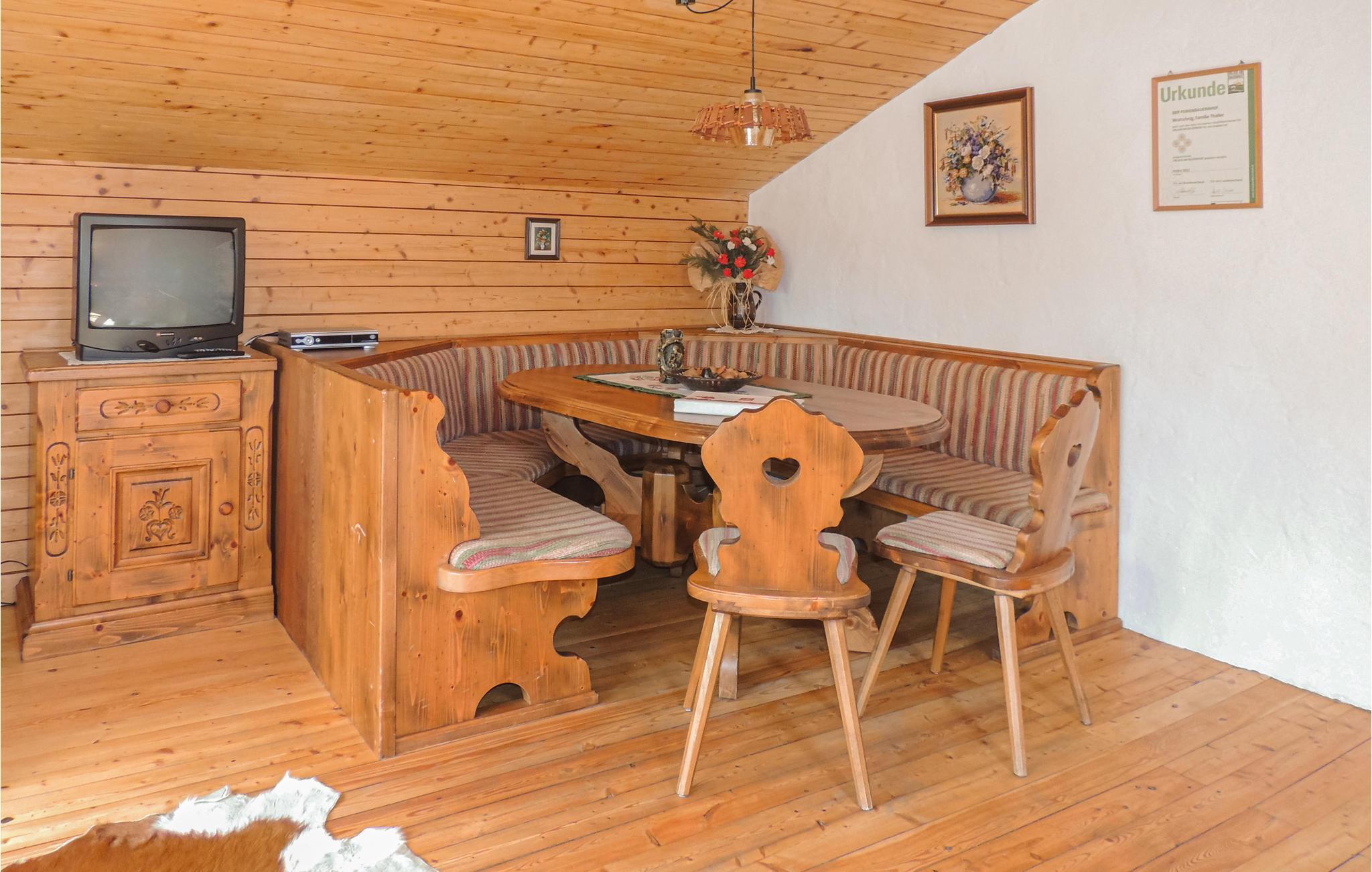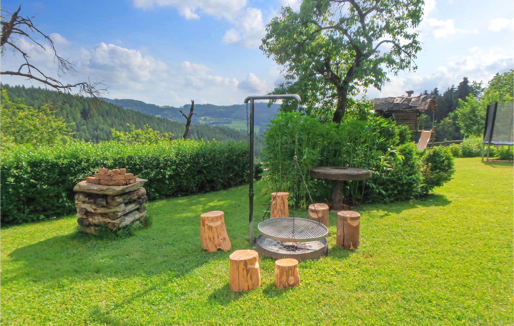Denne "karlelejlighed" ligger i en separat bygning på en stor bondegårds areal, 750 m over havet, med dejlig sol. Den aktive gård giver meget afveksling - især til børn. I må gratis tage to husdyr med på ferien. Omkring gården er der et skovrigt, tyndt beboet område med muligheder for dejlige vandreture mellem 630 og 2040 m over havet. Talrige betjente sæterhytter og bjergkroer indbyder til, at I slår jer ned. Seværdigheder (borgen Hochosterwitz), slotte og badesøer kan nås inden for en omkreds af 30 km. Kun 500 m (10 minutter til fods) væk ligger terrassebadet Klein St. Paul.
