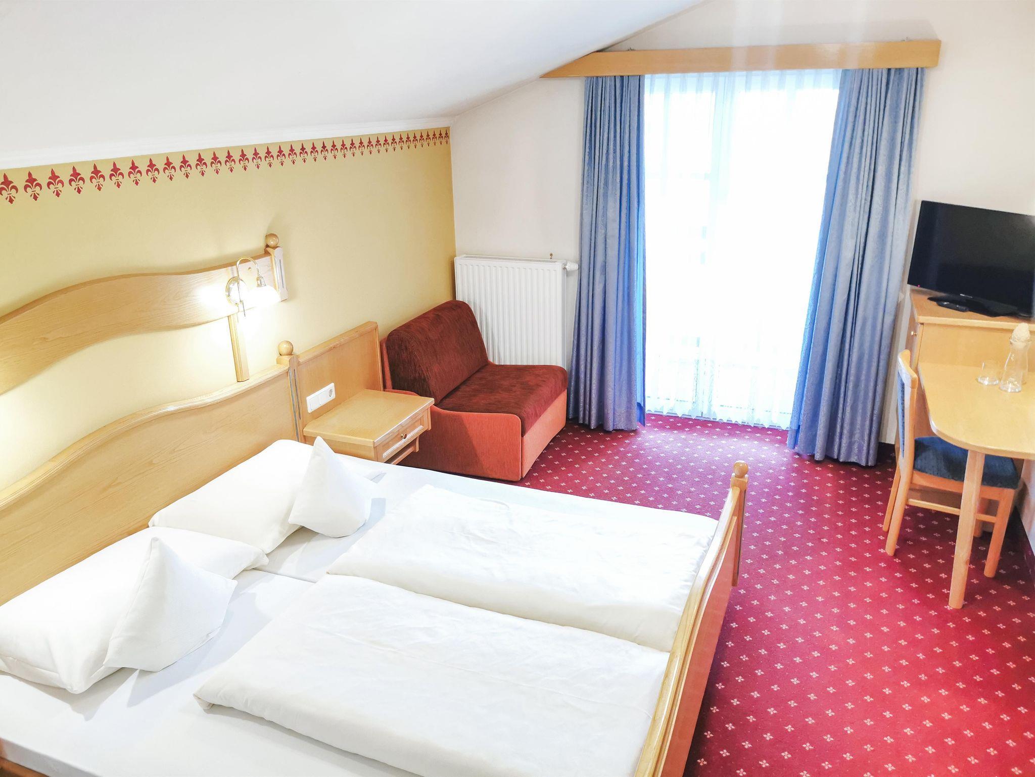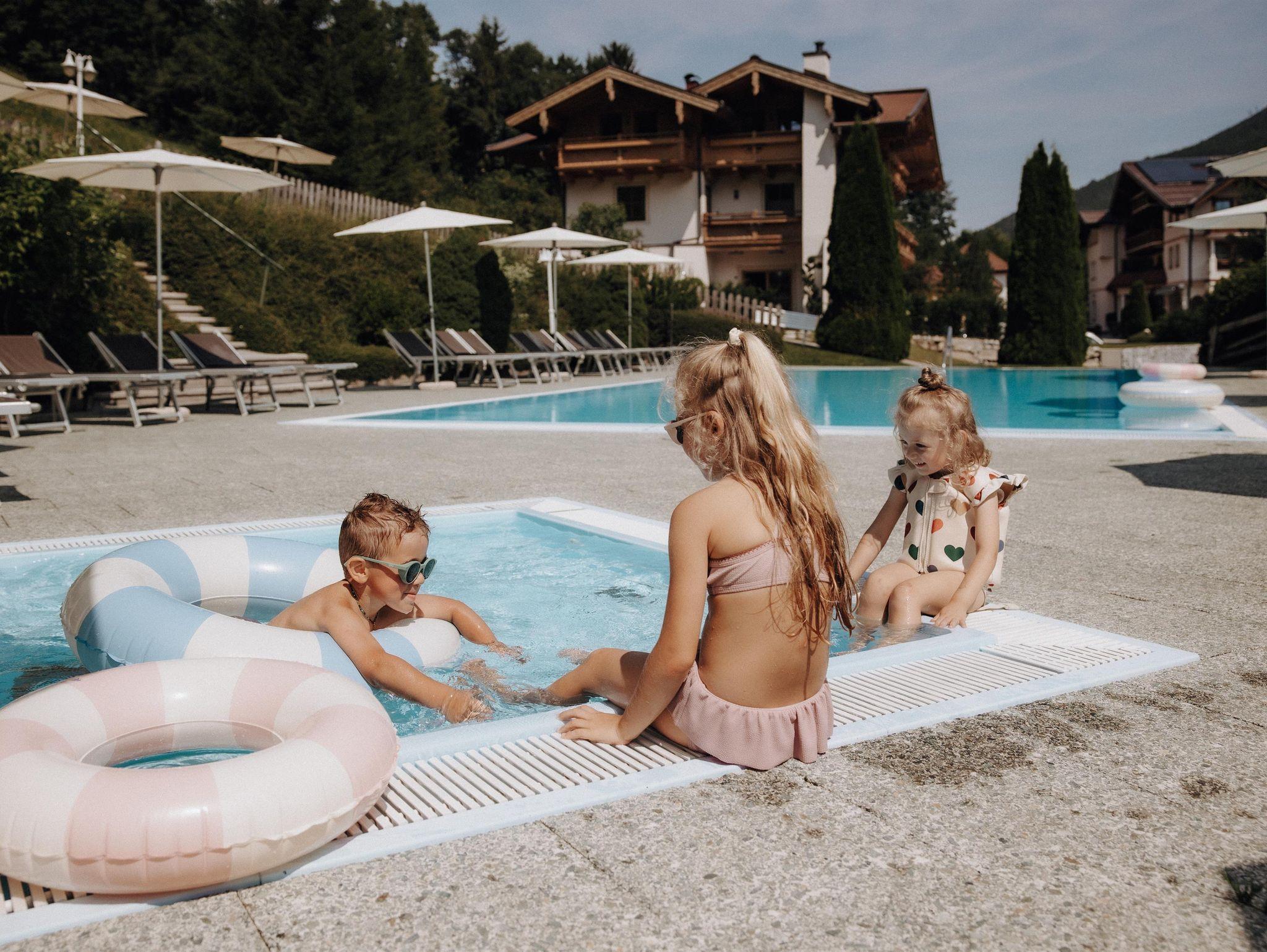 Familien genießen großzügige Zimmer & Studios, den Kinderspielraum im Haus sowie den Garten mit Kleinkinder-Spielturm, Freibad mit beheiztem Außenpool und eigenem Kleinkinderbecken (im Sommer, 3 Gehminuten vom Hotel)