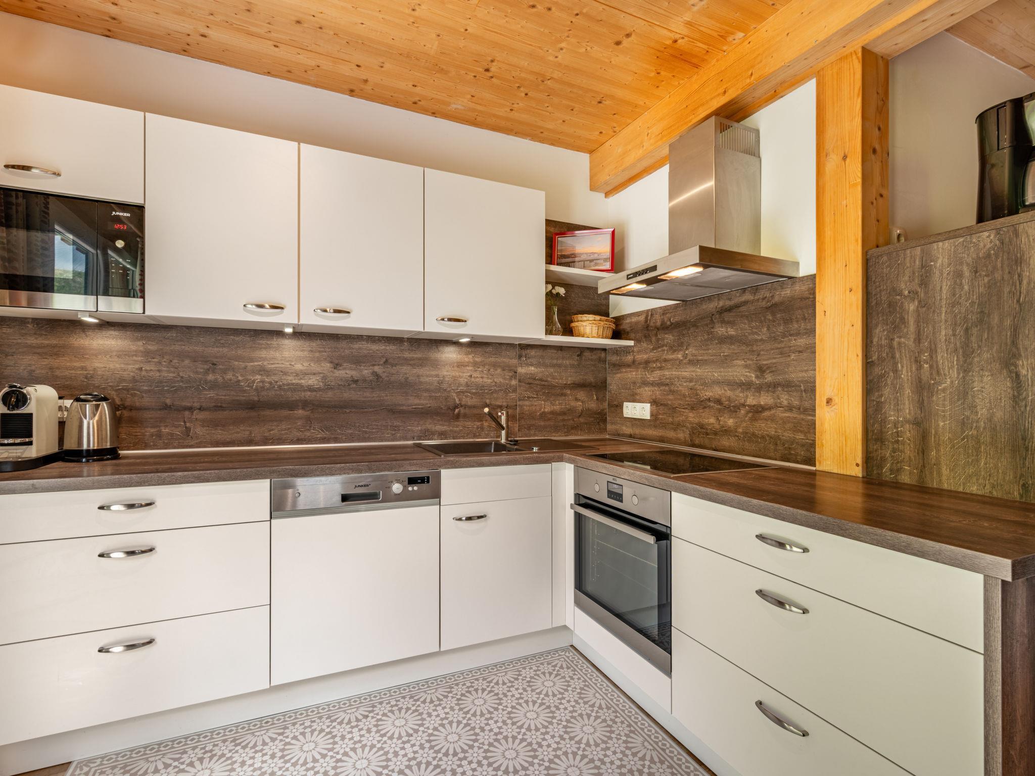 "Klippitzperle", 5-room chalet 115 m2. Bright, tasteful and wooden furniture furnishings: entrance hall. Open living room with satellite TV (flat screen). Exit to the terrace. Kitchen-/living room (oven, dishwasher, 4 ceramic glass hob hotplates, toaster, kettle, microwave, freezer, grill, electric coffee machine) with open-hearth fireplace and dining nook. Shower/WC. Top floor: 1 room with 1 double bed and satellite TV. Exit to the balcony. 1 room with 1 double bed. Exit to the balcony. 1 room with 1 double bed. 1 double bedroom with 2 beds. Bath/shower/WC, hydro massage shower, hydro massage bath. Gas heating. Wooden floors. Balcony. Balcony furniture, electric barbecue, deck chairs. Marvellous panoramic view of the mountains and the countryside. Facilities: washing machine, dryer, hair dryer. Internet (WiFi, free). Please note: suitable for families. Non-smoking house. Maximum 1 pet/ dog allowed. Fire extinguisher. Nespresso coffee machine available. In the village there is a vending kiosk for the first food and daily necessities. Due to the geographical location, WLAN is sometimes not available.