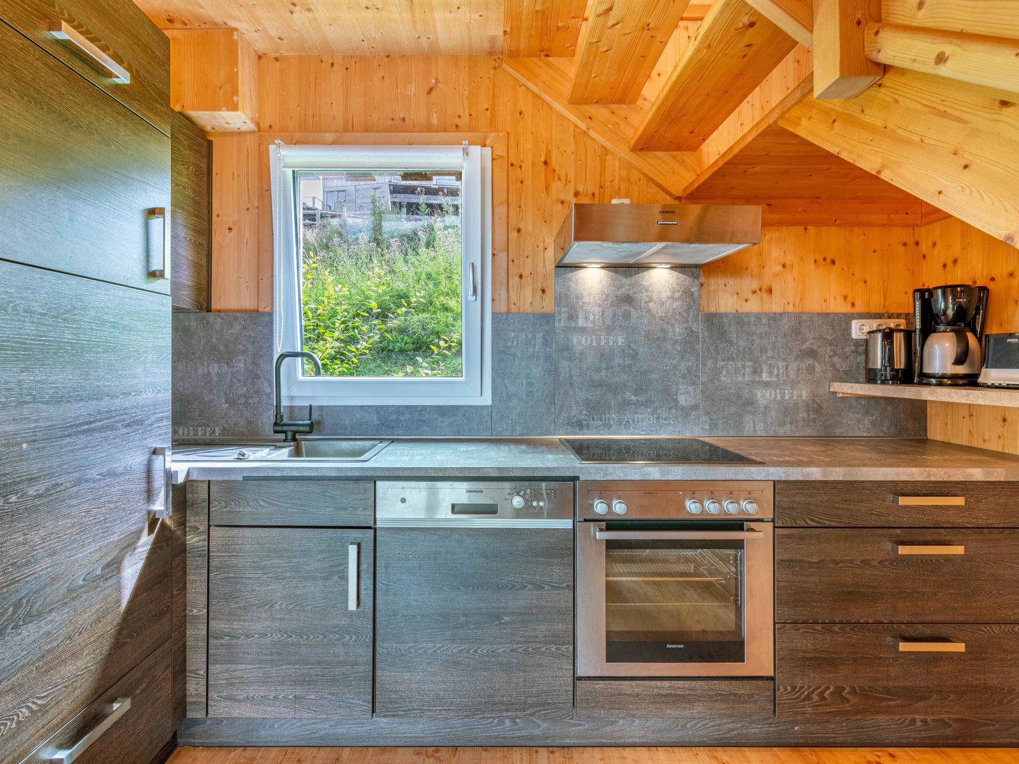 3-room chalet 73 m2. Object suitable for 6 adults. Spacious and bright, tasteful and wooden furniture furnishings: entrance hall with separate WC. Living/dining room with 2 folding beds, dining nook, cable TV, international TV channels and gas heater. Exit to the terrace. Large, open kitchen (oven, dishwasher, 4 ceramic glass hob hotplates, toaster, kettle, electric coffee machine). Upper floor: 2 double bedrooms with sloping ceilings, each room with electric heating. Bath/shower, Sauna. Wooden floors. Terrace furniture, balcony furniture, barbecue, deck chairs. Marvellous distant view of the mountains and the countryside. Facilities: washing machine, hair dryer. Internet (WiFi, free). Parking at the house. Please note: suitable for families. Non-smoking house. Fire extinguisher.