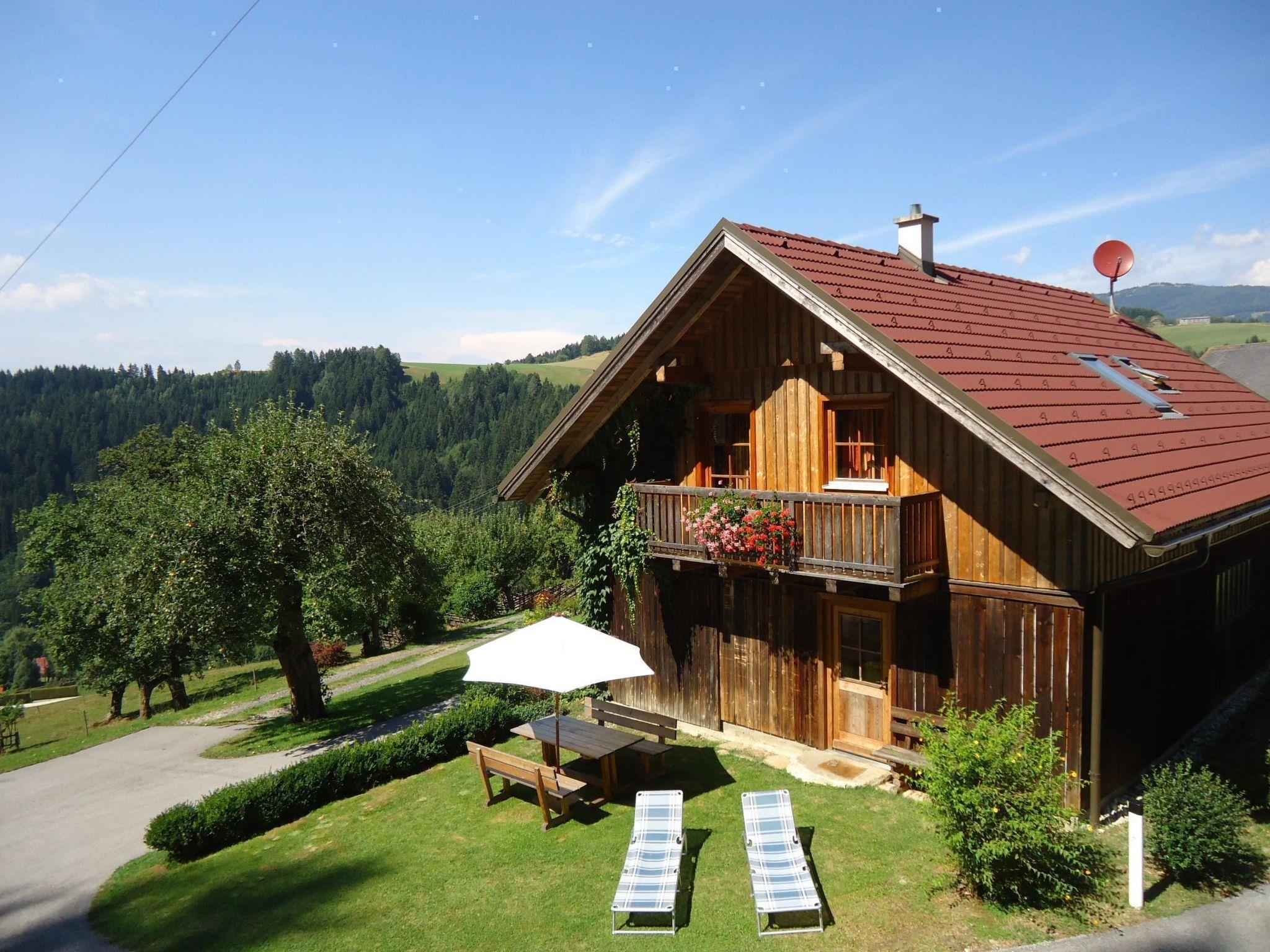 The holiday home was newly built in 2008 from our own wood in an absolutely quiet location. It is situated at 800 metres above sea level in Waldenstein in the upper Lavanttal valley. The house is 95 m² in size and can be booked by a maximum of 7 people. Fully equipped kitchen with electric cooker, oven, dishwasher, coffee machine, fridge with freezer compartment, kettle and oven, central heating.