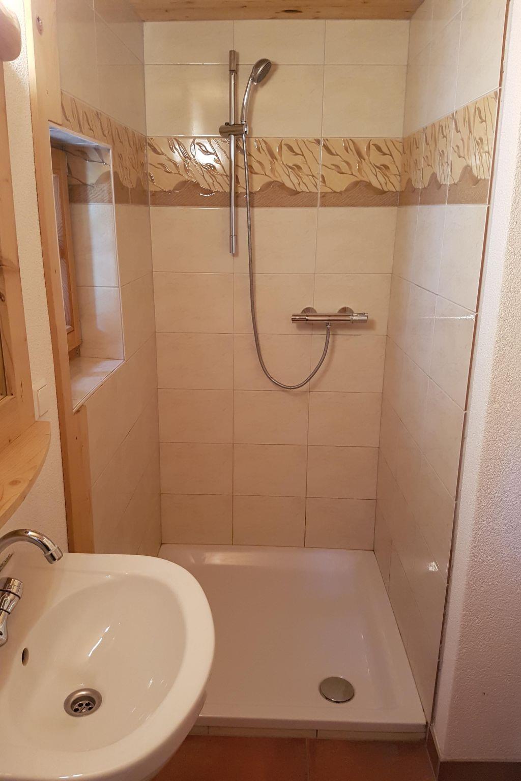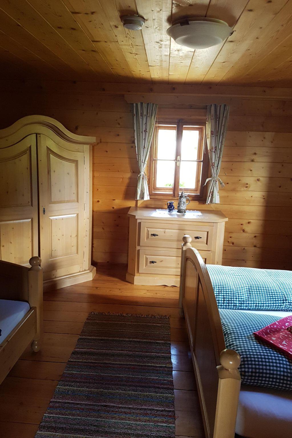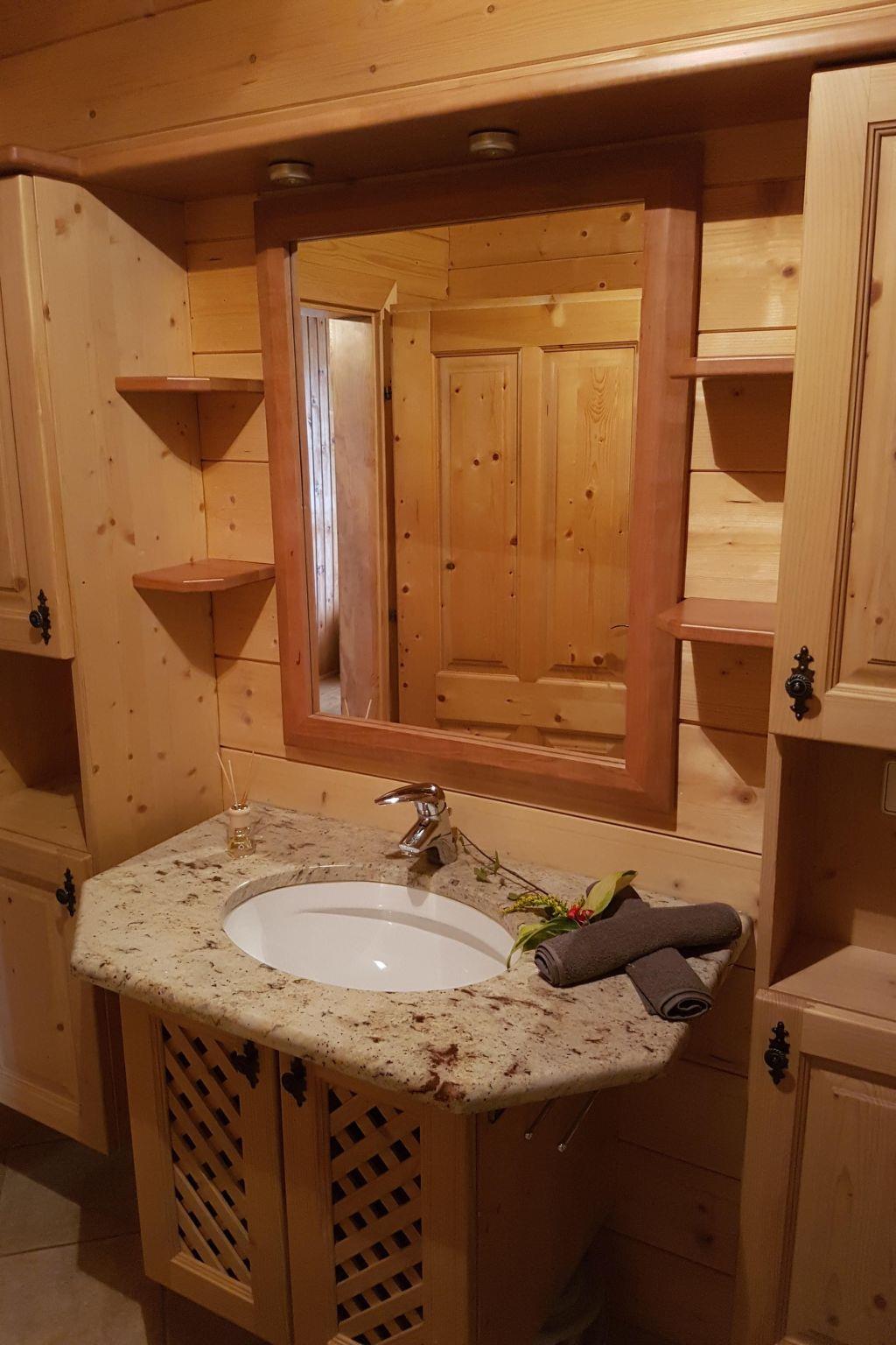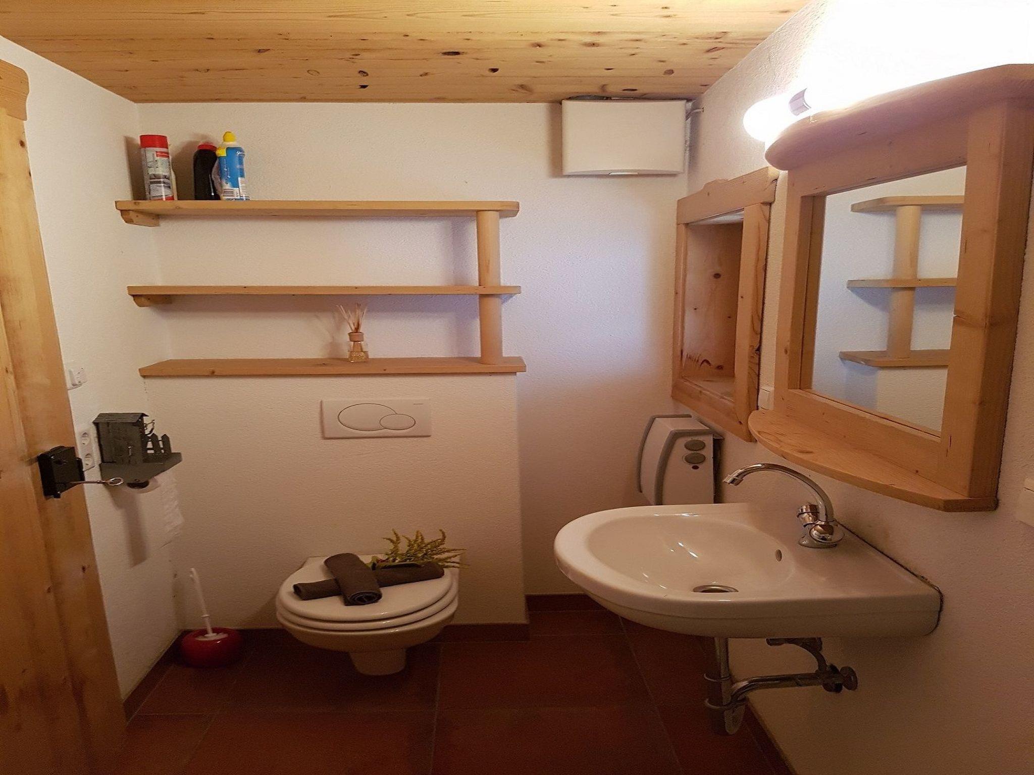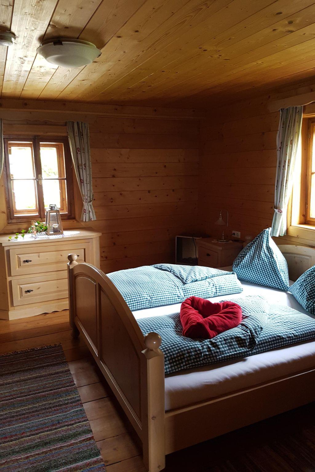 The holiday house is a recently completed self-catering chalet for up to ten people (150m²). The solid wood furniture was made by a carpenter and exudes rustic charm. The cosy living room-kitchen with a big sitting corner provides plenty of space for you and your family or friends. The centrepiece is the wood-burning stove, like in past times. It provides pleasant warmth and romantic hours in the evening, and you can also cook on it. An electric hob, dishwasher, fridge, sink with warm water, sofa, radio, satellite TV, DVD player and video recorder are also provided for your convenience. The four bedrooms have solid wood furniture. The cosy canopy bed exudes an imperial holiday feeling. After an exciting day, you can relax in the arolla pine sauna. The adjoining Whirlpool (warm and cold water) on the big terrace rounds off a perfect holiday day. The house has two bathrooms with a shower, washbasin, WC and electric boiler. Bed line is provided.