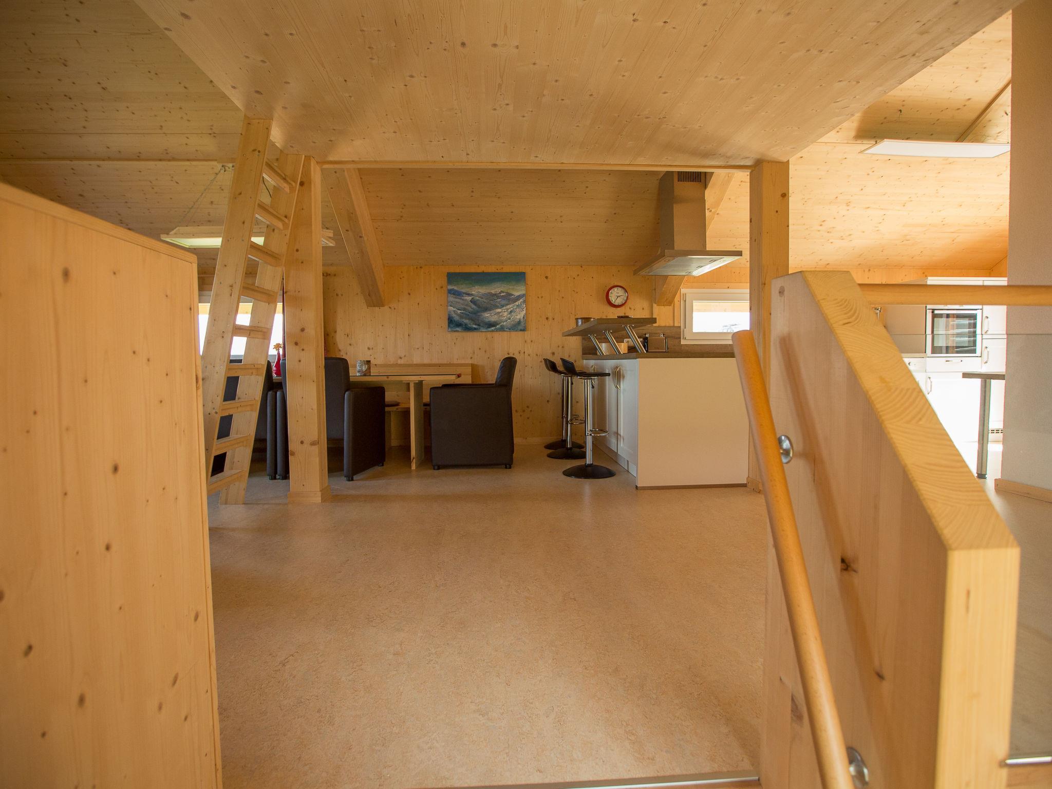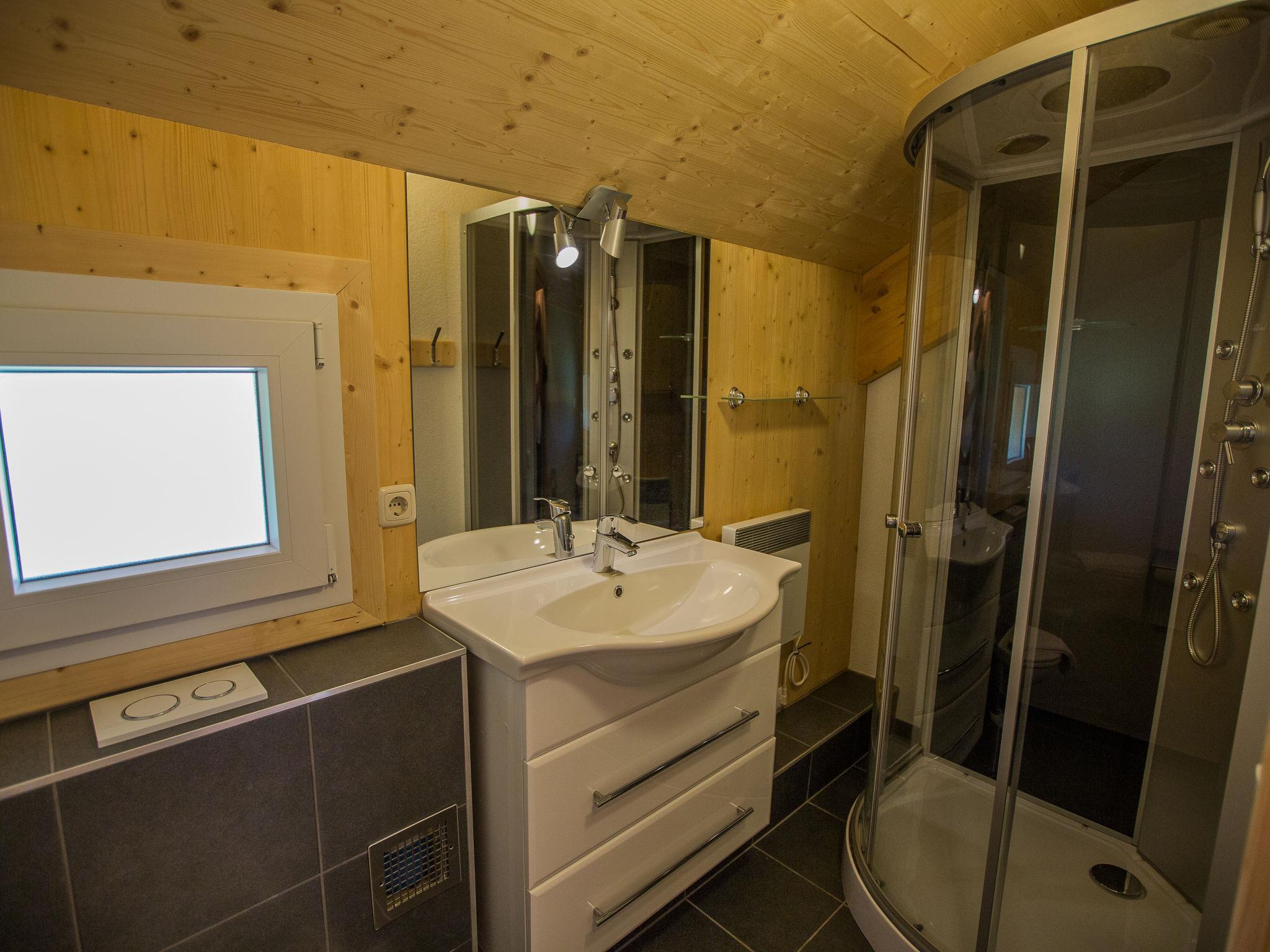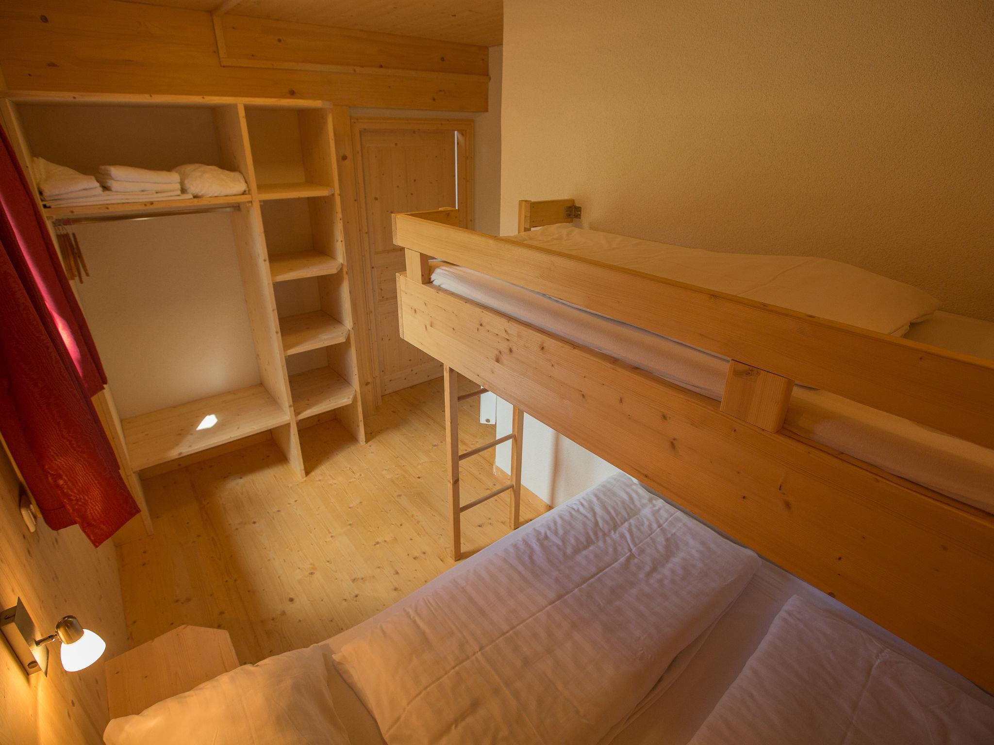4-room chalet 100 m2 on 2 levels. Object suitable for 6 adults + 2 children. Spacious, cosy and wooden furniture furnishings: living/dining room with dining table and satellite TV (flat screen). Exit to the terrace. Gallery with 1 double bed. Open kitchen (oven, dishwasher, 4 ceramic glass hob hotplates, toaster, kettle, electric coffee machine). Shower/WC. On the lower ground floor: 2 rooms, each room with 1 bed and 1 double bed. 1 double bedroom. Bath/shower/WC. Wooden floors. Terrace furniture. Facilities: Internet (WiFi). Please note: non-smoking house. Instead of an enclosed bedroom, some sleeping areas are located in an open-plan area (gallery, alcove, etc.).
