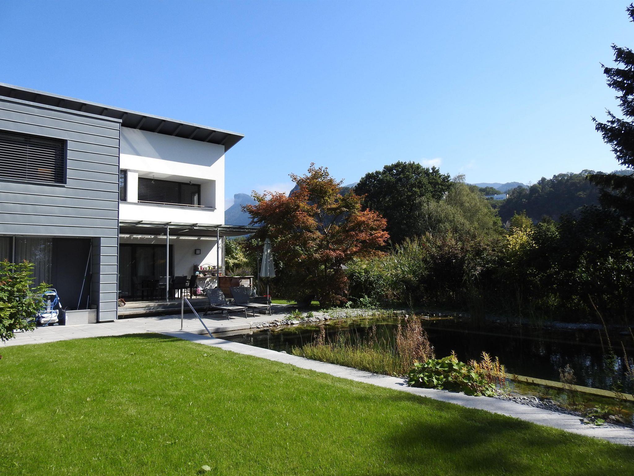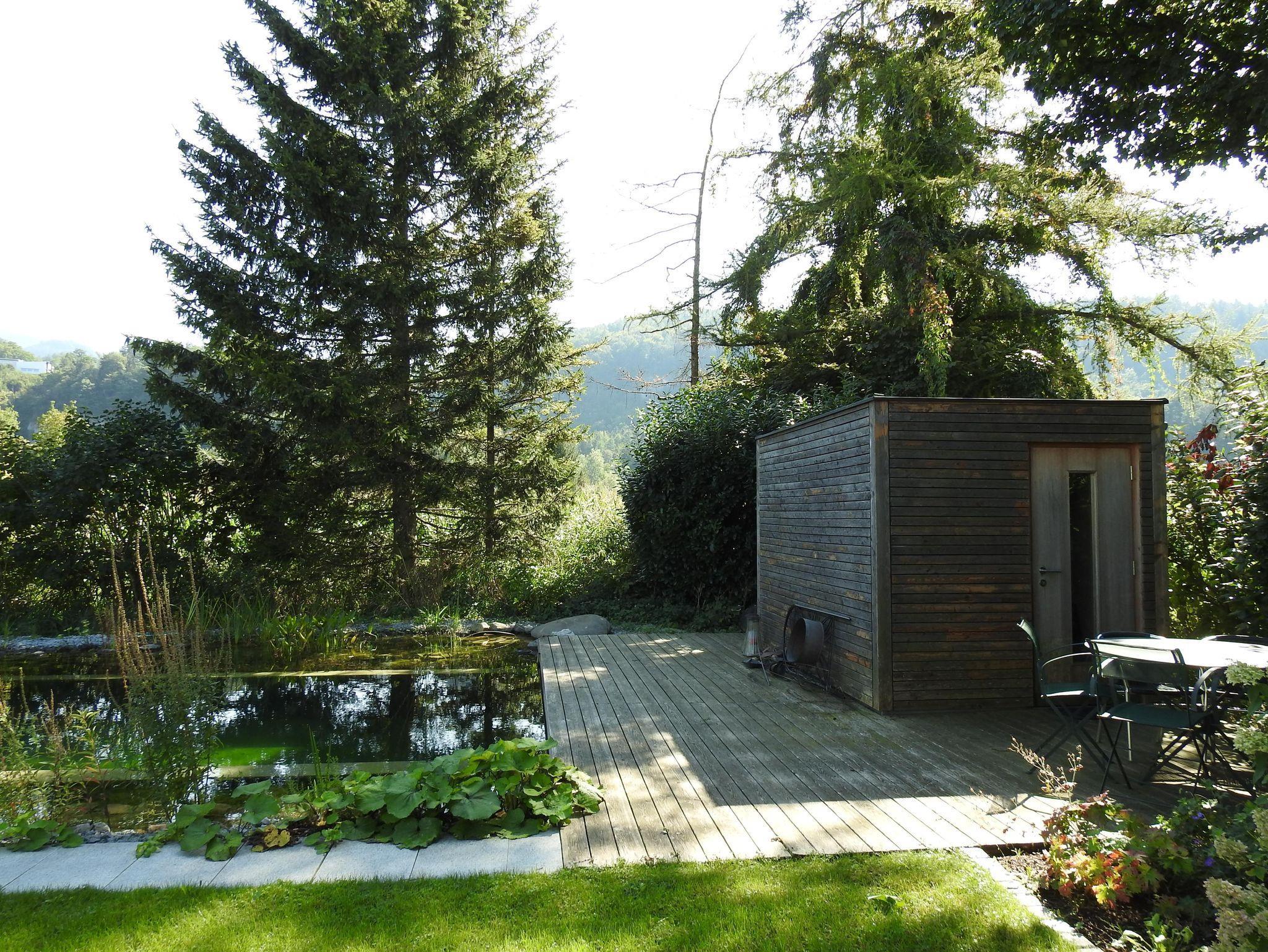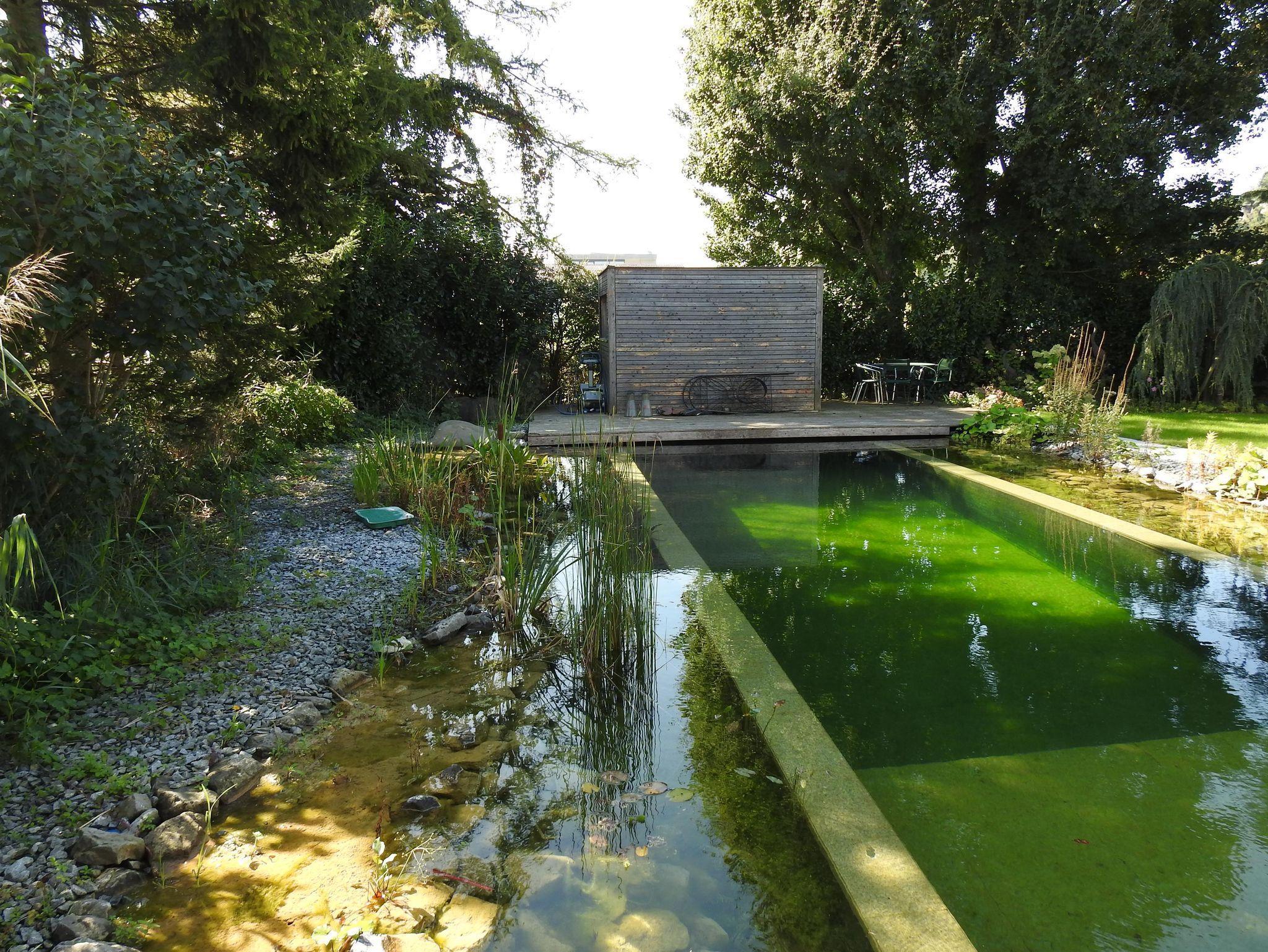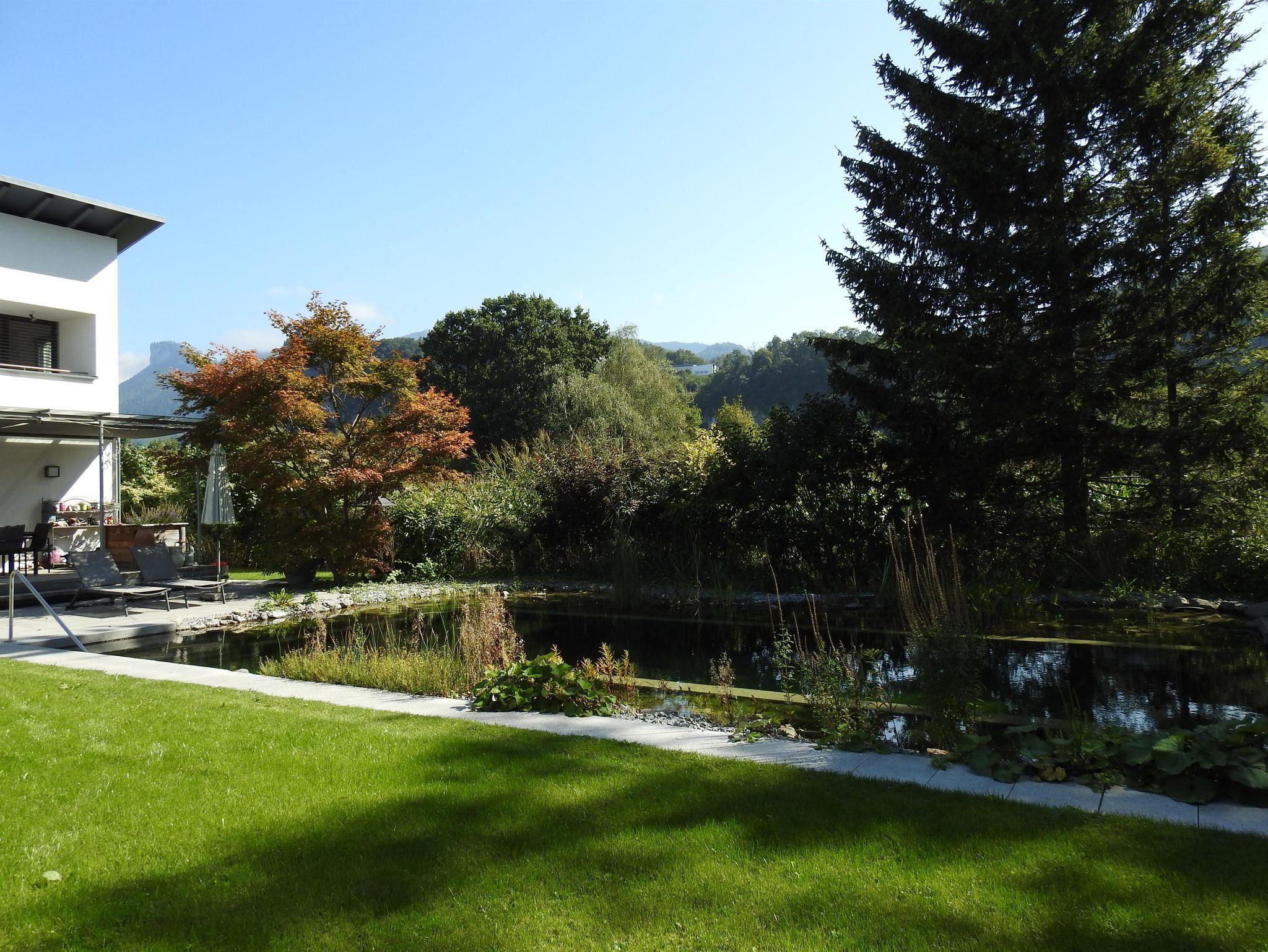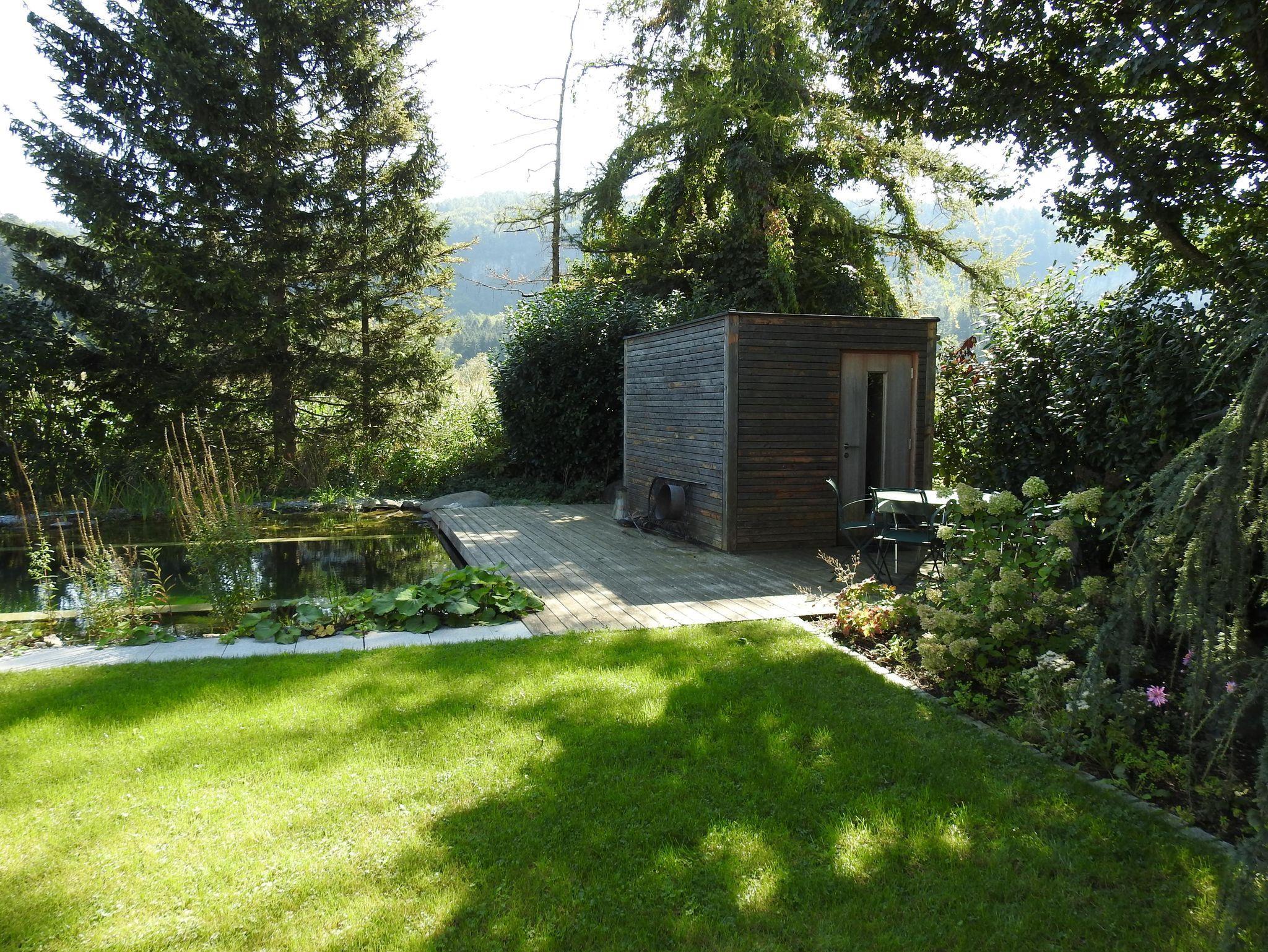 Achtung: Der Naturpool ist nur für Schwimmer! 3-Seitig ist der Pool durch die Pflanzen gesichert, auf der Seite der Sauna ist er aber ungesichert 240cm tief. Der Naturpool ist ganzjährig zB. auch nach der Sauna benutzbar oder als Kneipbecken auf der Mauer. Nach der Stiege ist er 120 cm tief und im Schwimmbereich 240cm.