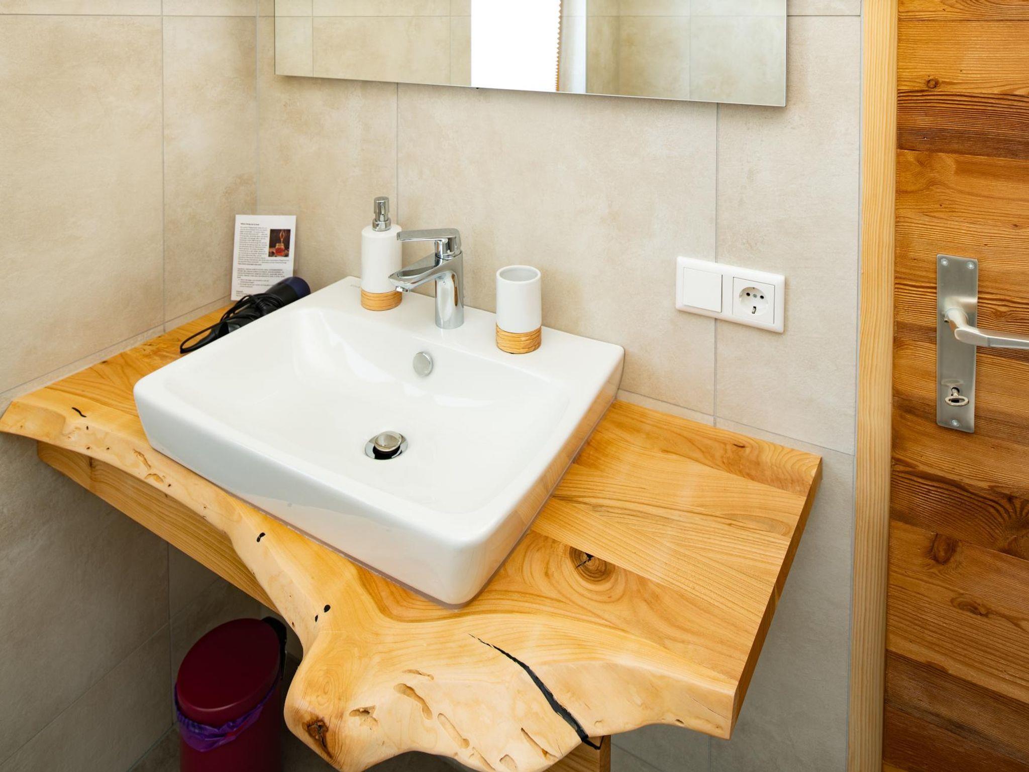 Zirbenduft, wunderschöne Tischlermöbel, liebevolle und farbige Akzente sorgen für einen Wohlfühlfaktor. Jedes unserer Zimmer wurde von unserem Sohn Daniel mit sehr viel Akribie und Sorgfalt für Euch hergestellt. Die Duschen und die WCs sind hell und ermöglichen teilweise atemberaubende Bergblicke. Am Balkon kann man die wunderbare Umgebung auf sich wirken lassen und die neu gestaltete Terrasse im Erdgeschoß ist eine kleine, aber feine Oase. Rund um unser kleines Anwesen können sich die Kinder austoben - eine wunderschöne Streuobstwiese lässt die Herzen von Naturliebhaber*Innen höher schlagen.