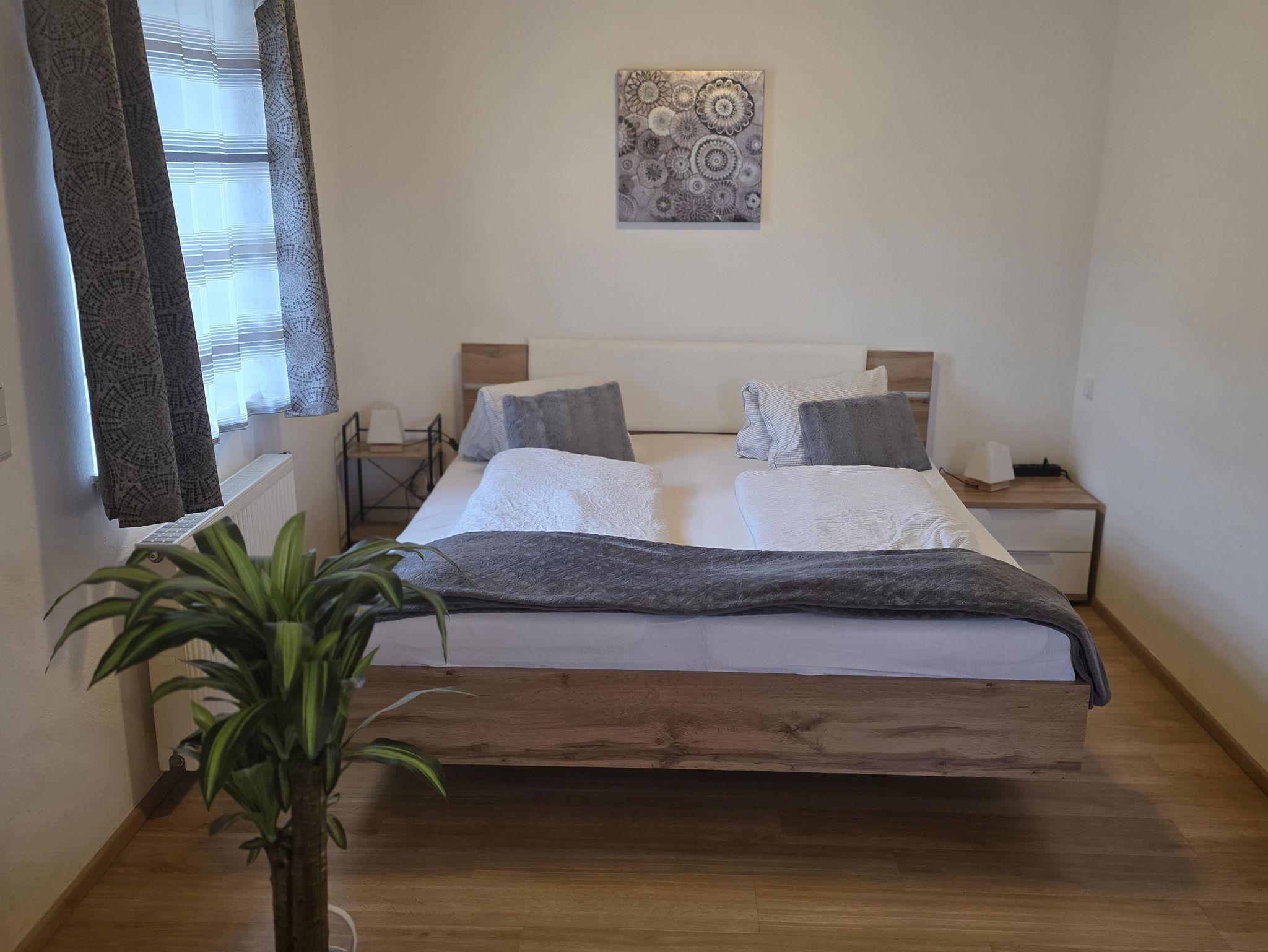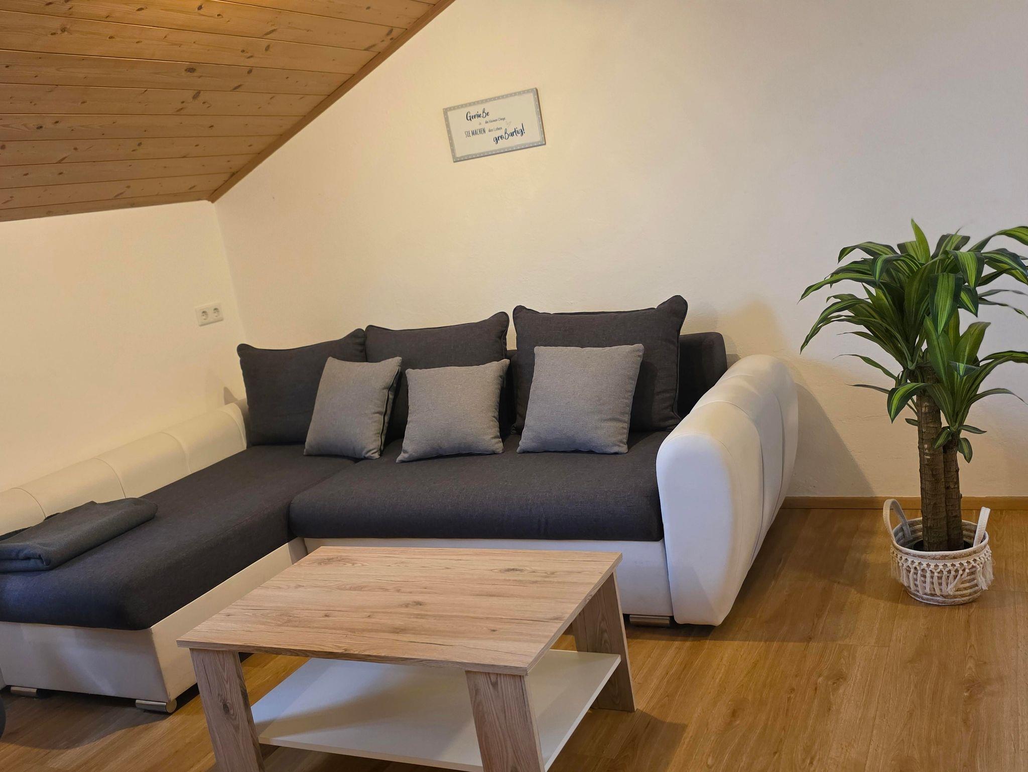 Unser Appartement/ Familienzimmer besteht aus einem Raum mit Doppelbett, Ausziehsofa, Küchenzeile, TV, Vorraum, Dusche/WC und natürlich gratis WLAN