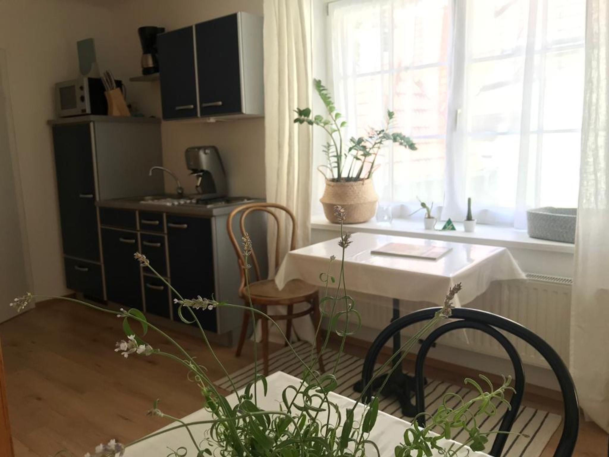 Die gut ausgestattete Gemeinschaftsküche mit Geschirrspüler, Kühlschrank, Herd, Mikrowelle, Wasserkocher, Toaster, Kaffeefilter- und Espressomaschine stehen allen Gästen zur Verfügung. Auch das Einstellen von Fahrrädern ist möglich. Parkplätze sind fußläufig erreichbar und durch einen von mir ausgestellten Parkschein gebührenfrei.