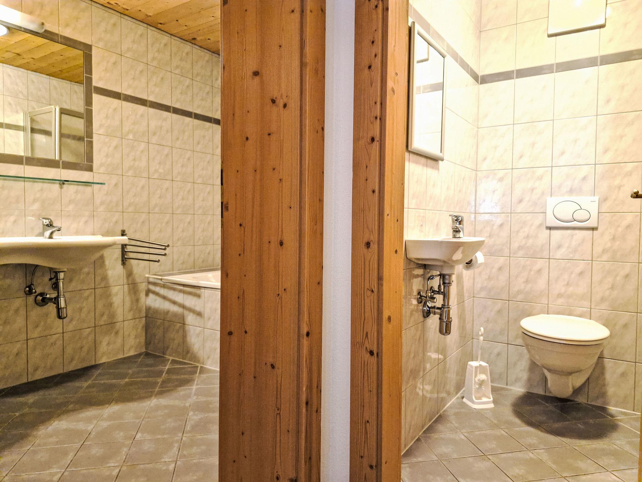 5-room semi-detached house 90 m2 on 2 levels, on the upper floor. Beautiful and cosy furnishings: entrance hall. Upper floor: 1 double bedroom. 1 room with 2 beds. Kitchen-/living room (dishwasher, 4 ceramic glass hob hotplates, kettle, microwave, freezer, electric coffee machine) with dining table and TV (flat screen). Exit to the balcony. Sep. WC, bath/shower/WC, double hand-basin. Heating. Top floor: 1 double bedroom. Kitchen-/living room (2 hot plates, microwave, electric coffee machine) with 1 bed, dining nook and TV (flat screen). Very beautiful view of the mountains and the countryside. Facilities: children's high chair, hair dryer. Internet (WiFi, free).