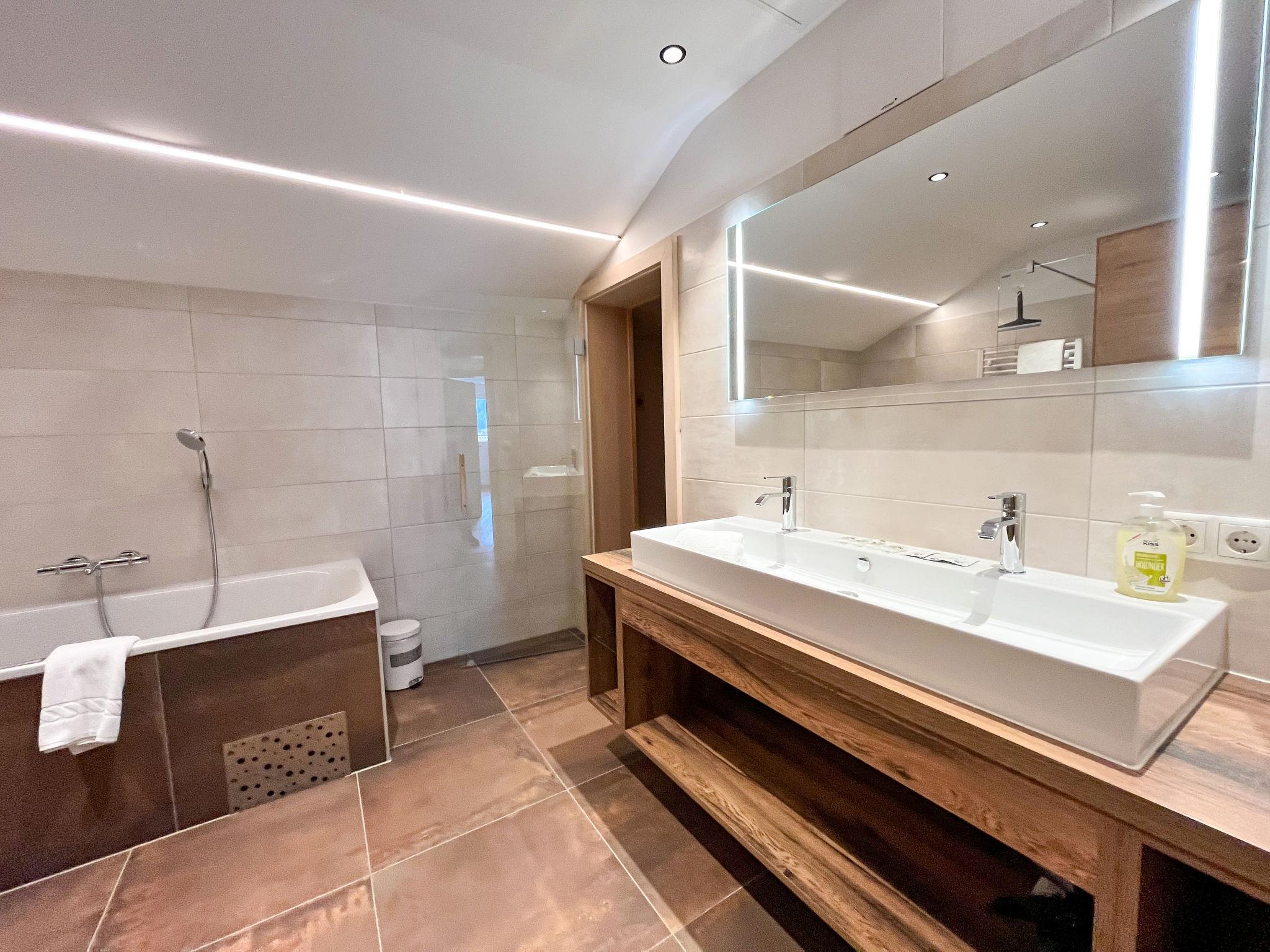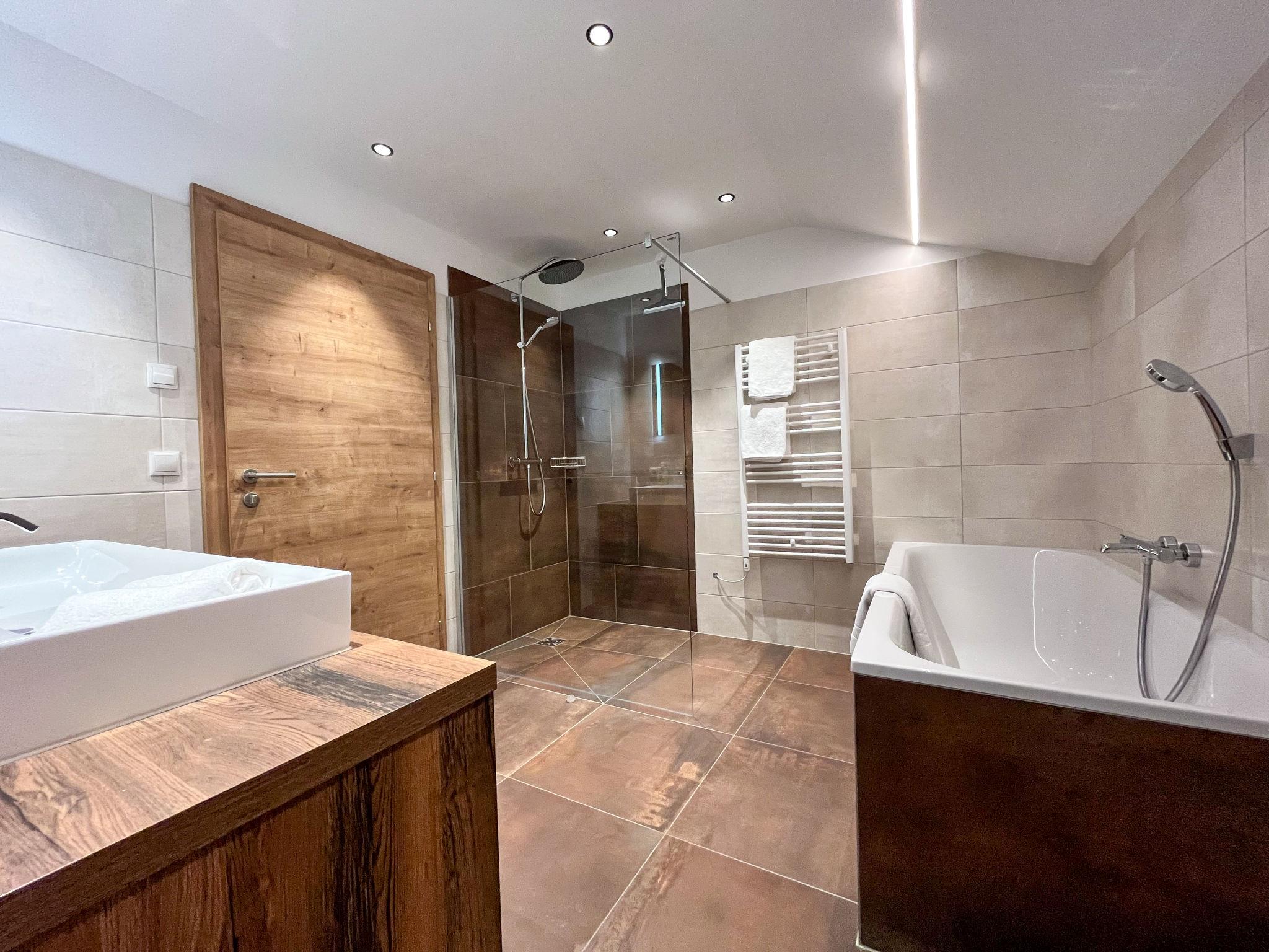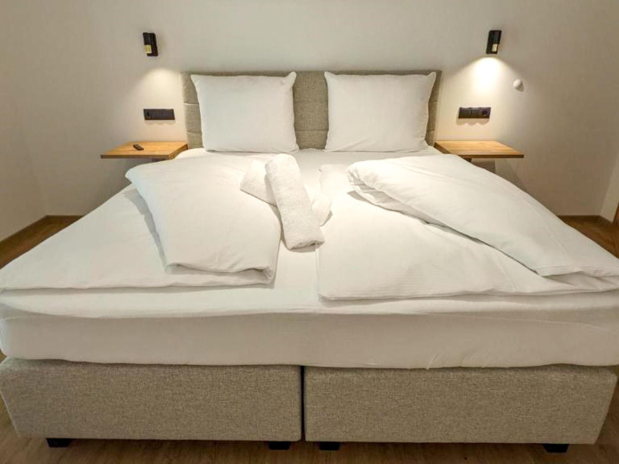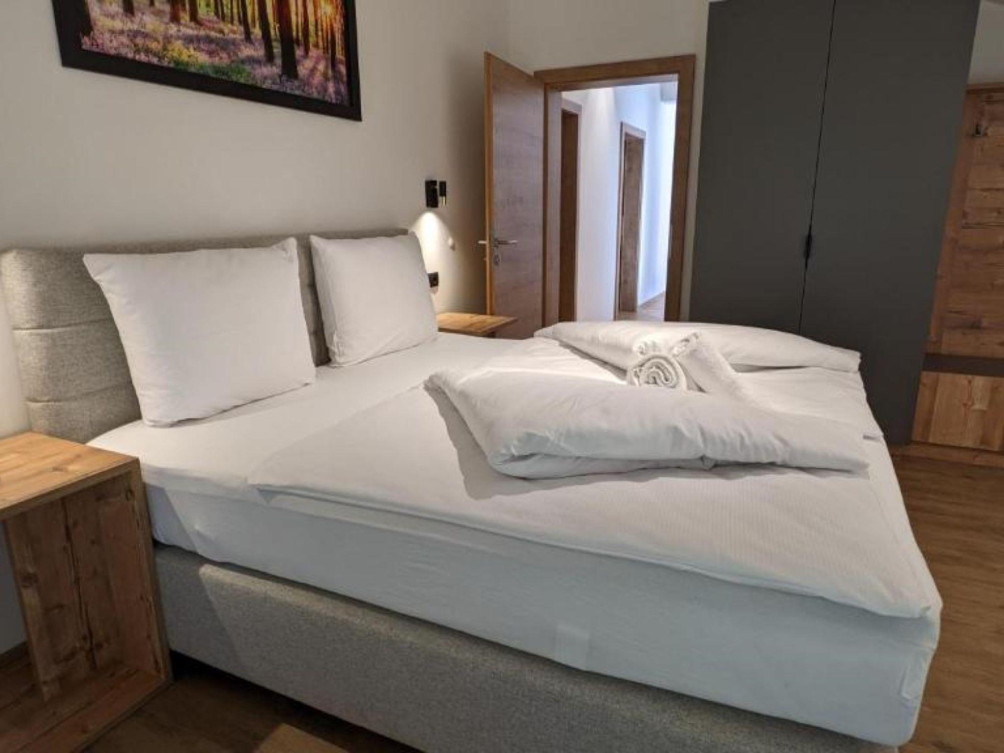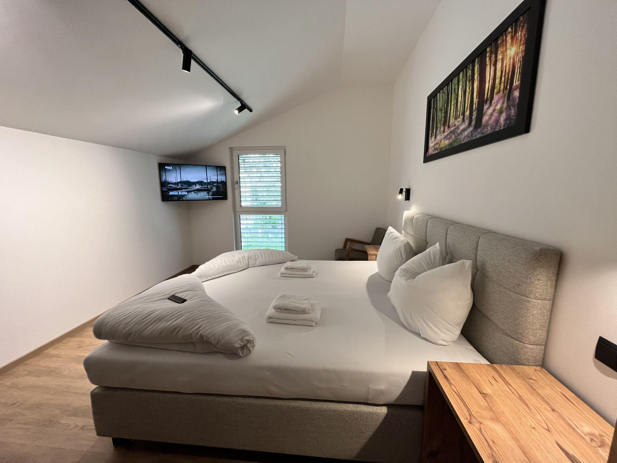 "Apart Andrea", 4-room maisonette 140 m2 on 2 levels on 2nd floor. Object suitable for 6 adults + 2 children. Comfortable furnishings: entrance hall. Living room with satellite TV (flat screen). Kitchen (oven, dishwasher, 4 induction hot plates, toaster, kettle, freezer, electric coffee machine, Capsules for coffee machine (Nespresso) extra) with dining table, satellite TV (flat screen). Sep. WC. Underfloor heating. Upper floor: 2 double bedrooms, each room with satellite TV (flat screen). 1 room with 1 double sofabed, 1 double bed and satellite TV (flat screen). Exit to the loggia. Bath/shower, sep. WC, double hand-basin, hydro massage bath, Sauna. Underfloor heating. Parquet floors. Balcony furniture.