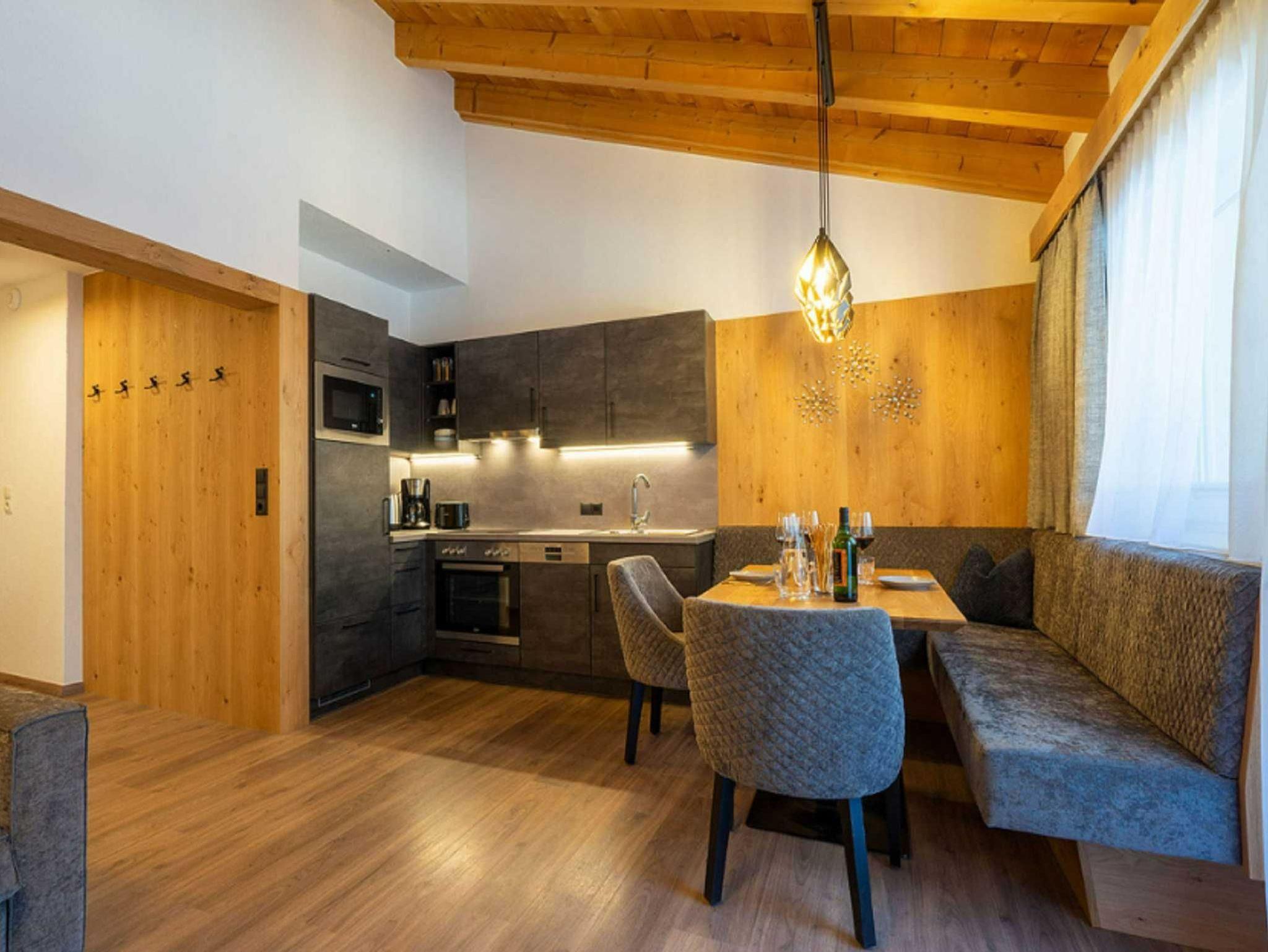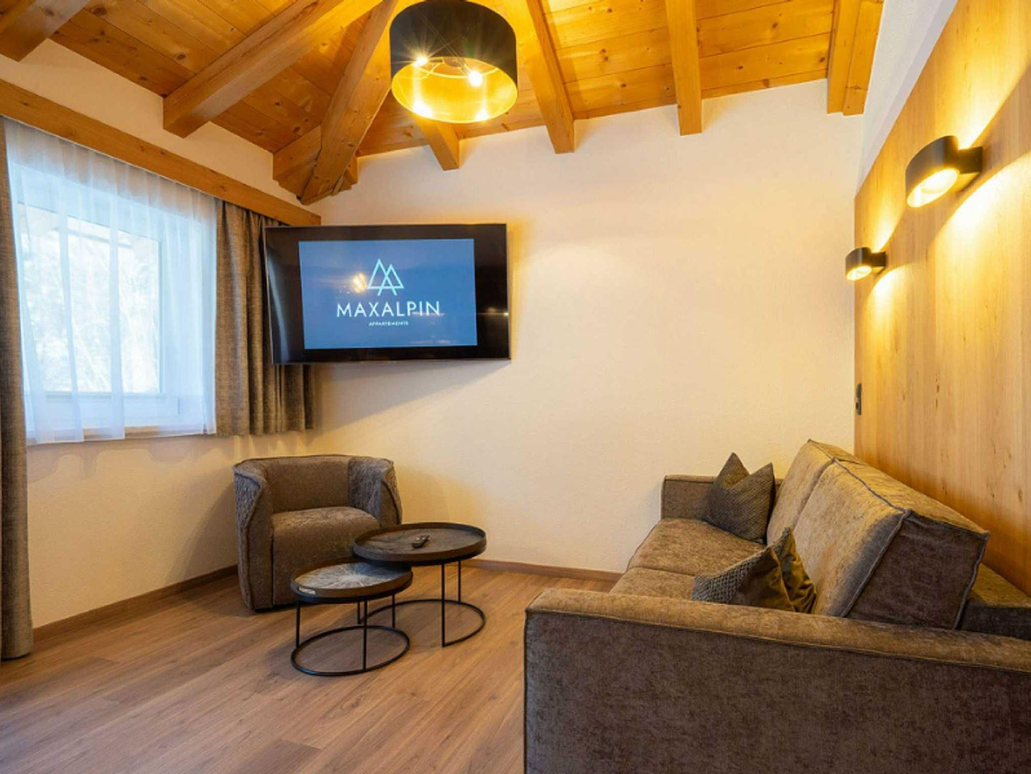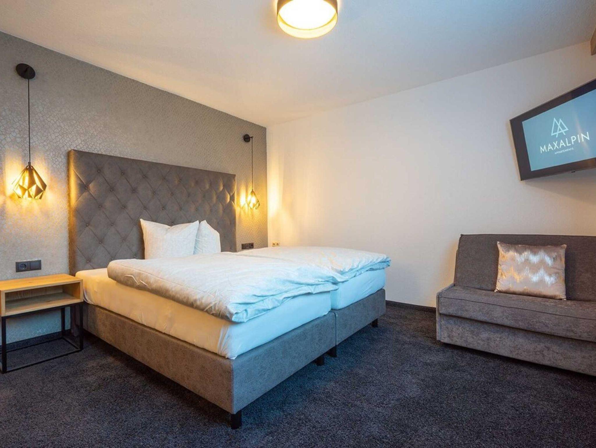 Das modern eingerichtete und 2020 sanierte Appartement MAXAlpin mit 43m2 (max. 4. Personen) besteht aus einem getrennten Schlafzimmern (Doppelbett Kleiderschrank und Schreibtisch), Badezimmer mit Bedewanne und separatem WC. Die vollausgestattete Wohnküche beinhaltet einen Herd, Backofen, Kühlschrank, Gefrierfach, Gläser, Geschirr, Besteck, Toaster, Wasserkocher, Kaffeemaschine (Filter), Mikrowelle und hat eine gemütliche Sitzecke (max. 6. Personen) sowie eine ausziehbare Couch und einen Smart LED TV 65 mit Satellit Empfang. Über die Wohnküche gelangt man auf den zugehörigen Balkon. Bettwäsche, Badetücher, Geschirrtücher und WLAN werden kostenlos zu Verfügung gestellt.