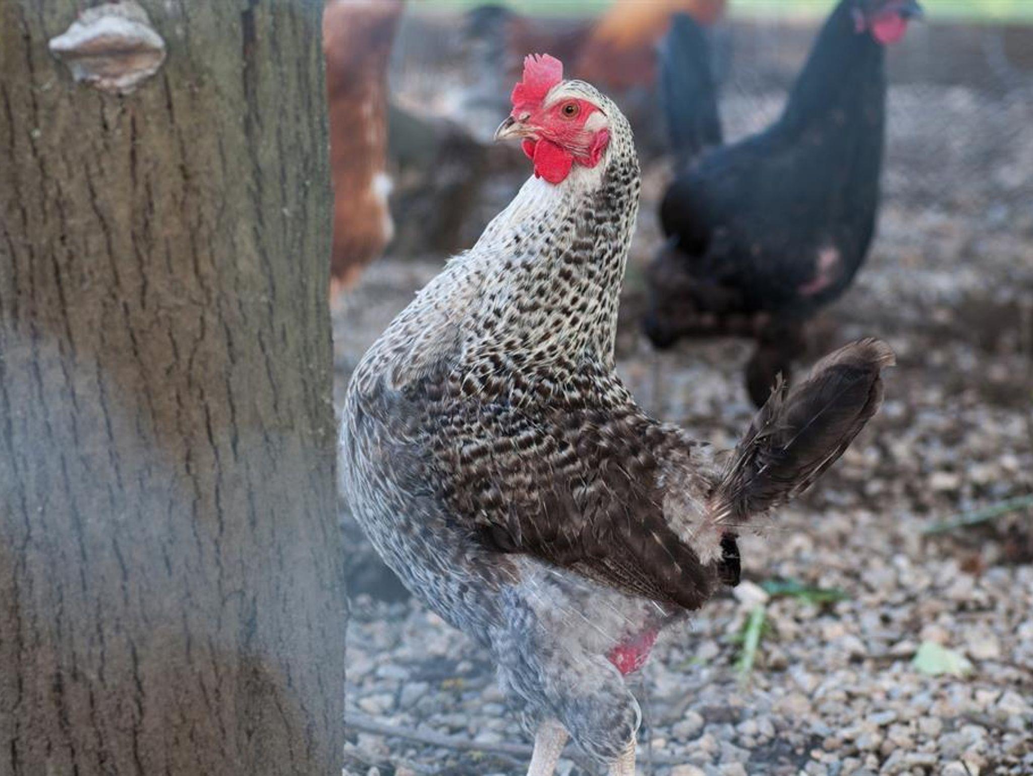 Willkommen an unserem Bio–Bauernhof mit Schafen und Kleintieren an einem Platz in der Sonne.