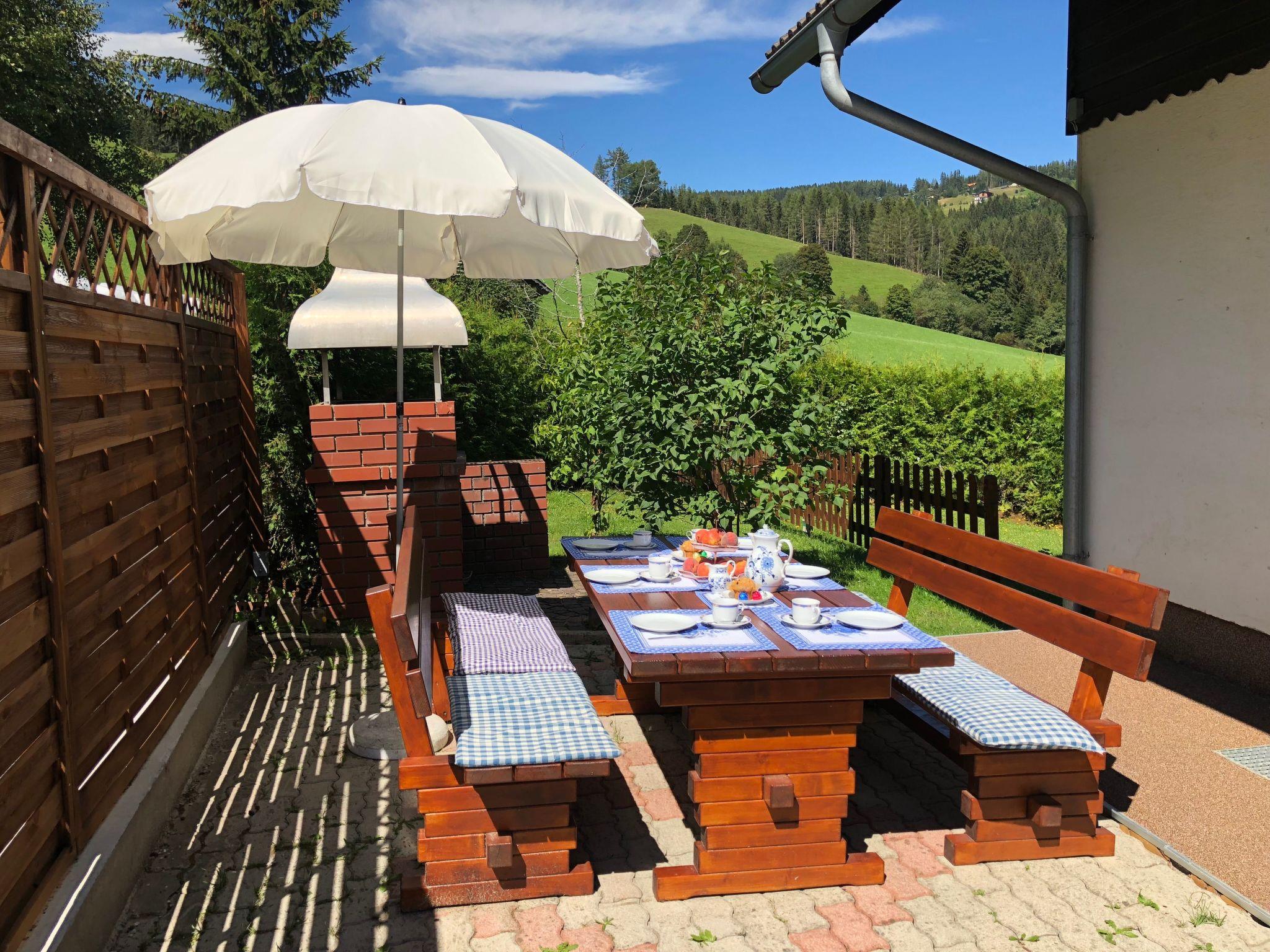 The holiday home is situated between the villages of Obdach and St. Wolfgang at approx. 1100 metres above sea level in an idyllic location surrounded by woods and meadows. It offers around 140 square metres of living space for up to 10 people in two separate accommodation units for 6 and 4 people respectively, each with 2 rooms as well as a bathroom and WC. The kitchen is modernly equipped with a fridge, electric cooker, microwave, dishwasher and coffee machine. The kitchen has a balcony for breakfast in the morning sun. In the lounge there is a TV (SAT), books and board games. Internet is available throughout the house via WLAN at no extra charge. Pets are welcome at no extra charge. In the garden there is a small children's playground, a brick barbecue and garden furniture.