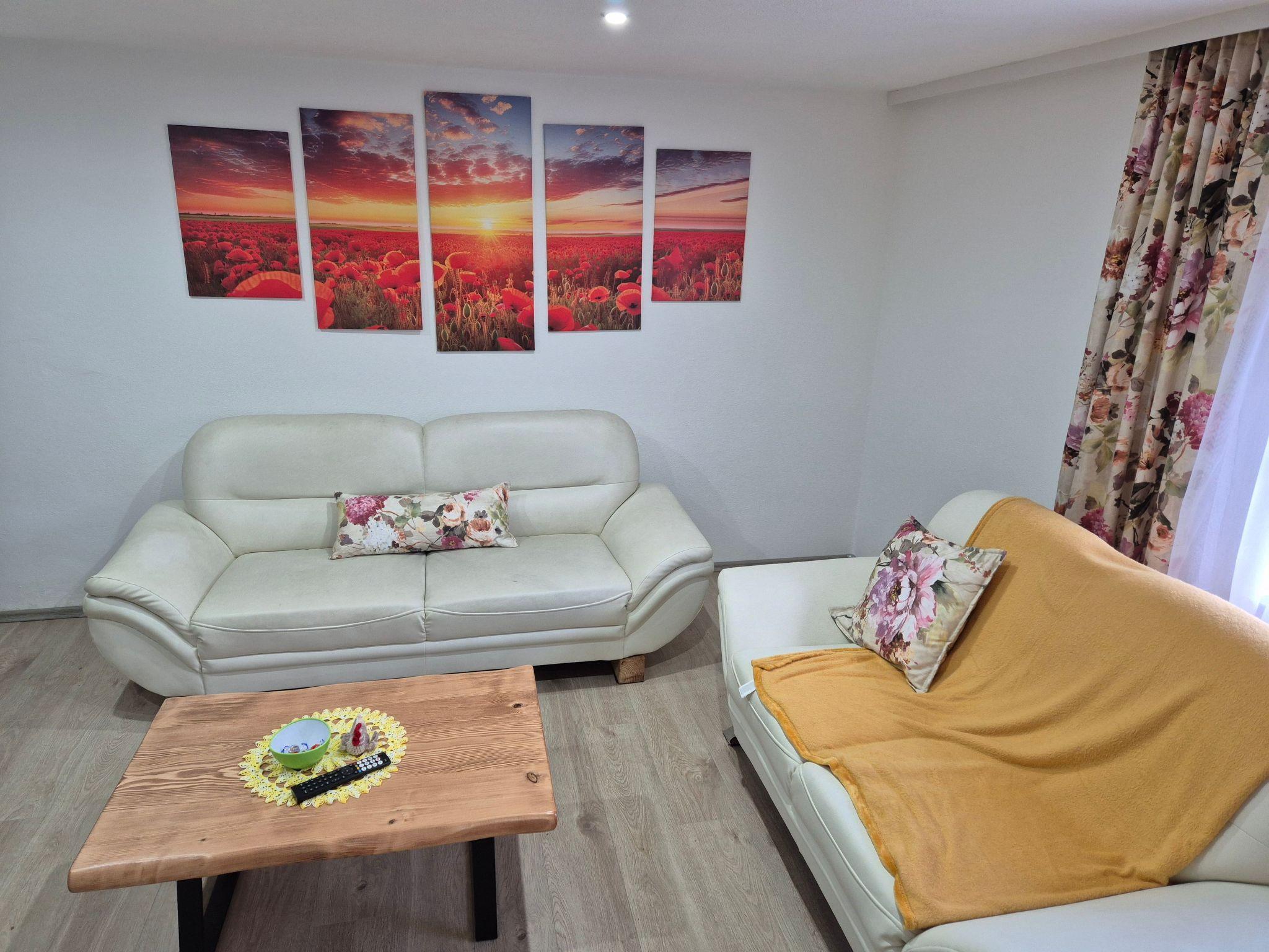 The interior of the Almhütte is designed to make your stay as comfortable as possible. It includes four cosy bedrooms and a bathroom with shower, ensuring that there is enough space for all guests. The facilities are rounded off with a washing machine, which is invaluable for longer stays. The kitchen is well equipped with an induction hob and dishwasher to make self-catering a breeze.