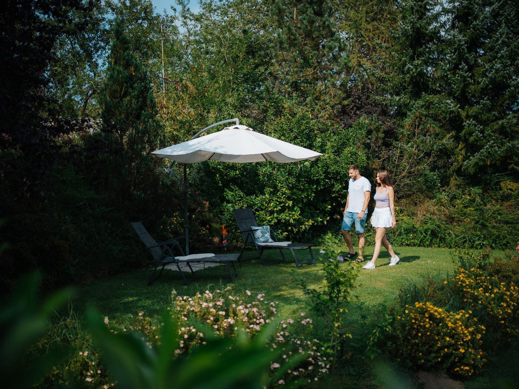 Eine große Wiese rund um die Villa Waidblick lädt zum Verweilen ein. Für gemütliche BBQ Runden haben wir Griller vor Ort, in der Genießerecke auf unserem Gelände gibt es ein ausgewähltes Sortiment an Köstlichkeiten aus der Region.