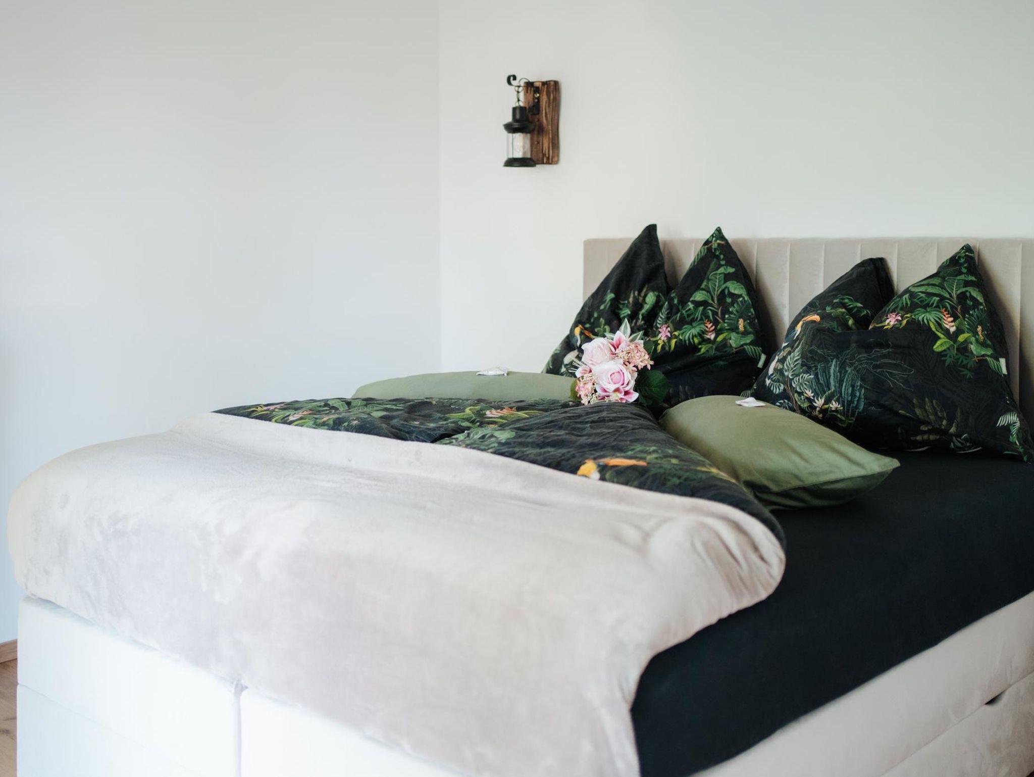 Gemütlich - Hochwertig - Hunde Willkommen Die Liebe zum Detail und eine hochwertige Ausstattung mit Vollholzmöbel prägen das Interieur der Villa Waidblick. Alle Appartements verfügen über eine voll ausgestattete Küche.
