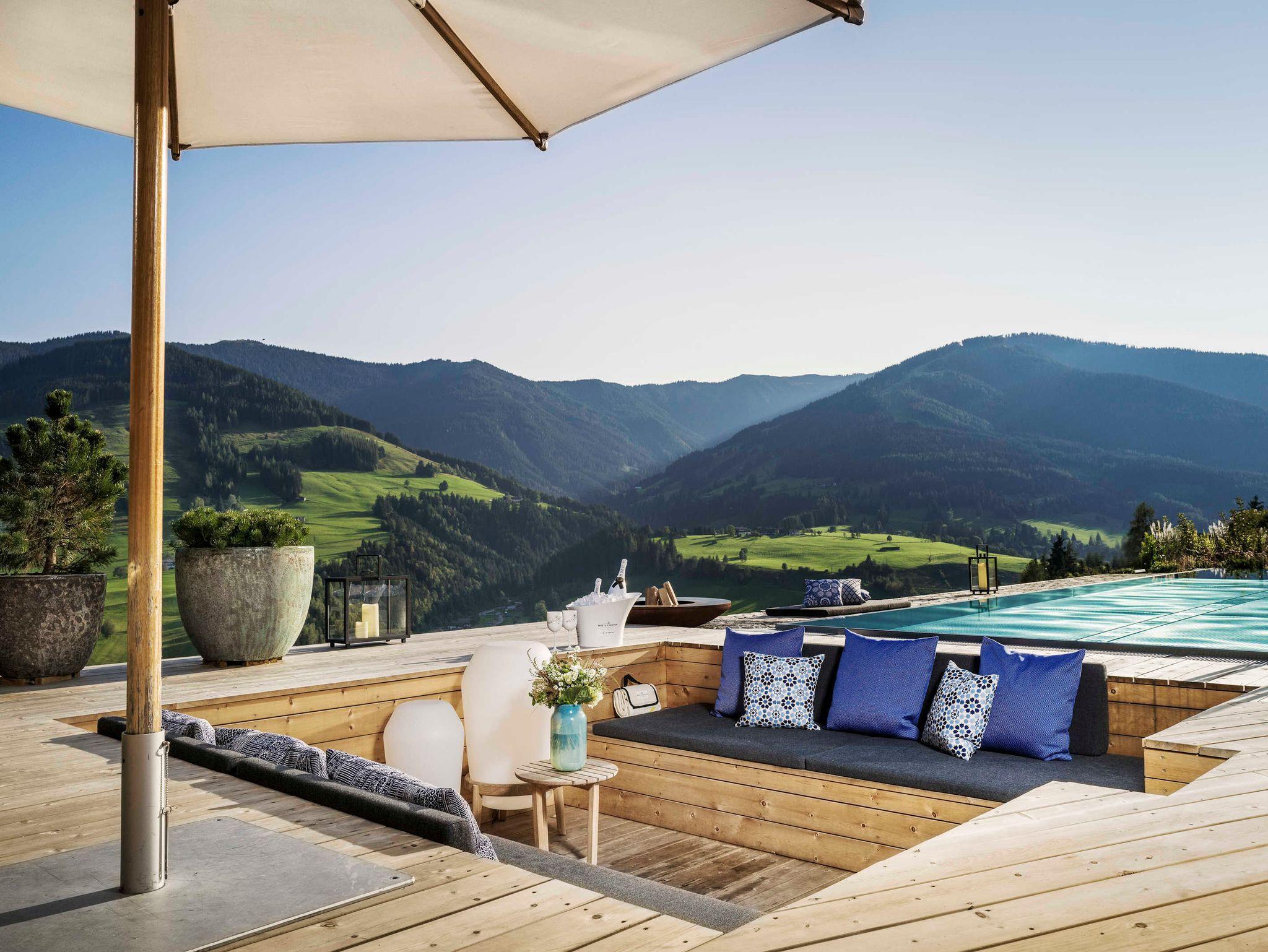 Ein luftig leichtes Loft, das das Lebensgefu¨hl der Berge in neuem Stil interpretiert und auf individuelle Art erleben la¨sst. Mit besonderem Designambiente voller Liebe zum Detail. Auf 180 m2 und verschiedenen Ebenen ero¨ffnen sich ein großzu¨giger Wohnbereich mit hohem Sichtdachstuhl, Ledersofa und Kamin, eine Ku¨che mit freistehendem Herd sowie ein Doppelzimmer und ein Masterbedroom - jeweils mit eigenem Bad. Fu¨r noch mehr Raum, frische Luft und Inspiration im Urlaubsreich geht es hinaus auf die Terrassen oder den Balkon. Große Glasfronten, Eichenholzbo¨den und Zirbenholzdecken lassen das natu¨rliche Ambiente des Chalets in allen Sinnen erleben. Auch hier gipfelt die exklusive Privatspha¨re im Wellnessbereich mit eigenem Infinity-Outdoorpool zum Abtauchen und Treibenlassen.