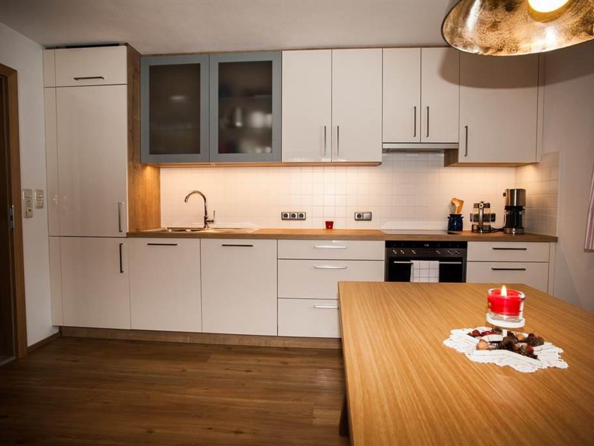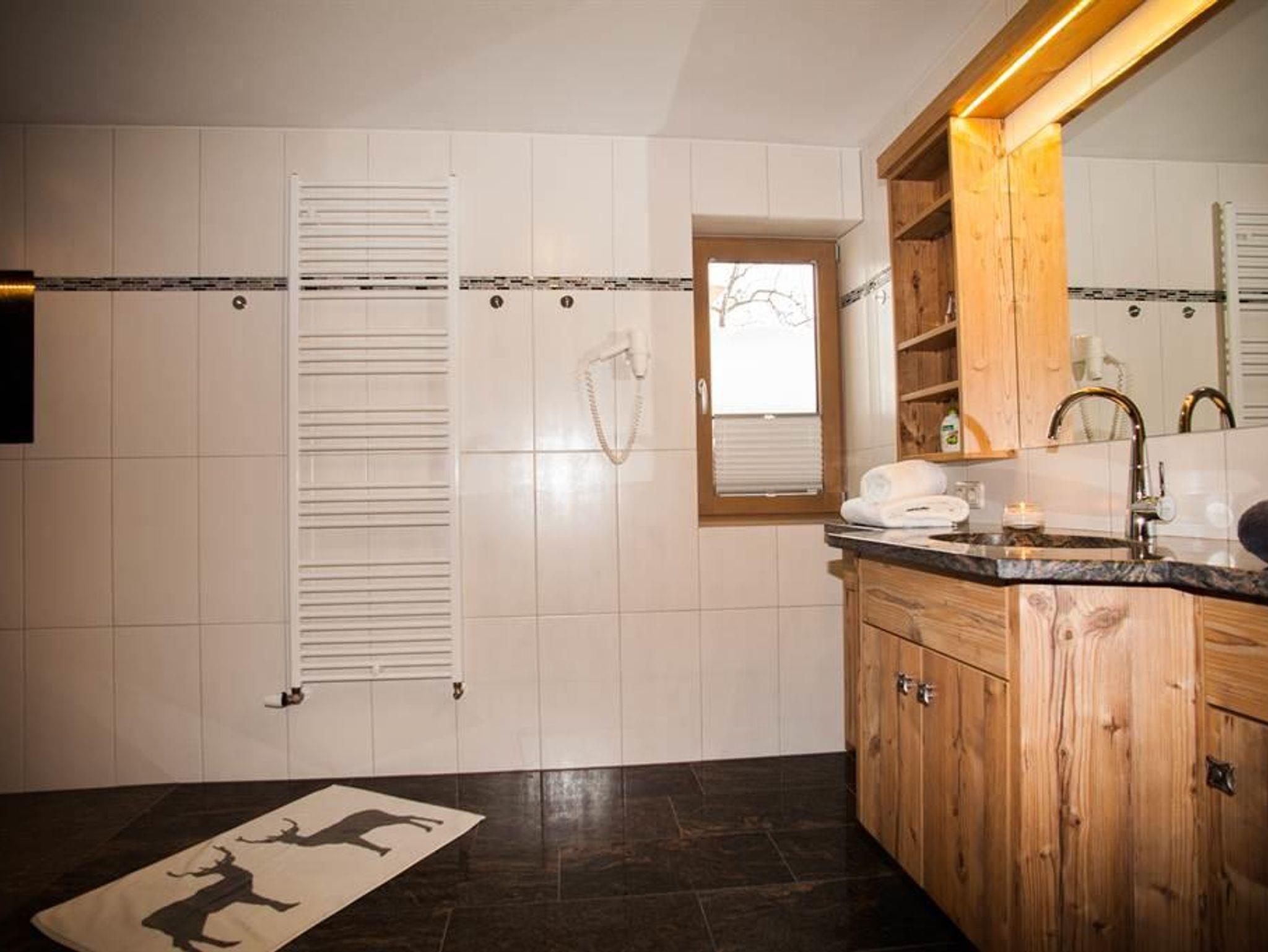 Unser Appartement ist gemütlich, zweckmäßig und mit modernen, praktischen Möbeln eingerichtet. Die Gesamtnutzungsfläche von 80 m² bietet Platz für 2 bis 7 Personen. Unser Appartement befindet sich im Parterre und ist südseitig ausgerichtet. Details Vorraum mit Garderobe und Schuhschrank Gemütlicher Wohn-Essbereich. Ein ausziehbares Sofa bietet Platz zum Schlafen für 2 Personen. Vollausgestattete, moderne Küche mit Geschirrspüler, Ceran-Kochfeld, Backofen, Kaffeemaschine, Wasserkocher, Kühlschrank mit Gefrierfach, komplettes Speise- und Kochgeschirr sowie Gläsersortiment, sämtliche Küchenutensilien, Spülmaschinentabs, Geschirrspülmittel, Geschirrtücher, Besen und Kehrschaufel Badezimmer (Schminkspiegel, Haarfön, Hand- und Duschtücher, Badevorleger) Zwei geräumige Schlafzimmer mit bequemen Doppelbetten sowie einem Einzelbett in einem der Schlafzimmer. Die Räume bieten ausreichend Platz für Ihre Garderobe. (Betten mit Bettwäsche bezogen) Behagliche Fußbodenheizung in allen Räumen Kostenloser W-LAN-Internetzugang sowie digitales TV Trockenraum - Skikeller bzw. abschließbarer Bikeraum Parkplatz direkt vor dem Haus (kostenlos)