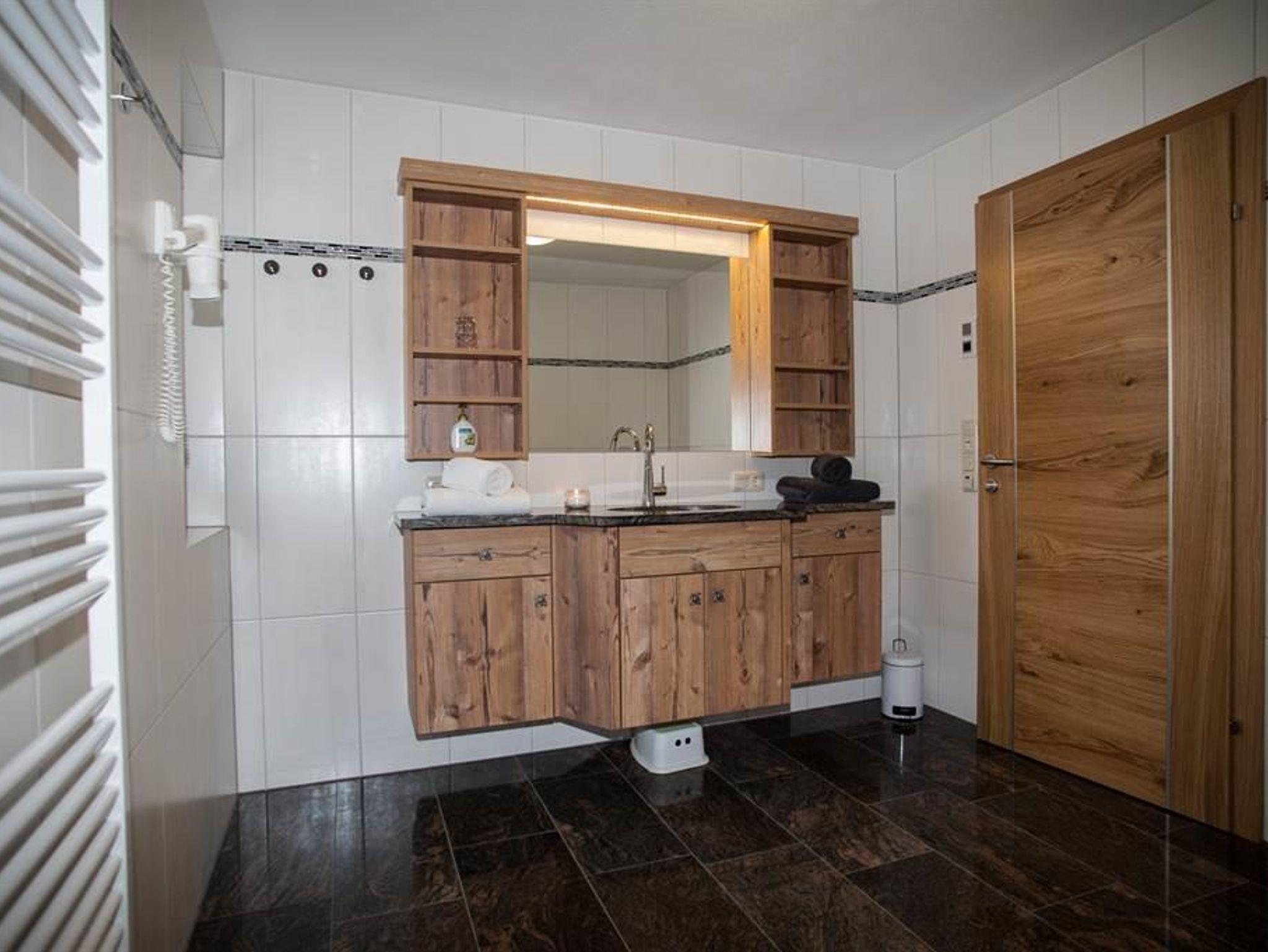 Badezimmer (Schminkspiegel, Haarfön, Hand- und Duschtücher, Badevorleger)