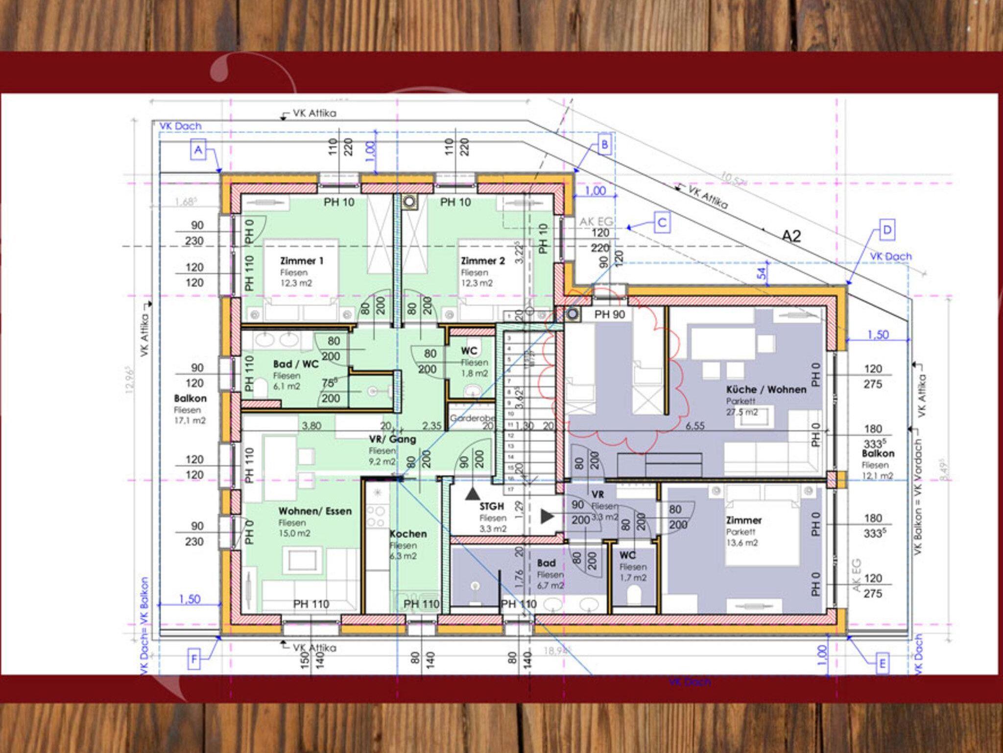 * Bad mit Dusche, Doppelwaschbecken, WC, + WC