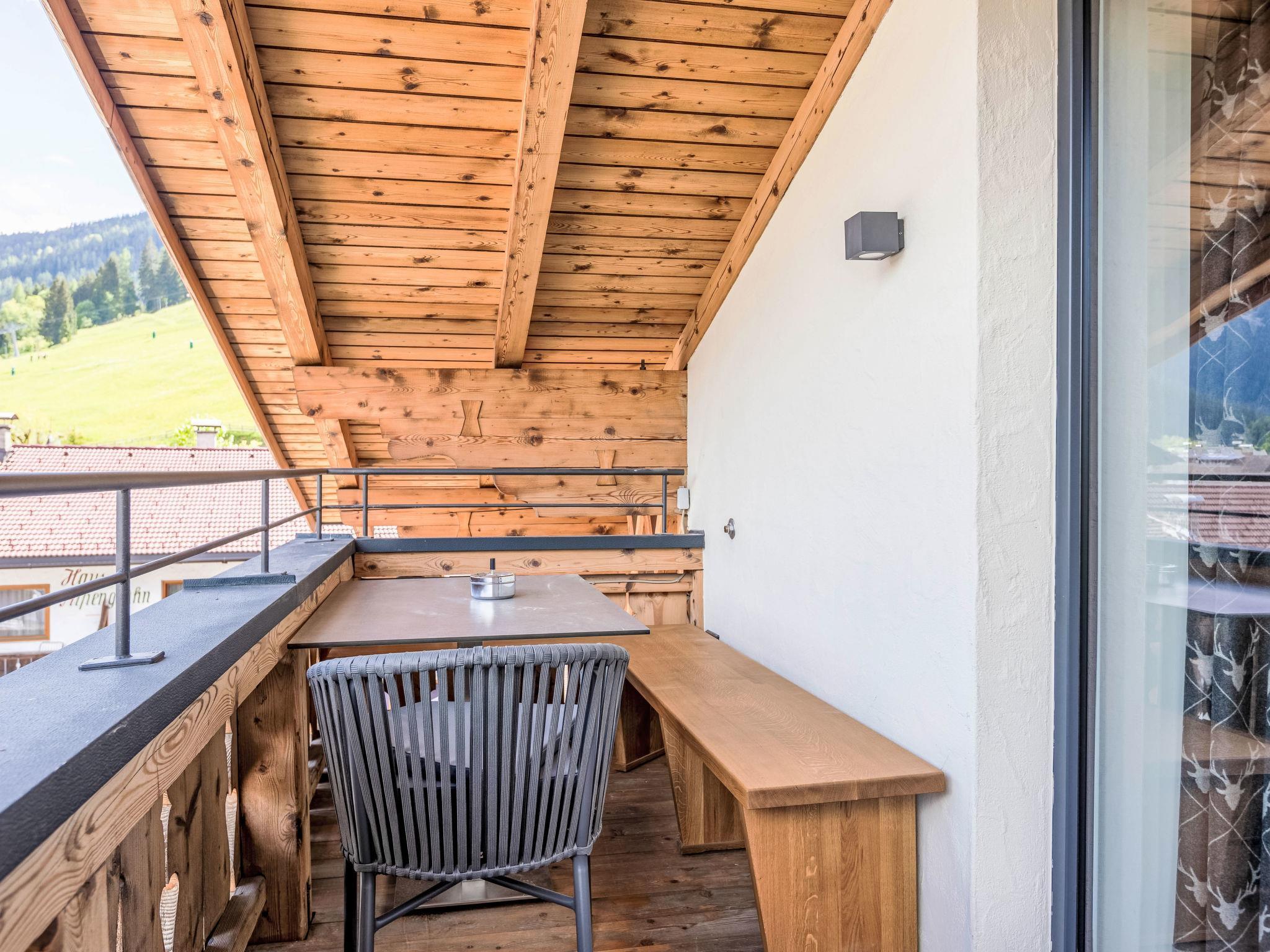 "Penthouse mit 2 Schlafzimmer", 3-room penthouse 86 m2. Bright, tasteful furnishings: living/sleeping room with 1 sofabed, dining table and satellite TV (flat screen). 2 double bedrooms. Open kitchen (oven, dishwasher, 4 ceramic glass hob hotplates, toaster, kettle, microwave, electric coffee machine, Capsules for coffee machine (Nespresso) extra). 2 baths or showers/WC. Heating. Balcony. Balcony furniture. Very beautiful panoramic view of the mountains. Facilities: hair dryer. Internet (WiFi, free). Please note: non-smokers only. The property is one of a type of property or apartment.