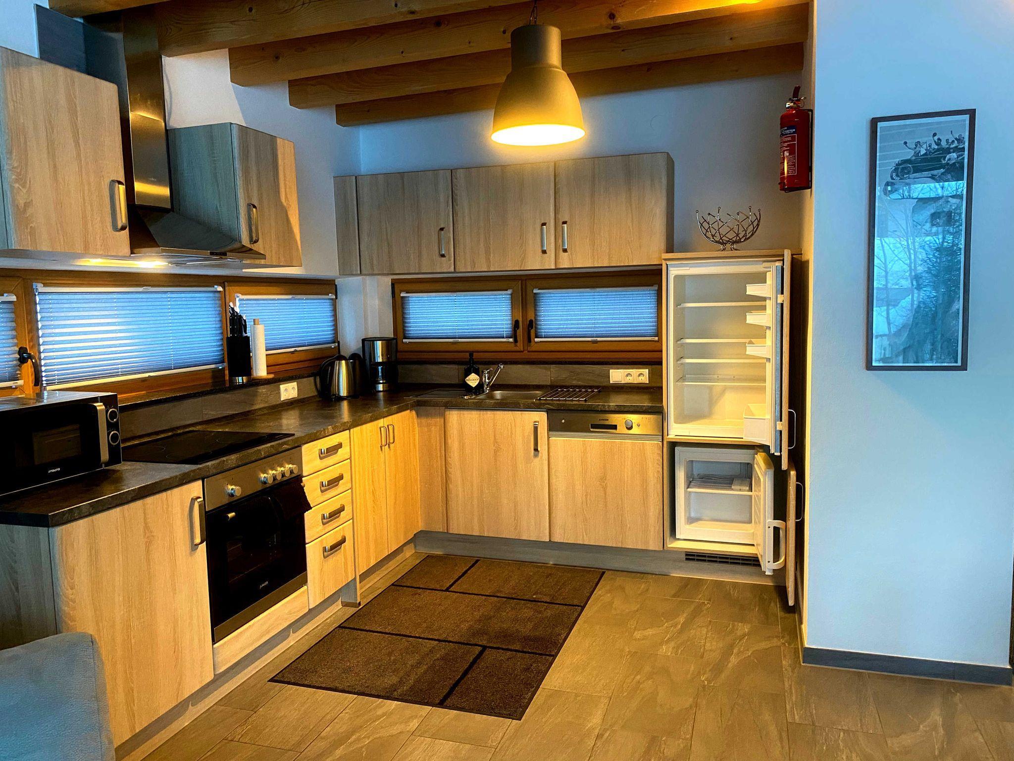 - Küche inkl. Geräten, Spülmaschine, Mikrowelle, Filterkaffeemaschine, Geschirr, Kochutensilien, Kühl- und Gefrierschrank