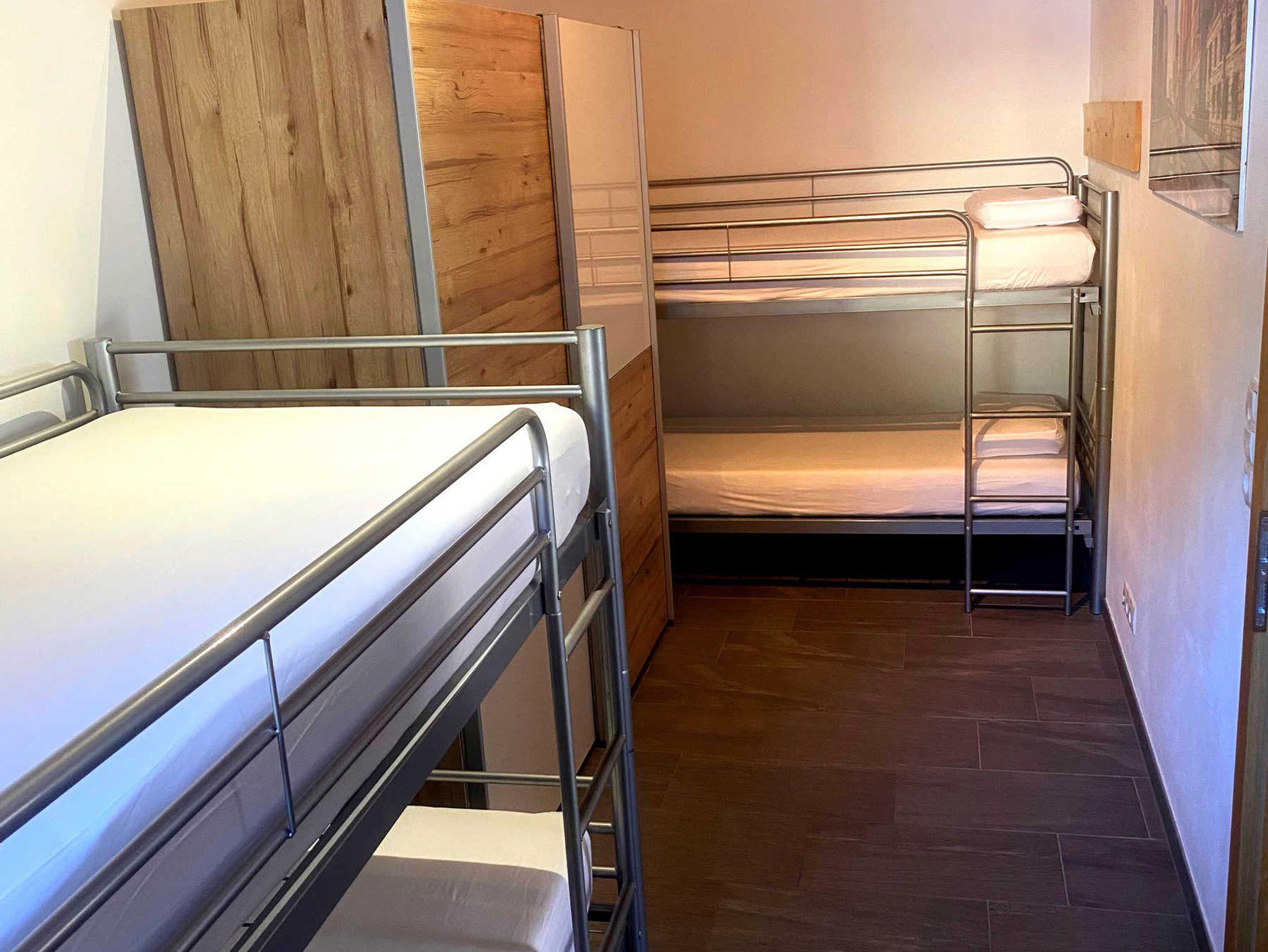 - 1 kleinerem Zimmer (10,5 m2) mit 2 Stockbetten und Kleiderschrank