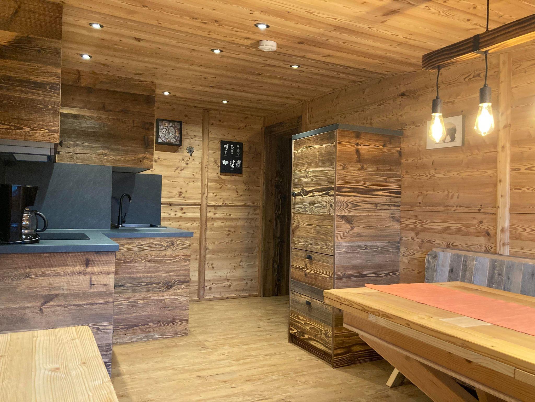 Das Rustikal ist unser Exclusiv Appartement. Es wurde bis August 2022 komplett saniert. Es verfügt über einen Flur, ein rustikales Schlafzimmer, ein modernes Badezimmer, eine moderne Küche mit Geschirrspüler und Backofen und mit einer großzügiger Eckbank, ein Wohnzimmer mit Divan und Sofa und einem kleinen Balkon. Das Appartement ist in Zirbenholz und Altholz ausgestattet und vermittelt ein gemütliches und wohliges Hüttenambiente mit modernen Akzenten. Es wurde 2022 komplett saniert.