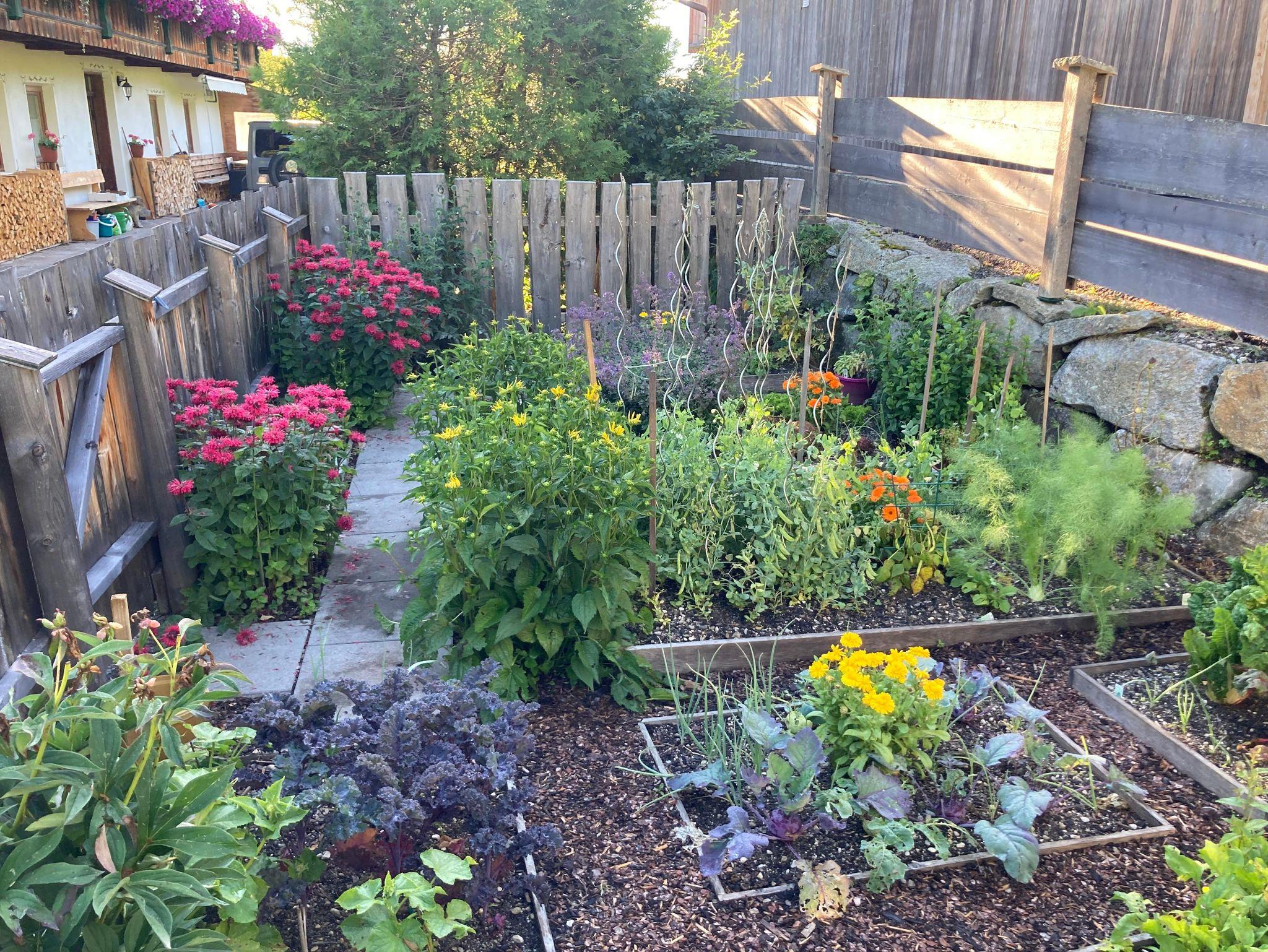 Für die Selbstverpfleger steht im Sommer ein Gemüse/Kräutergarten bereit, wo sich jeder Gast die frischen Kräuter oder Salate nehmen kann.