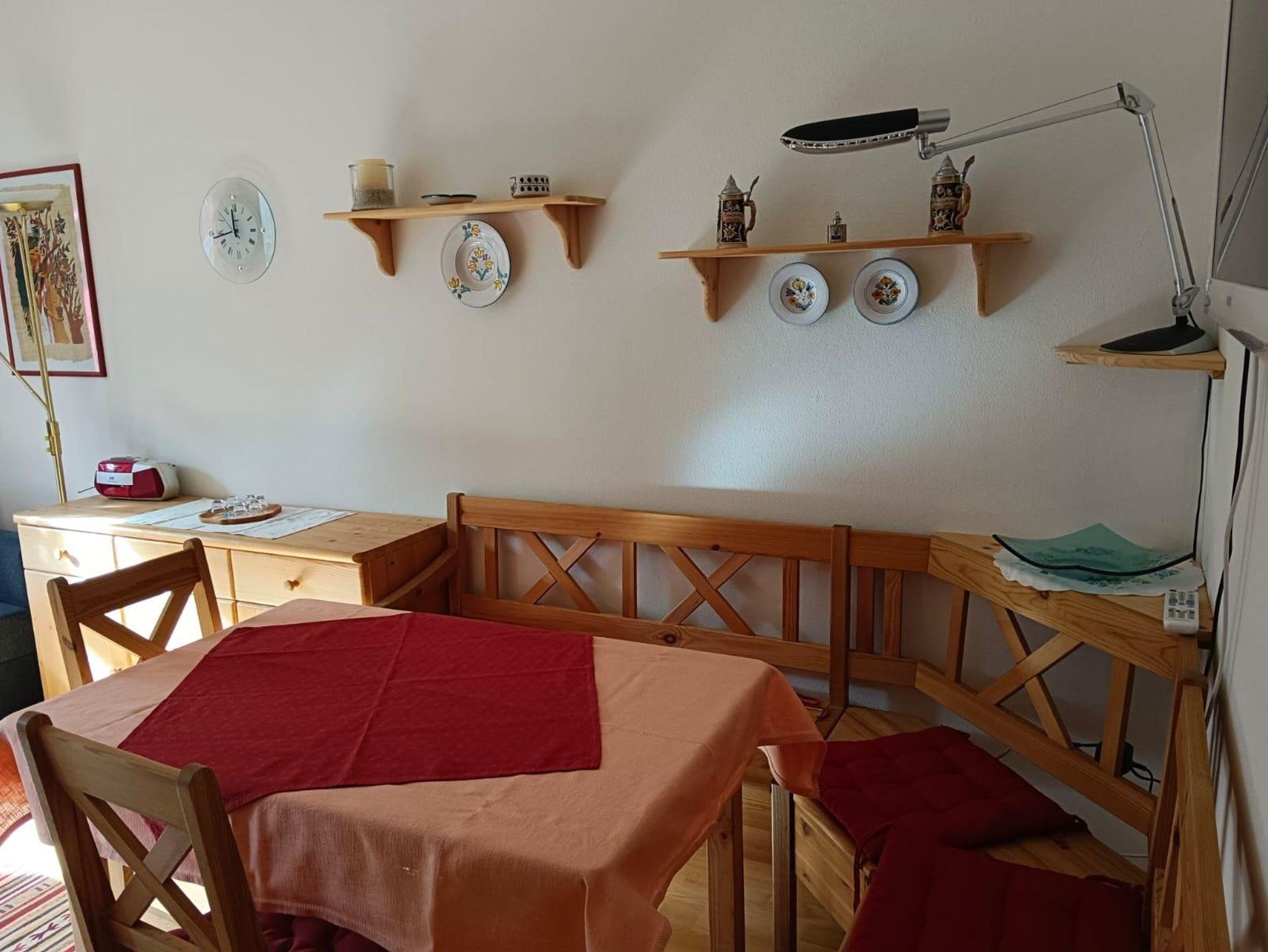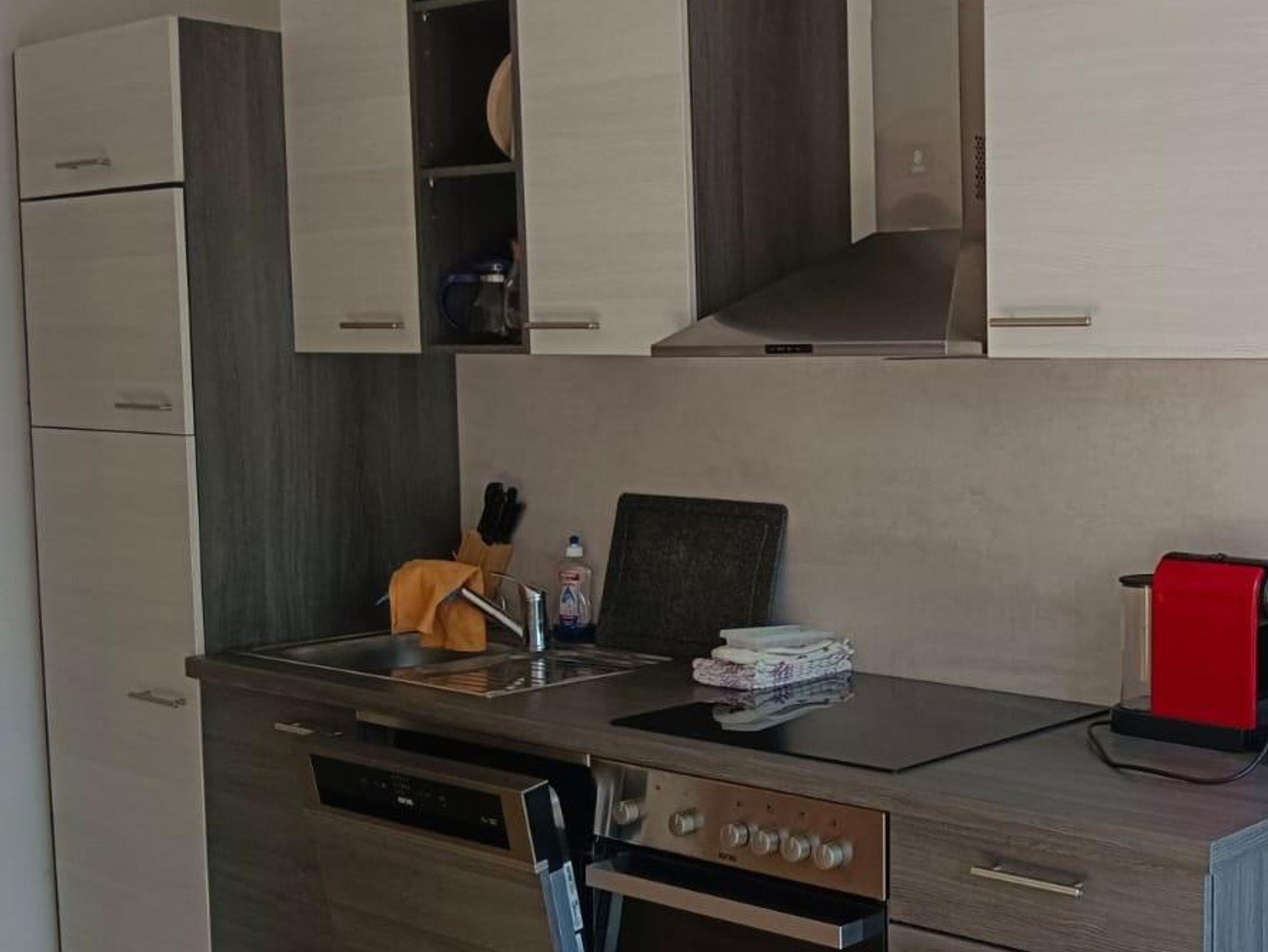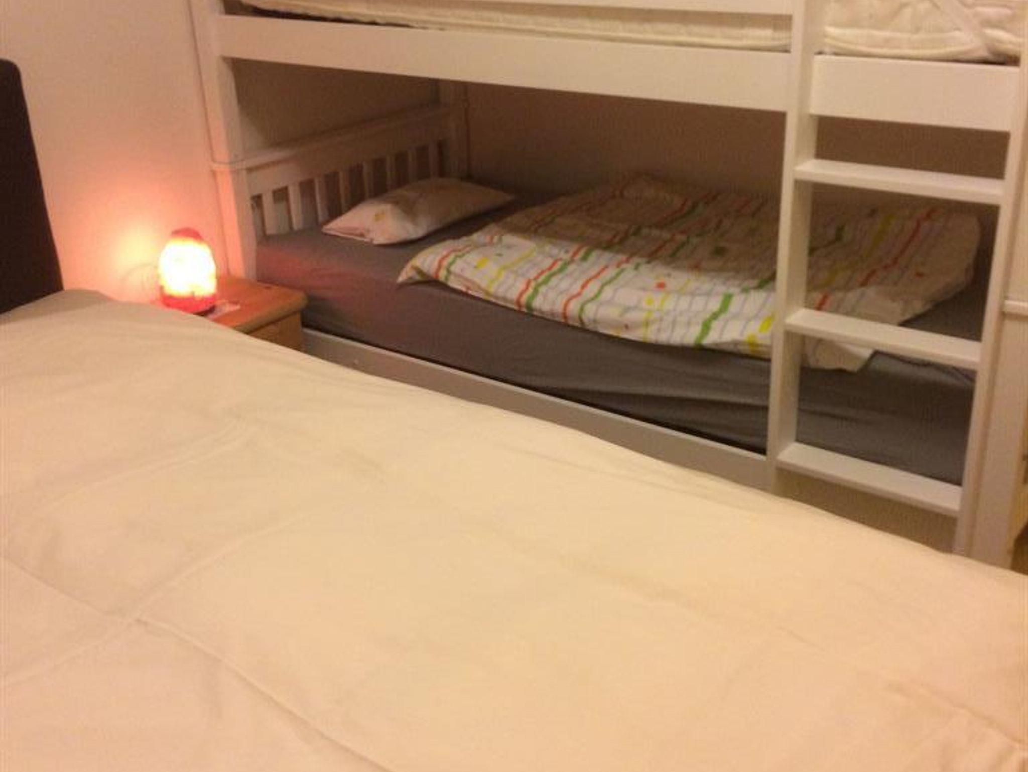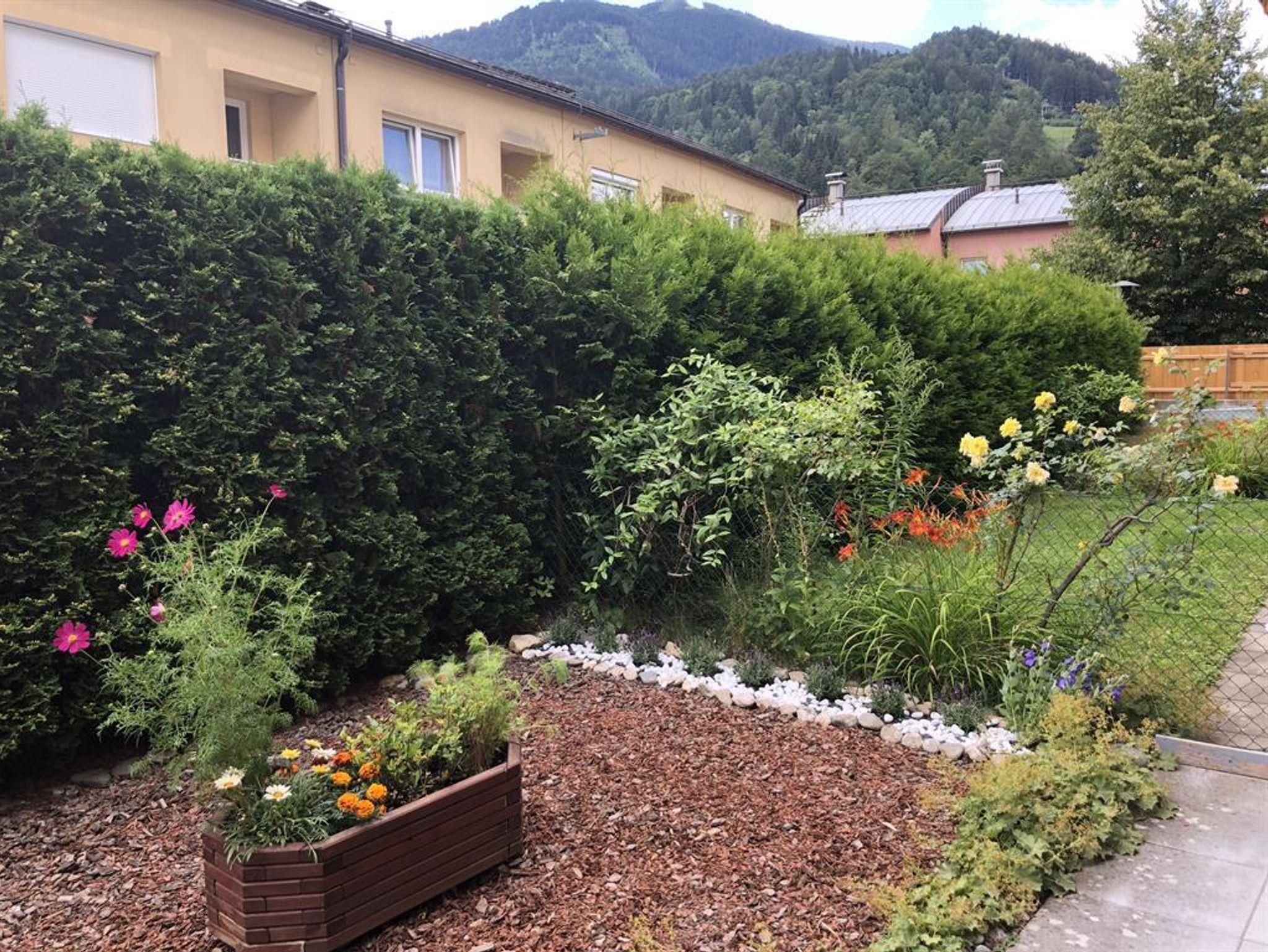 Bad mit Badewanne und Waschmaschine, WC separat, Schlafzimmer mit extralangem Boxspringbett (180 x 220) und Stockbett. Wohnküche mit ausziehbarer Couch, Südterrasse mit Garten, SAT-TV, Tiefgaragenplatz, Bettwäsche und Handtücher incl., WLAN