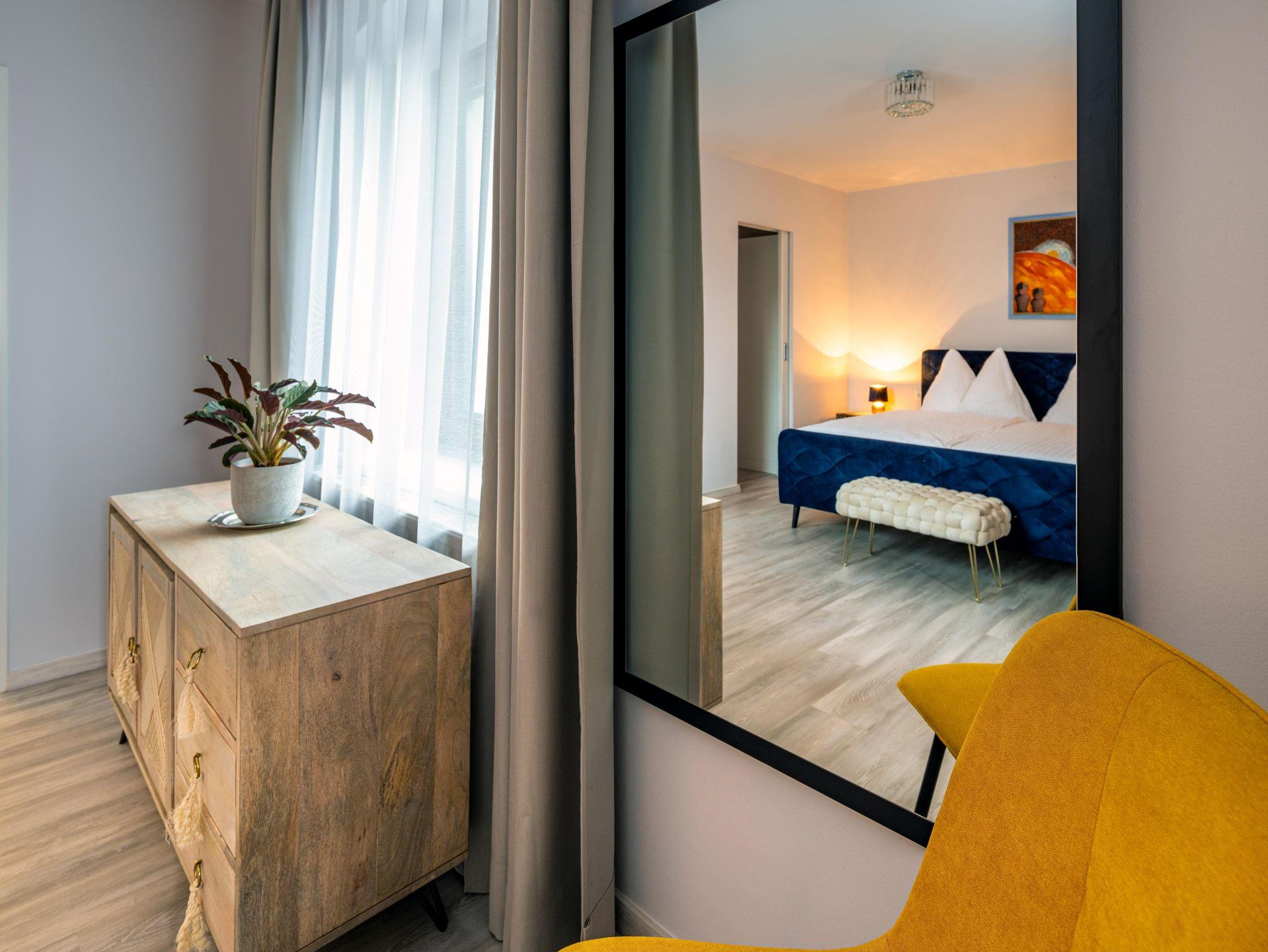 Die ideale Wohnung für bis zu 2 Personen plus ein Kind mitten in der Stadt und doch mit viel Ruhe und Rückzug. Erster Stock, Parkettböden, 65m² Wohnfläche: Küche vollausgestattet, 1 Wohn- & 1 Schlafzimmer, Ankleideraum, Bad plus 40m² Terrasse.