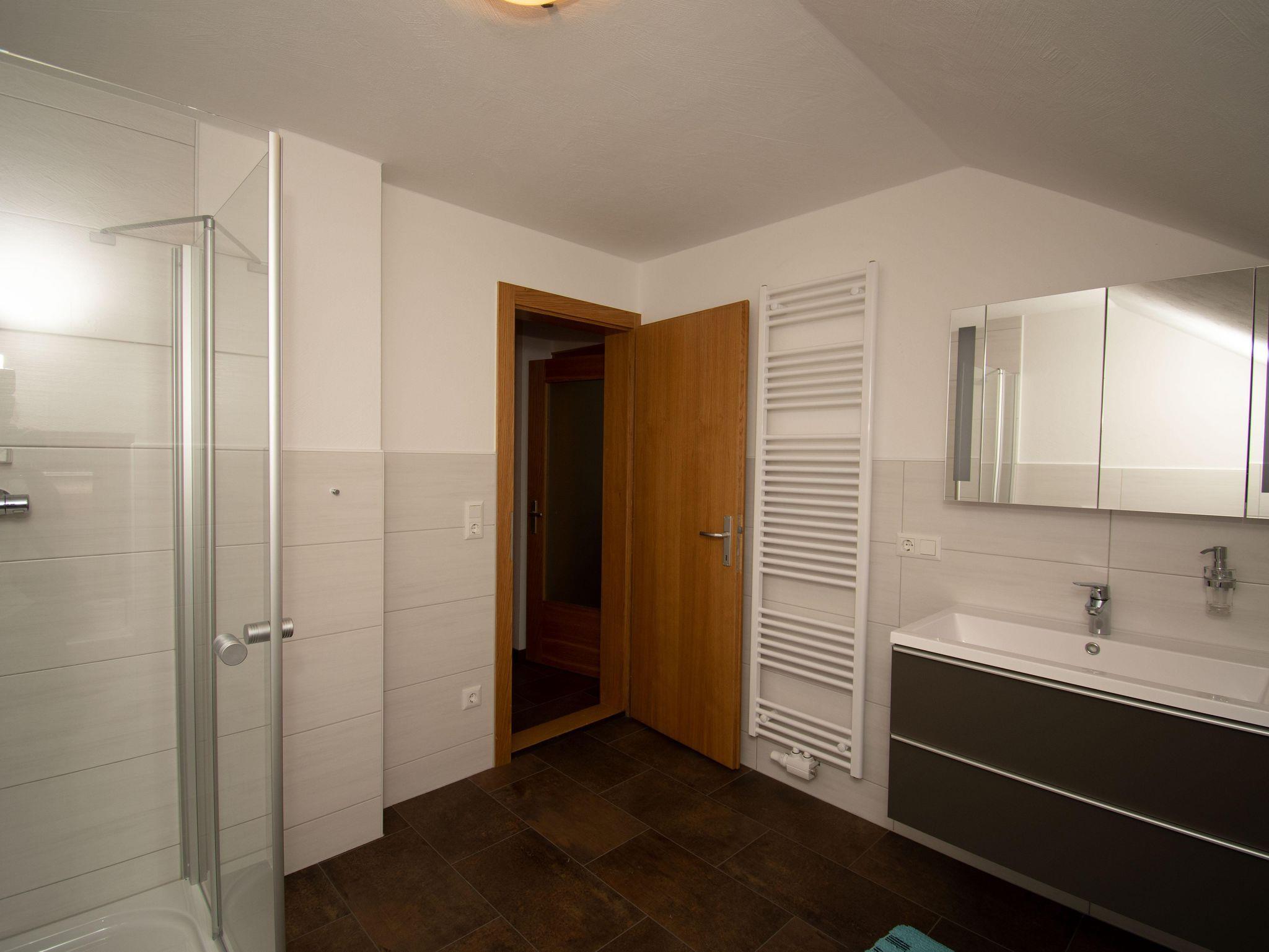 Geräumiges Badezimmer Das geräumige, neu errichtete Badezimmer umfasst Dusche, WC, Waschbecken und Föhn. Jeder Gast erhält kostenlose Handtücher. So kann man sich nach einer Wanderung oder einem Tag auf der Skipiste bestens erfrischen und wohlfühlen.