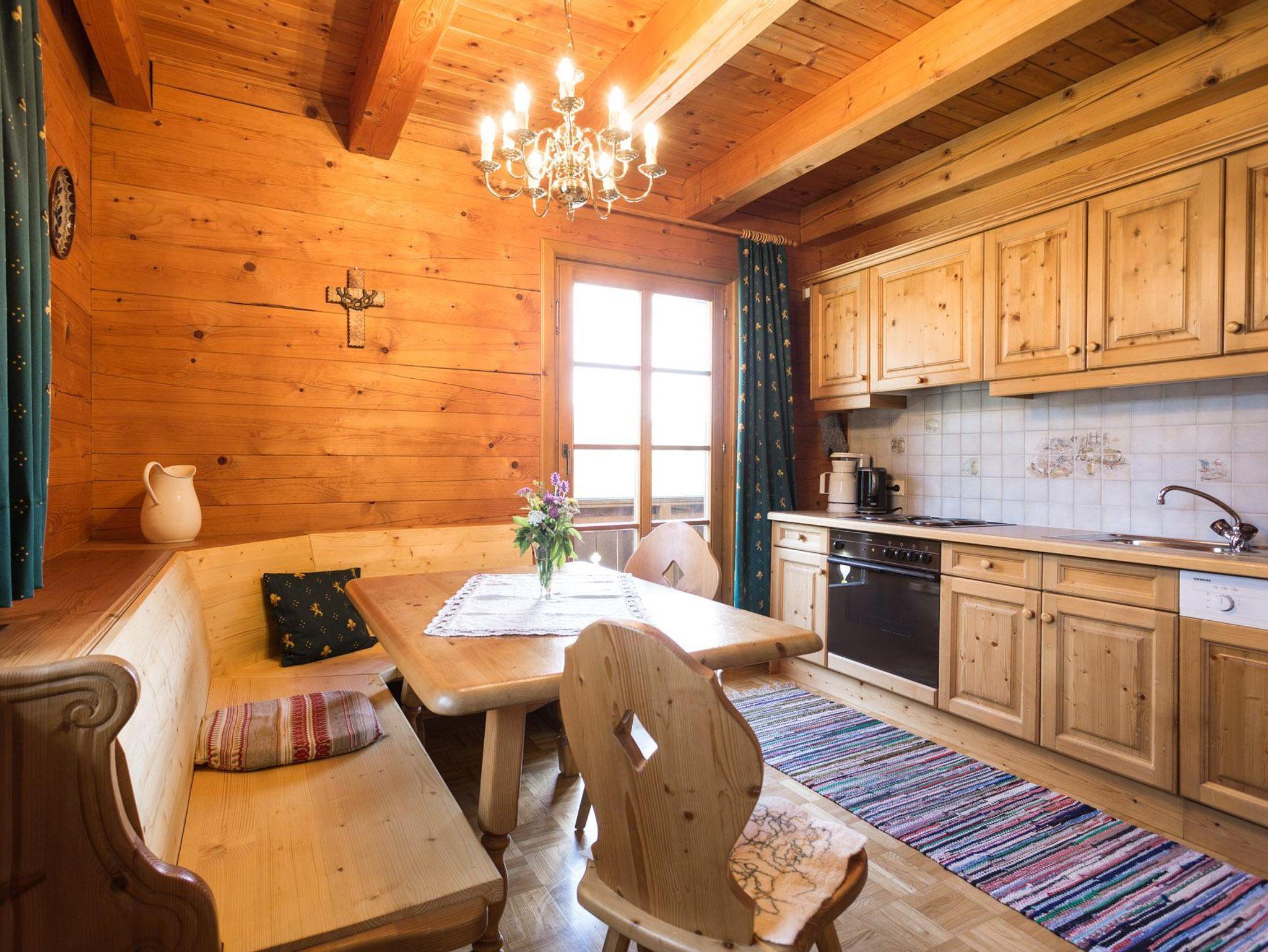 Gesundheitsbewußt und liebevoll eingerichtet, Wohnungsgröße 55 m²; 2 Schlafzimmer, im Kinderzimmer steht ein Etagenbett, Bettlänge 200 cm, Naturmatratzen, Schafwollbettdecken, Wohnküche, E-Herd mit Backofen, Mixer, Kaffeemaschine, ausreichend Geschirr, Kühlschrank, Couch mit Leselampe, TV, Radio mit CD und MP3, WLAN, Vorraum mit Garderobe, Bad und WC getrennt, Föhn, Bettwäsche, Hand-, Bade- und Geschirrtücher, Holzblockhaus, Vollholzmöbel, Parkettböden
