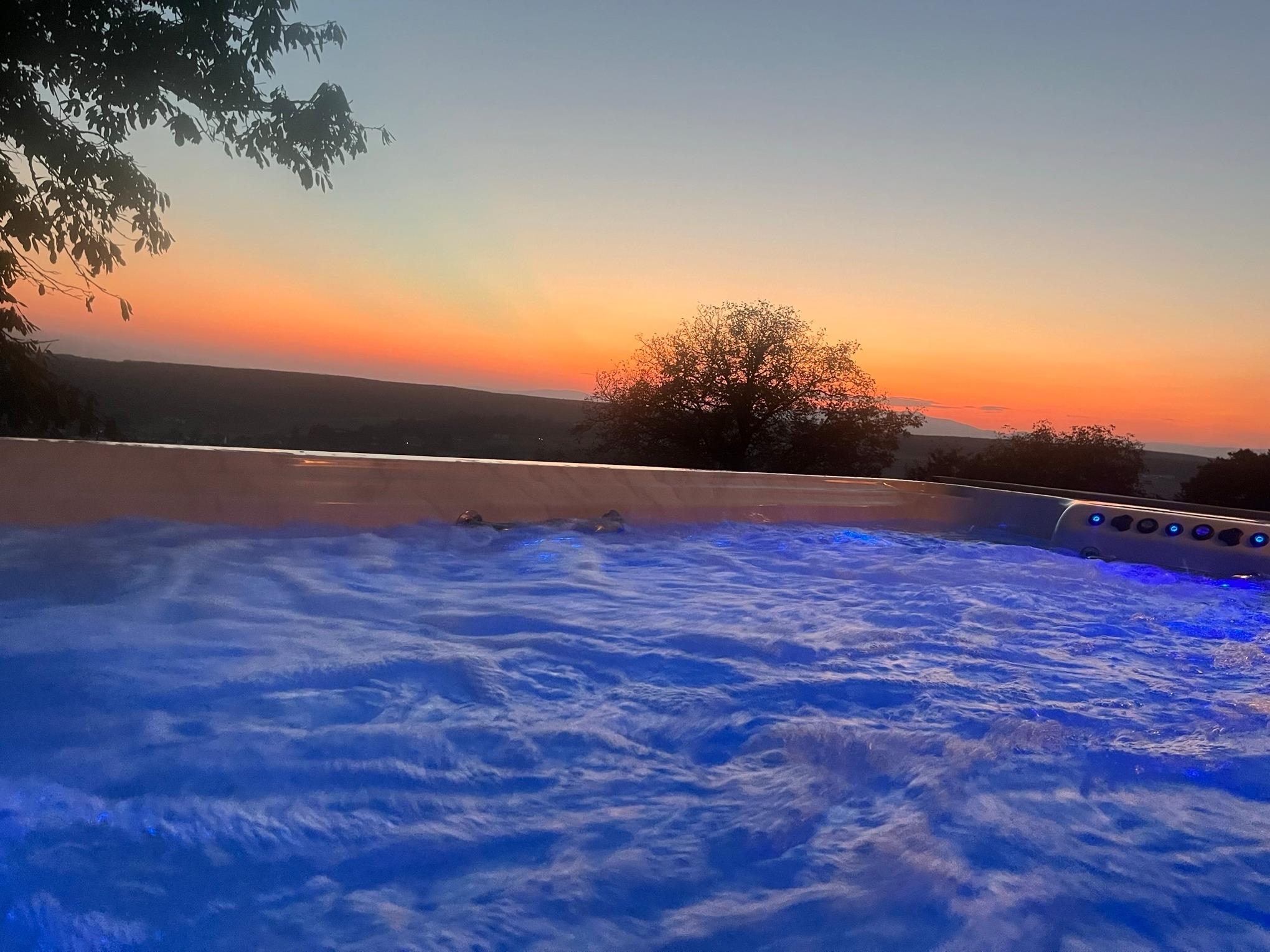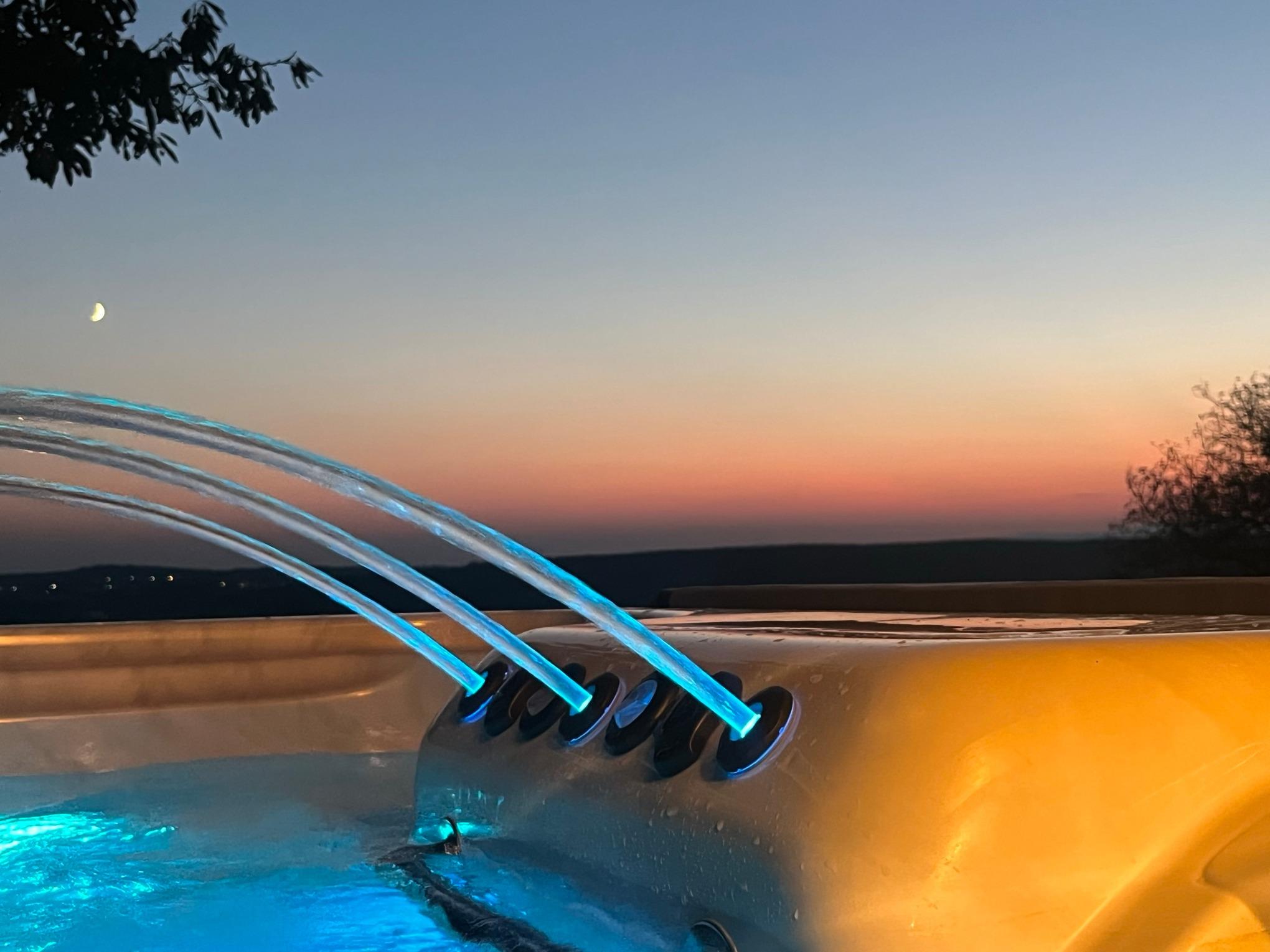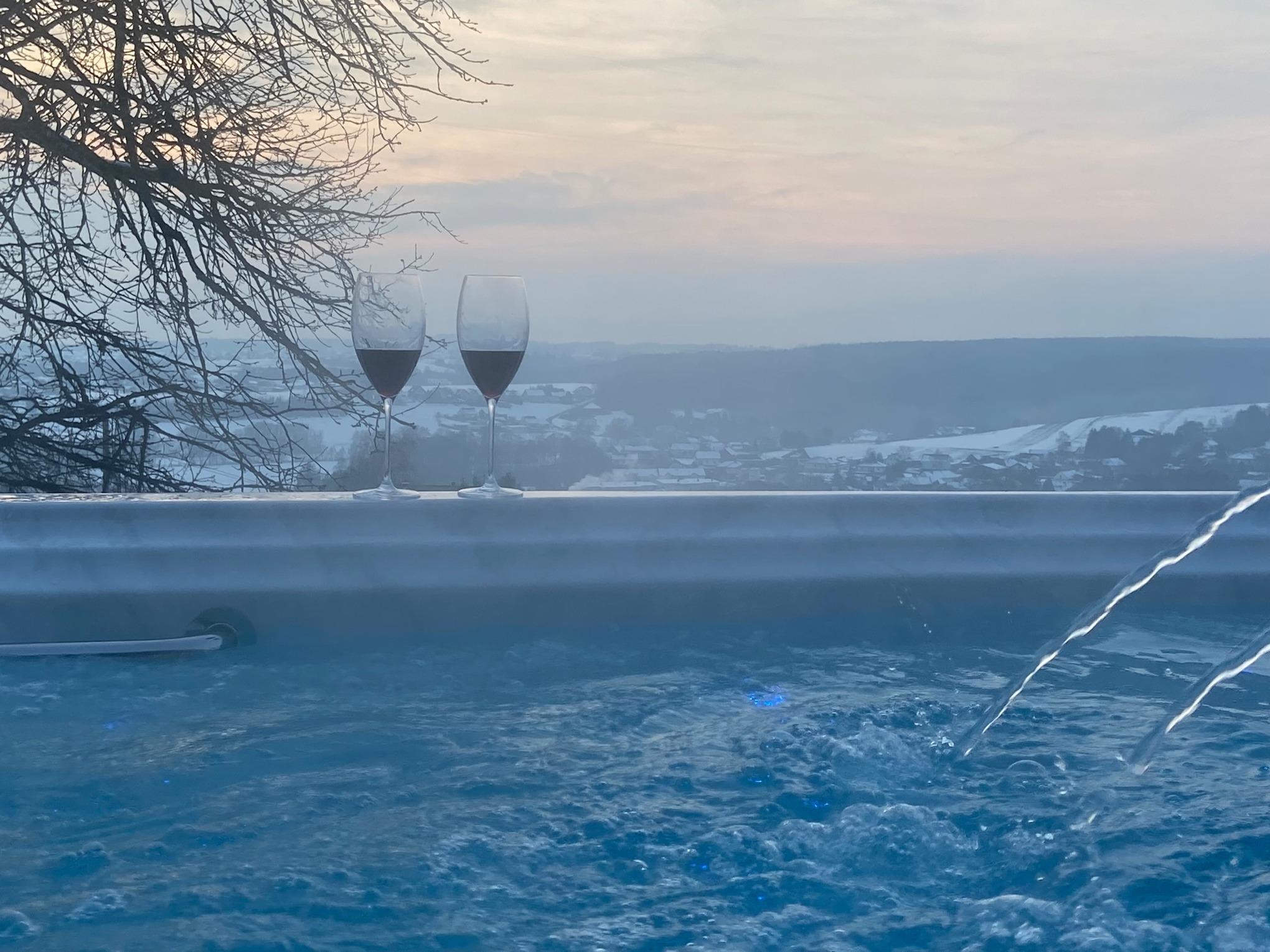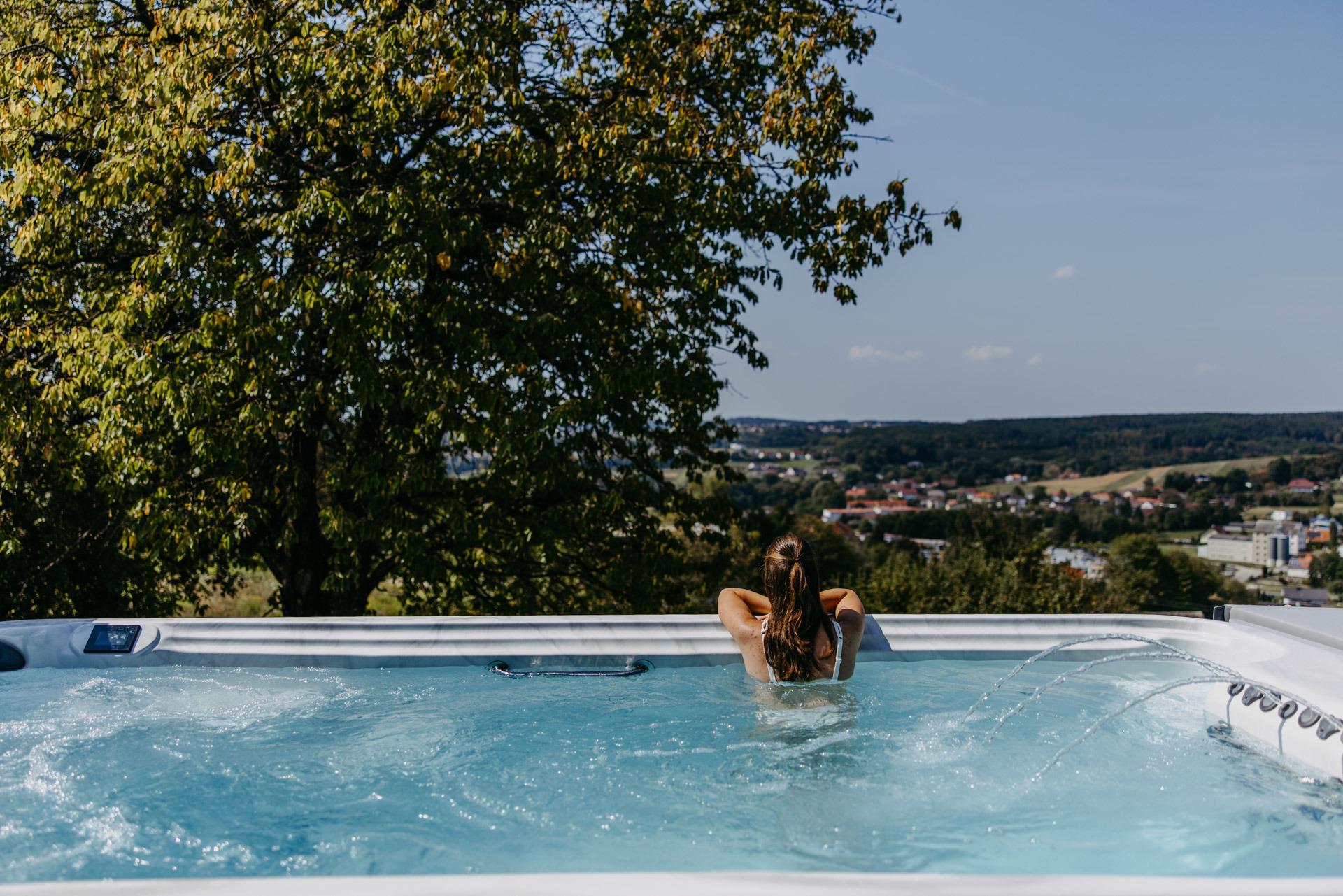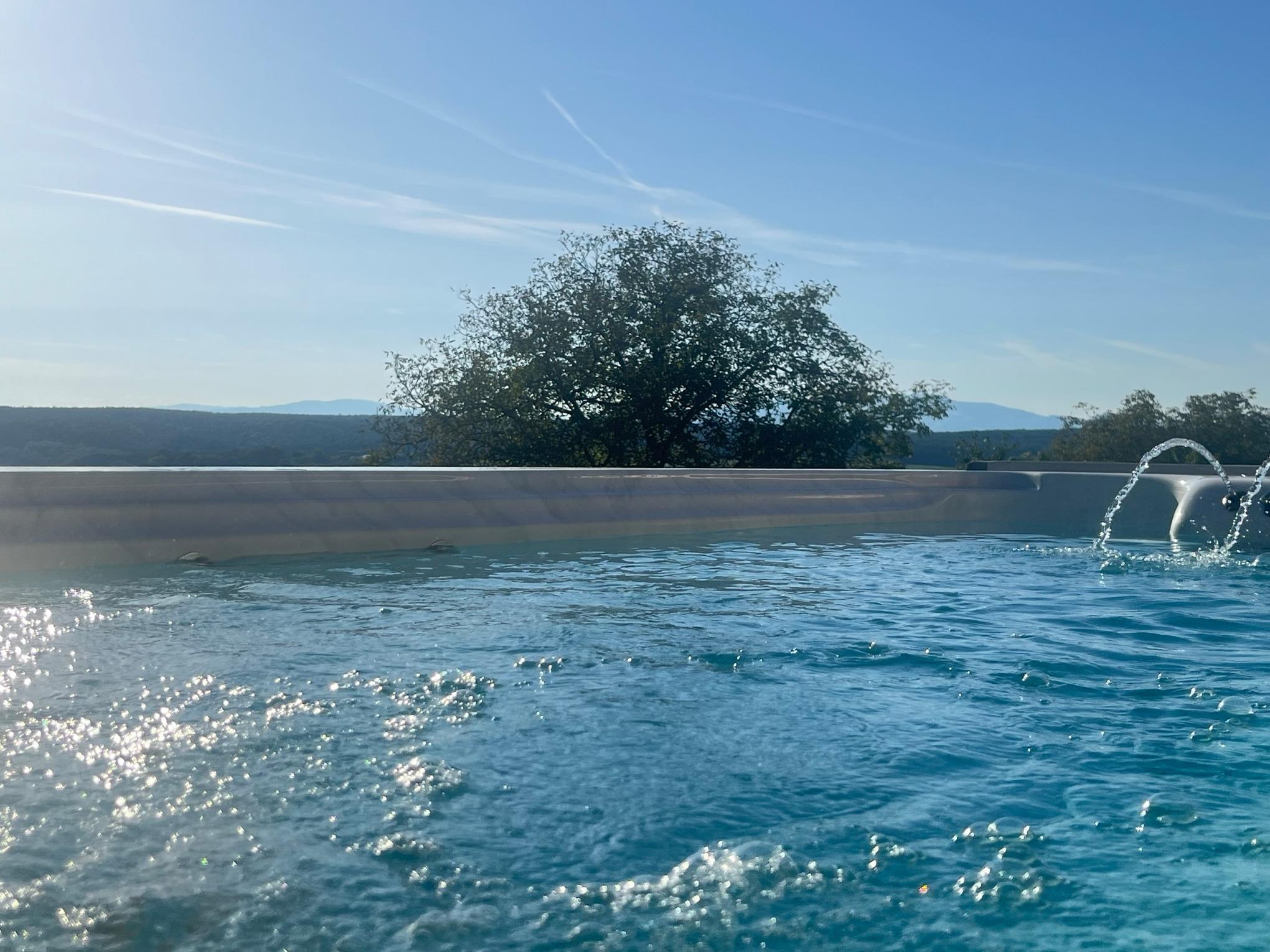 LuckyLiving, das Ferienhaus im Südburgenland. Auf 90 m² bietet es Platz für bis zu 5 Personen und verfügt über 2 Schlafzimmer mit zwei en suite Bädern. ein offener Wohnraum beherbergt eine voll ausgestattete Küche, eine gemütliche Couch und einen Essbereich mit traumhafter Aussicht über die Hügellandschaft des Südburgenlands bis hin zum Pöllauberg, Masenberg bei Hartberg und dem niederösterreichischen Hoch- und Niederwechsel. Zu den Besonderheiten gehört der Außenpool mit Gegenstromanlage und Massagefunktion. Dieser ist nicht nur im Winter ein Highlight, sondern bietet auch im Sommer eine ideale Möglichkeit zum Trainieren, Abkühlen und vor allem Entspannen, begleitet von einer herrlichen Aussicht.