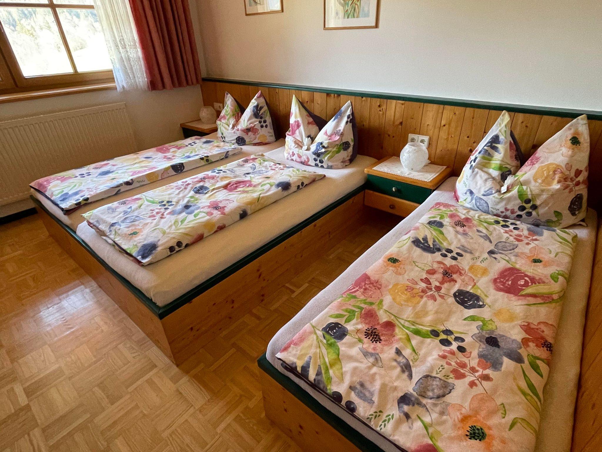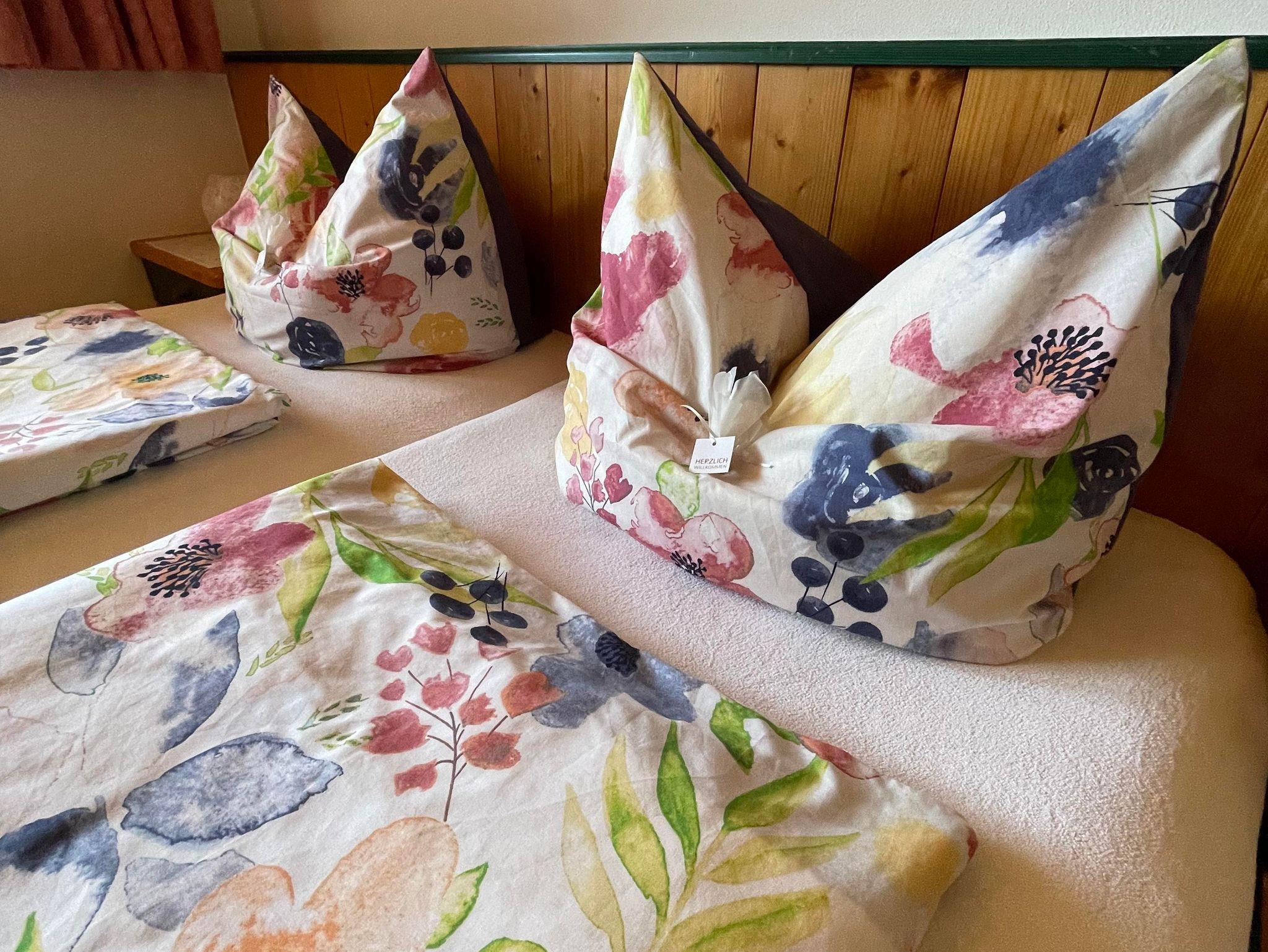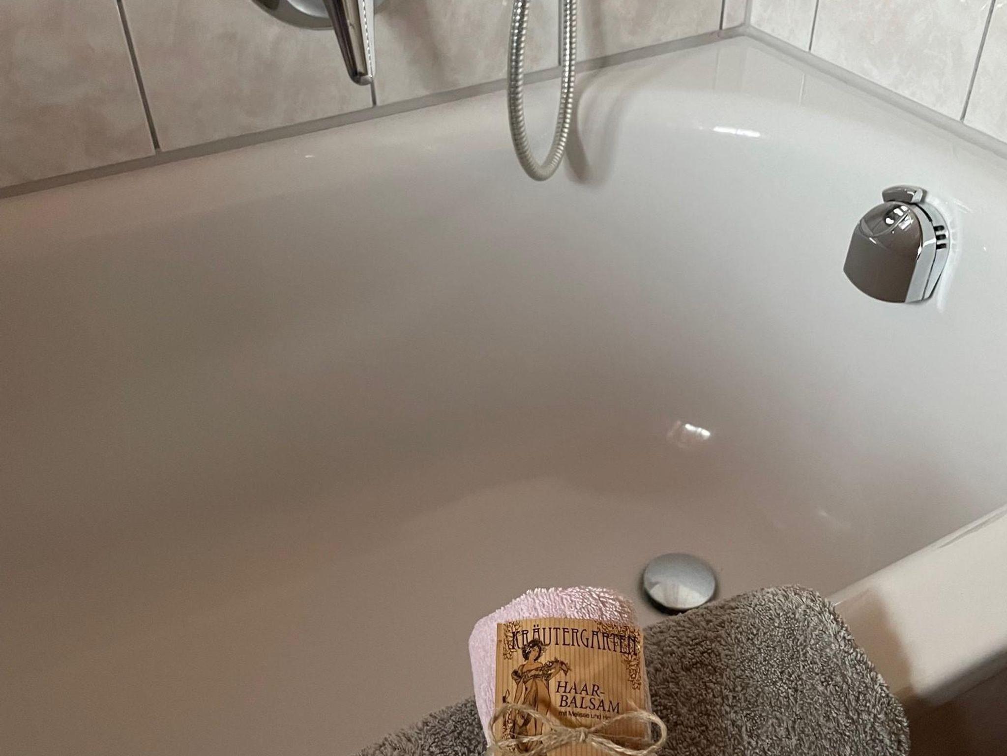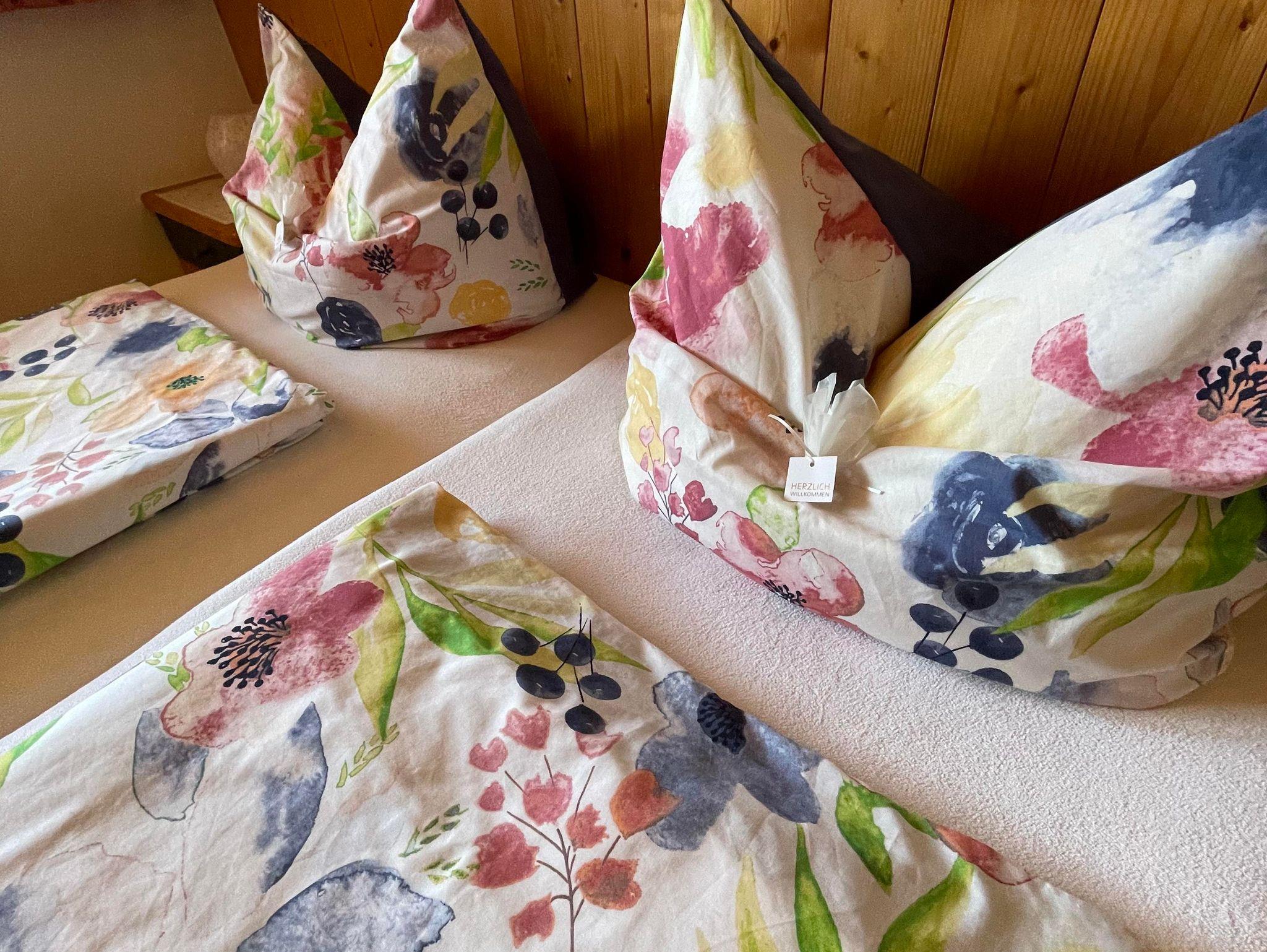 Unser Doppelzimmer und Dreibettzimmer sind gemütlich eingerichtet, das Badezimmer ist ausgestattet mit einer Dusche, eigener Badewanne und nebenan seperates WC. Allergiker Wohnung nur Fliesen und Parkett!