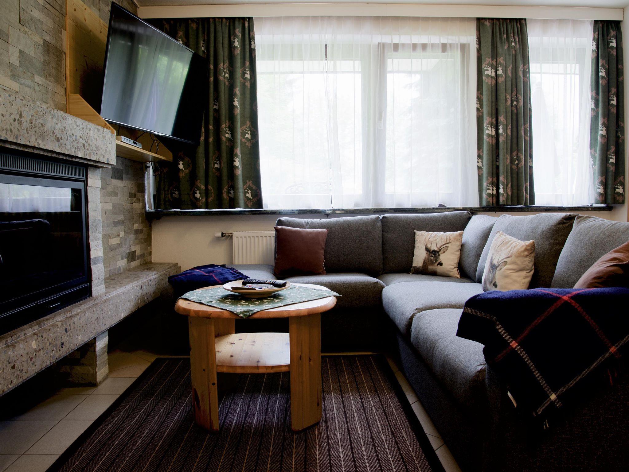 Bei uns sind Sie genau richtig! Großes Apartment mit Kamin, sonnige Terrasse und spektakuläre Bergpanorama. Zwei Schlafzimmern mit je ein Doppelbett, eineinhalb Badezimmer, Essbereich, Wohnzimmer, und voll ausgestattete Küche. Flachbildschirm-Fernseher und DVD-Player stehen zur Verfügung. Natürlich bieten wir kostenfreies WLAN, Tücher, Bettwäsche und Fön an.