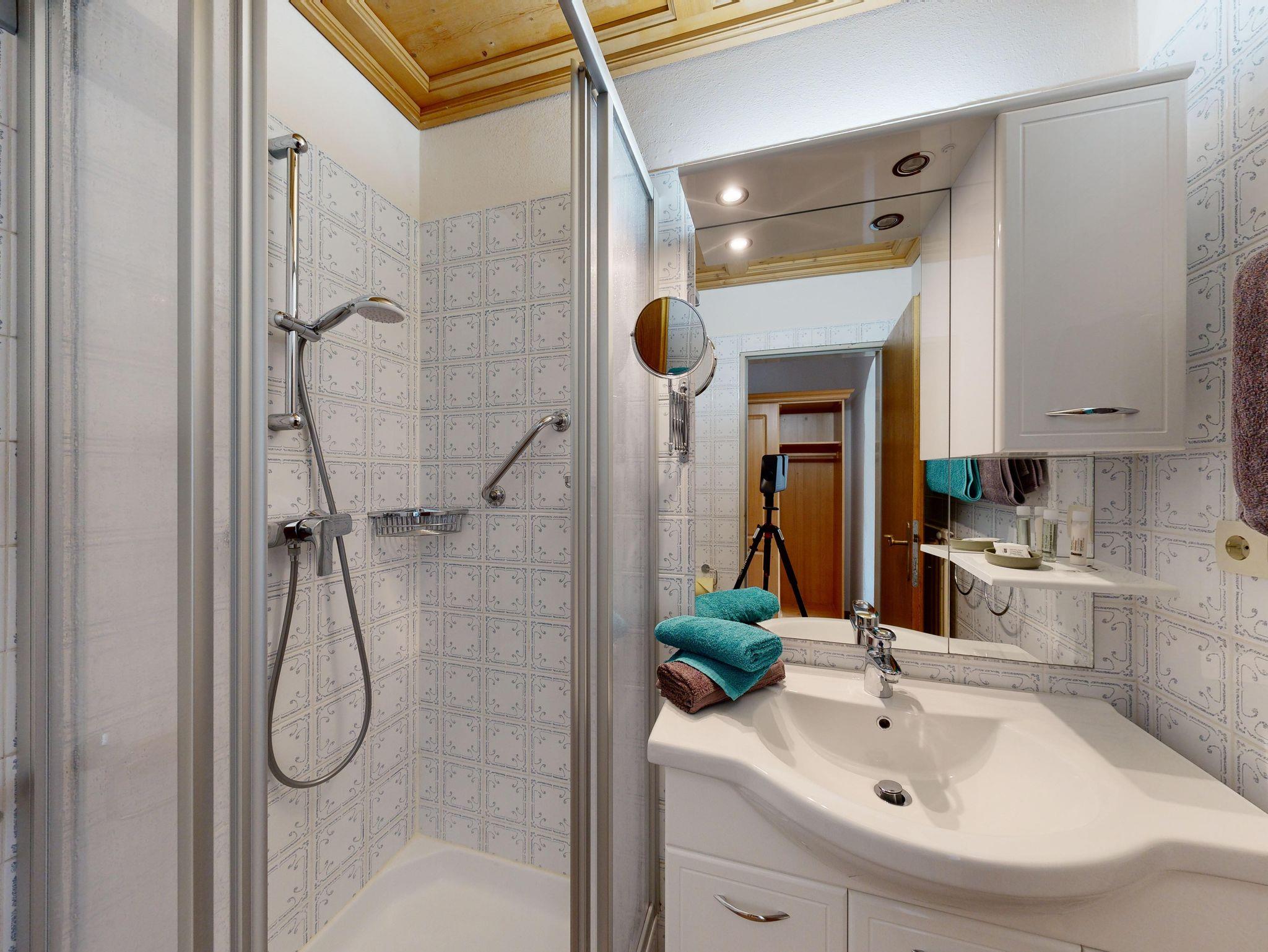 Küche, Wohnzimmer, Kinderzimmer, Elternschlafzimmer, Bad mit Dusche und WC, seperates WC, Vorraum, Balkon.