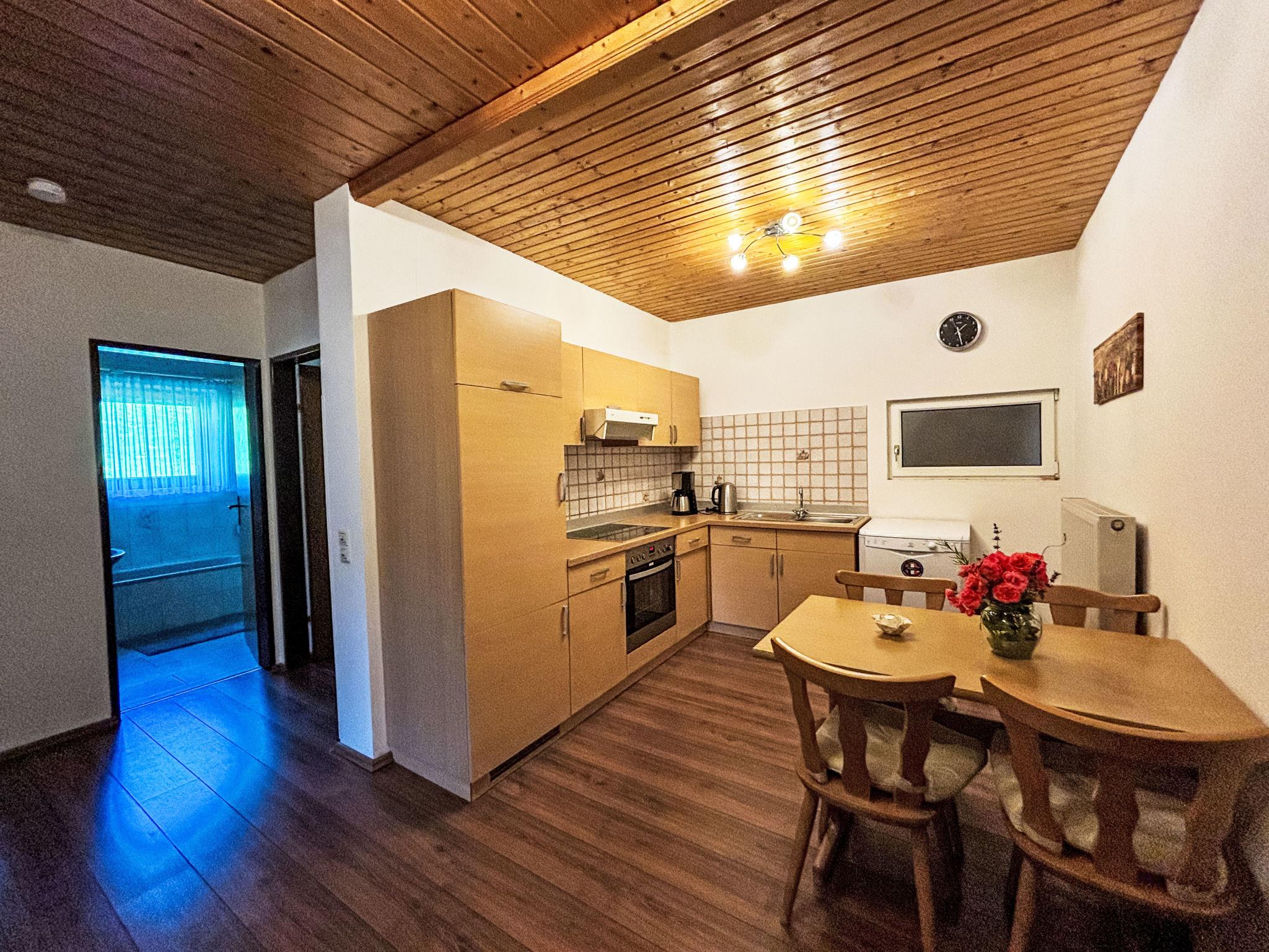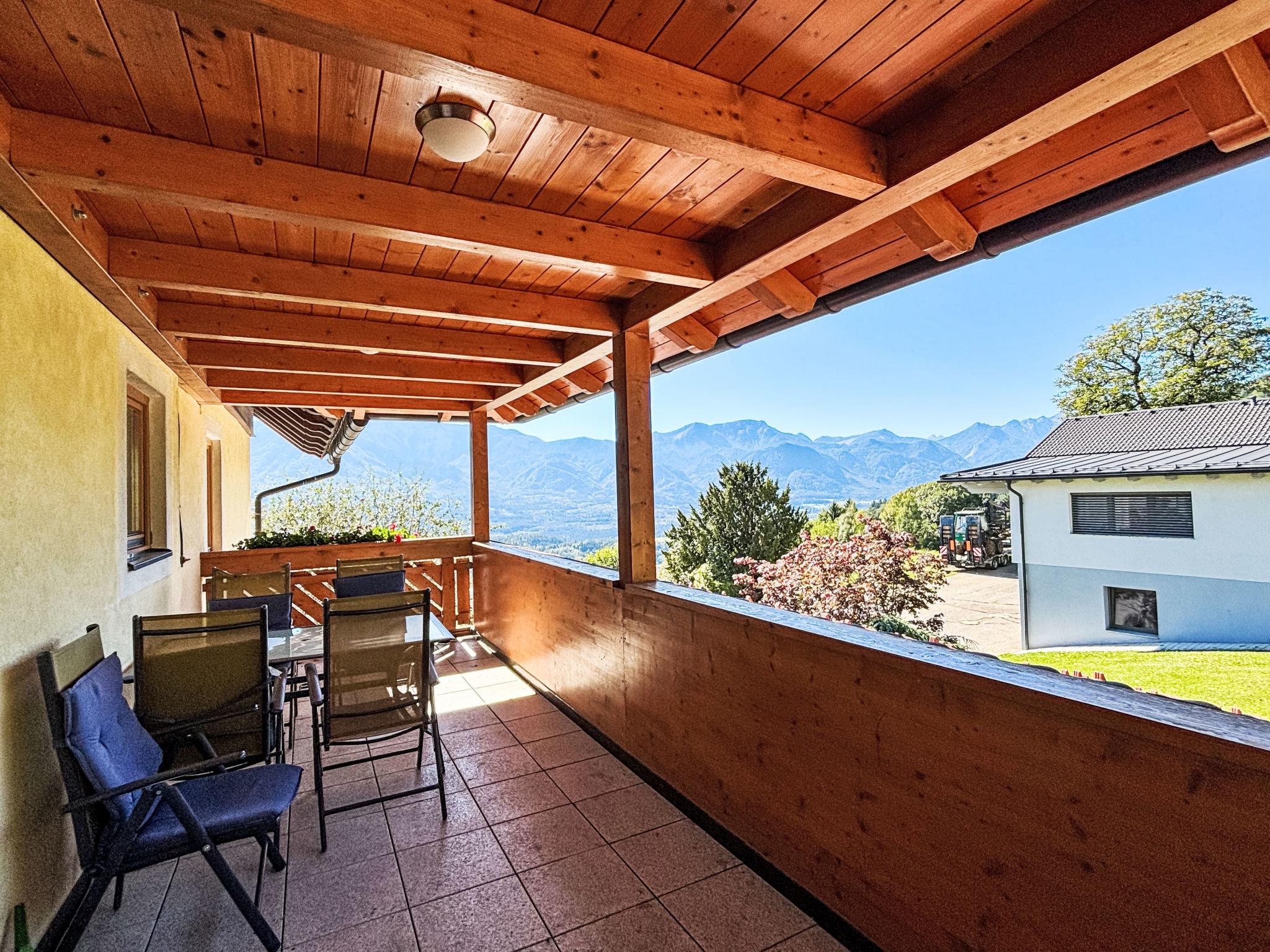 "Mittagskogel", 3-room apartment 80 m2 on 1st floor. Practical and cosy furnishings: living/dining room with dining table and digital TV. Exit to the balcony. 2 double bedrooms. Open kitchen (oven, dishwasher, 4 ceramic glass hob hotplates, toaster, kettle, freezer, electric coffee machine). Bath/shower, sep. WC. Wood heating. Parquet floors. Large balcony 18 m2, west facing position. Balcony furniture. View of the mountains. Facilities: washing machine. Internet (WiFi). Please note: non-smokers only.