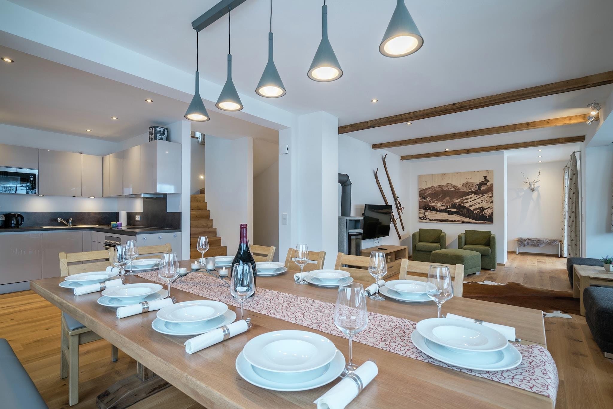 Denne luksuriøse, fritliggende hytte til højst 12 personer ligger på en solrig skråning i hjertet af Mühlbach am Hochkönig i Salzburgerland og byder på en smuk udsigt over det omkringliggende bjerglandskab. Hytten byder på 4 store soveværelser (3 med private badeværelser), 2 af de 4 soveværelser har en ekstra stabelseng, et fjerde badeværelse, en moderne, rummelig stue, et åbent, fuldt udstyret køkken og et privat wellness-område med sauna og bruser. . Der er termostater i stue, køkken, soveværelser og badeværelser, der giver mulighed for at indstille den ønskede temperatur på gulvvarmen. Denne hytte har også en dobbelt garage og en stor have, en vaskemaskine og tørretumbler og et skiopbevaringsrum med en skistøvlevarmer. På baggrund af Hochkönig inviterer 34 lifte, 120 km pister og utallige skihytter dig til at stå på ski mellem de tre byer Maria Alm, Dienten og Mühlbach. Om sommeren såvel som om vinteren er Mühlbach am Hochkönig, en del af Unesco Geopark "Erz der Alpen", et ideelt udgangspunkt for din ferie! I umiddelbar nærhed finder du mange muligheder for mountainbiking, golf, gletsjerski, paragliding, vandreture og ridning. På få minutter i bil kan du nå pisterne i Hochkönig-skiområdet, et smukt og snesikkert skiområde med 120 kilometer pister. Familien og de små skiområder Hinterreit og Hochkeil byder også på en særlig charme. Om sommeren byder den udendørs pool i Mühlbach, Sommerstein udendørs oplevelsesbad i Maria Alm, Zell-søen i Zell am See eller Goldegger-søen på masser af svømmesjov! Der er masser af butikker til dine daglige behov lige i byen samt et godt udvalg af restauranter, delstatens hovedstad Salzburg kan nås på cirka 1 time i bil.