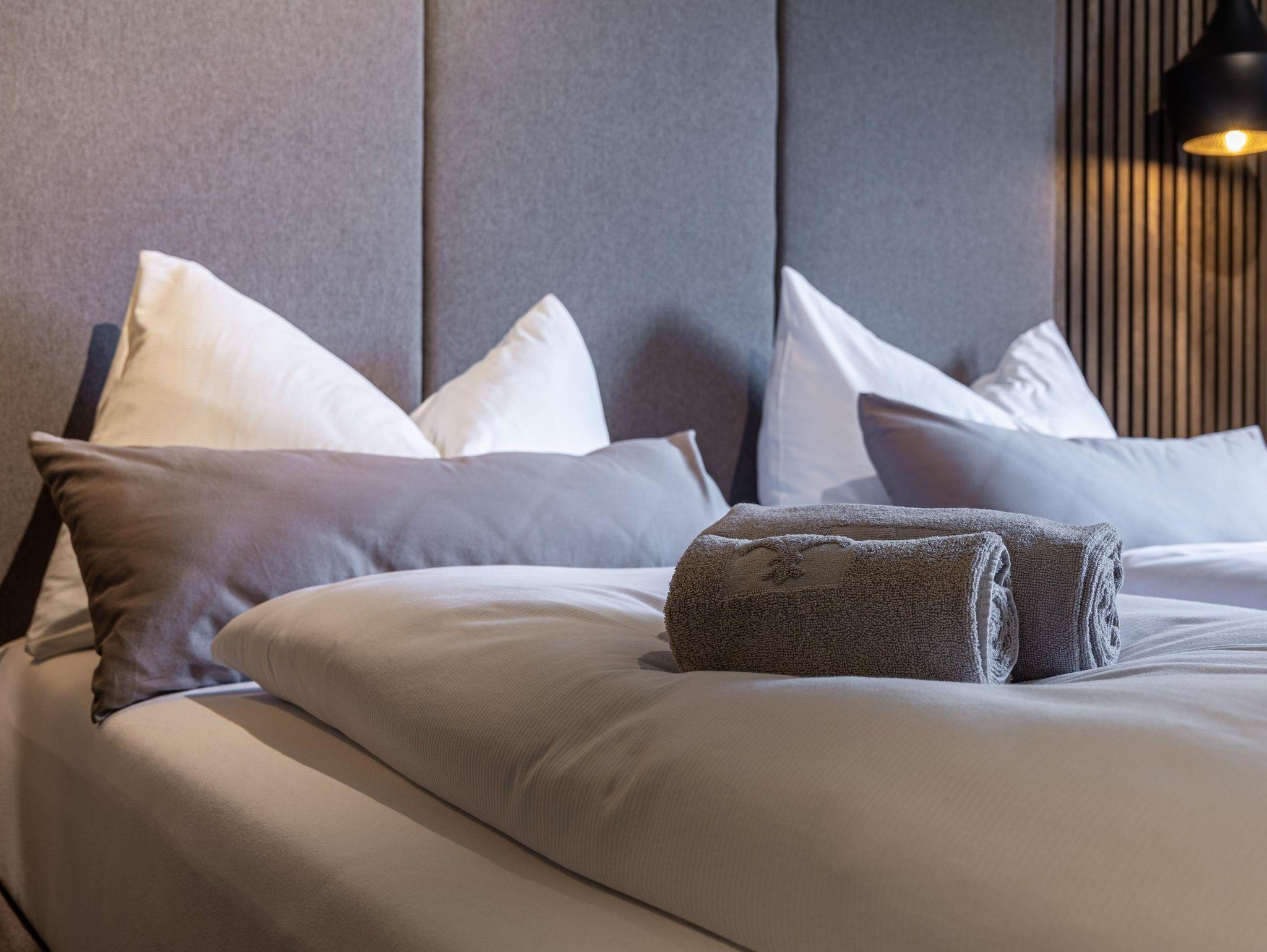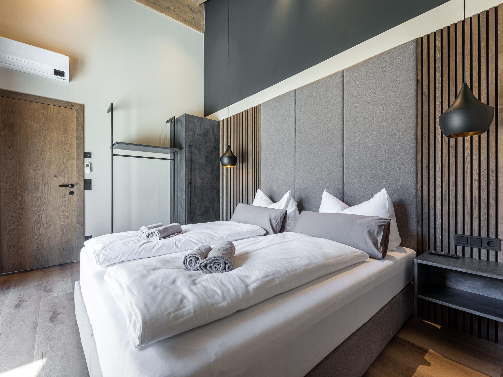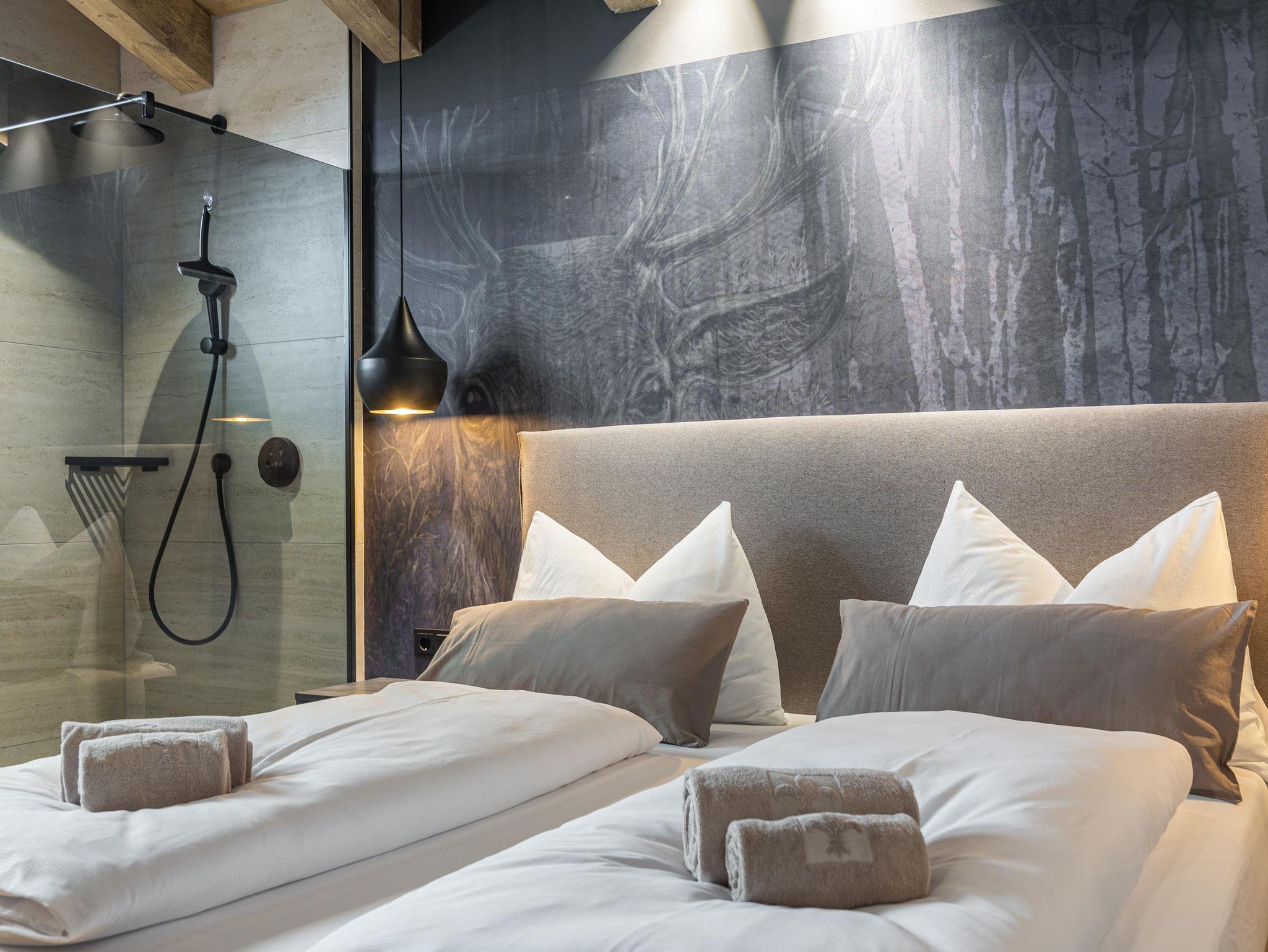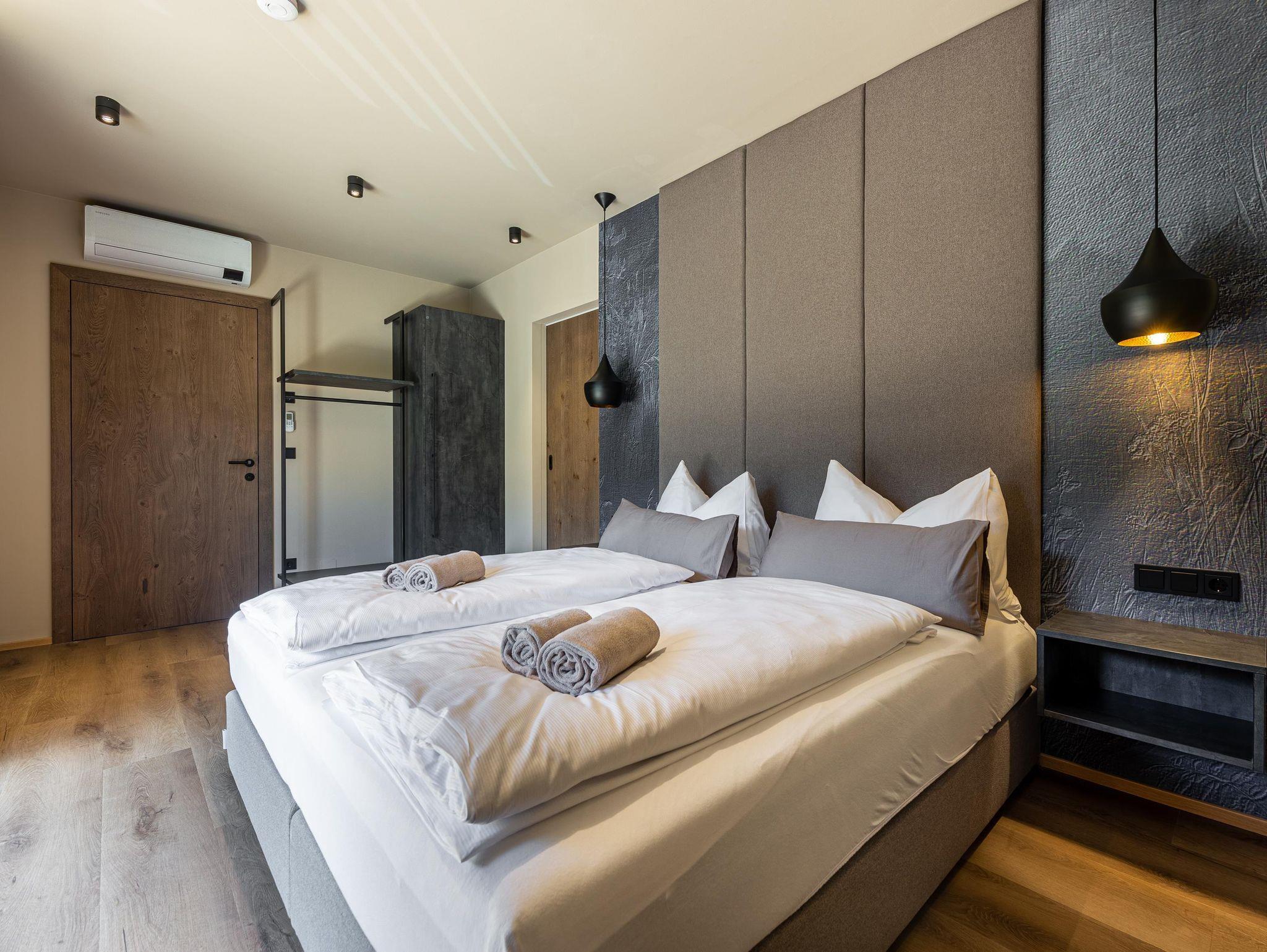 Die Chalets FRITZ und FRIEDA bestechen durch eine alpin-moderne Einrichtung, gemütliche Wohnbereiche mit Kamin und Panorama-Fenster sowie voll ausgestattete Küchen. Während das Chalet FRITZ mit 310 m² Wohnfläche 5 Schlafzimmer mit eigenen Bädern bietet, verfügt das Chalet FRIEDA auf 270 m² über 4 Schlafzimmer, ebenfalls mit privaten Bädern. Beide Chalets laden mit privaten Wellnessbereichen zum Entspannen ein: Im Chalet FRITZ erwartet Sie eine Sauna mit Relax-Ruheraum und eine großzügige Sonnenterrasse mit Talblick. Das Chalet FRIEDA bietet einen Relax-Garten mit Panorama-Sauna.