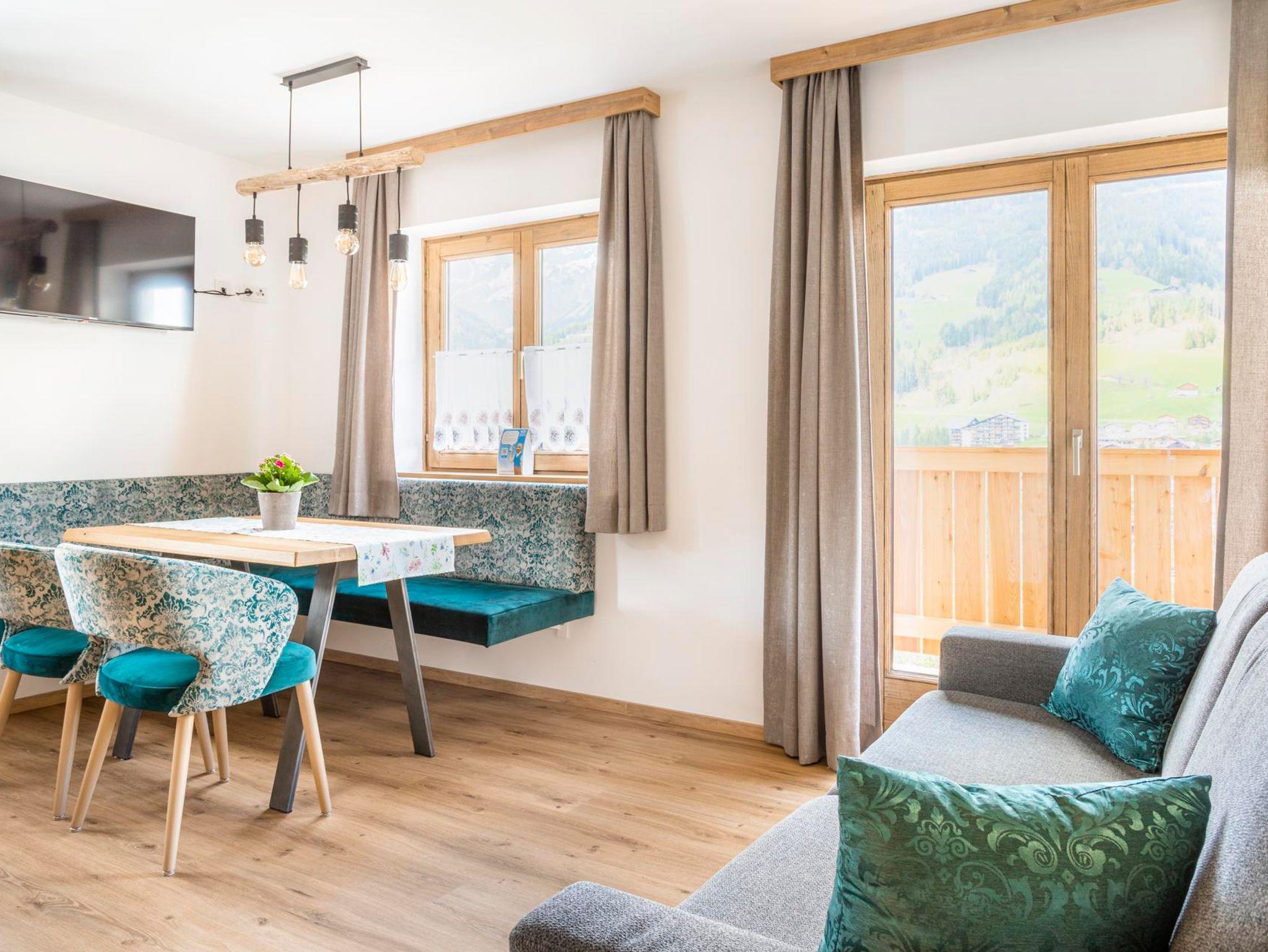 Unsere neu gestaltete Ferienwohnung „Weitsicht“ bietet, wie der Name schon verrät, eine herrliche Weitsicht über das Tal mit Blick in Richtung Nachbarort Bischofshofen. Mit ca. 35 qm bietet sie Platz für bis zu vier Personen, ideal für Familien oder Paare. Die modern, rustikal gestaltete Wohnung besteht aus einem Schlafzimmer für zwei Personen mit Doppelbett und einem Wohnbereich mit Ausziehcouch und Schlafmöglichkeit für zwei Personen. Zudem verfügt die Ferienwohnung „Weitsicht“ über ein Badezimmer mit Dusche und eine separate Toilette. Die Küche im Wohnbereich bietet Ihren Gästen einen Elektroherd, Backofen, Mikrowelle, Kaffeemaschine, Wasserkocher, Toaster und auch eine Geschirrspülmaschine.