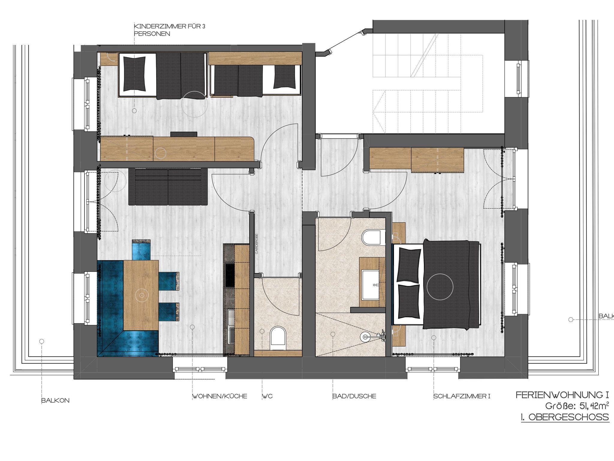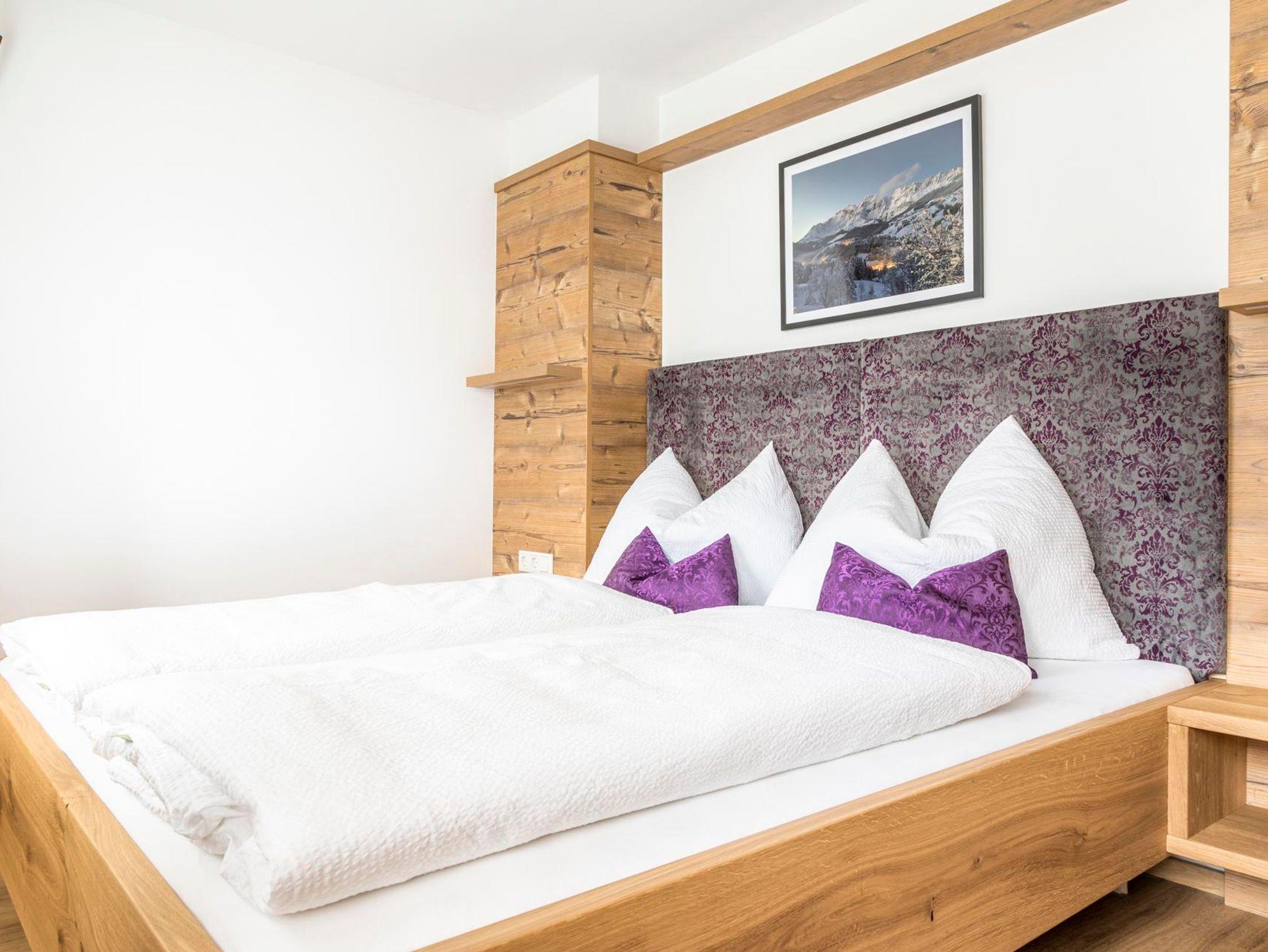 Die neue Ferienwohnung „Aussicht“ bietet, eine herrliche Aussicht auf das Hochkönigmassiv. Mit ca. 52 qm bietet sie Platz für bis zu sieben Personen, ideal für größere Familien oder Freundesgruppen. Die modern, rustikal gestaltete Wohnung besteht aus einem Schlafzimmer für zwei Personen mit Doppelbett, einem Schlafzimmer für drei Personen mit einem Einzelbett und einem Stockbett und einem Wohnbereich mit Ausziehcouch und Schlafmöglichkeit für zwei Personen. Zudem verfügt die Ferienwohnung „Aussicht“ über ein Badezimmer mit Dusche und Toilette, sowie eine weitere, separate Toilette. Die Küche im Wohnbereich bietet Ihren Gästen einen Elektroherd, Backofen, Mikrowelle, Kaffeemaschine, Wasserkocher, Toaster und auch eine Geschirrspülmaschine.